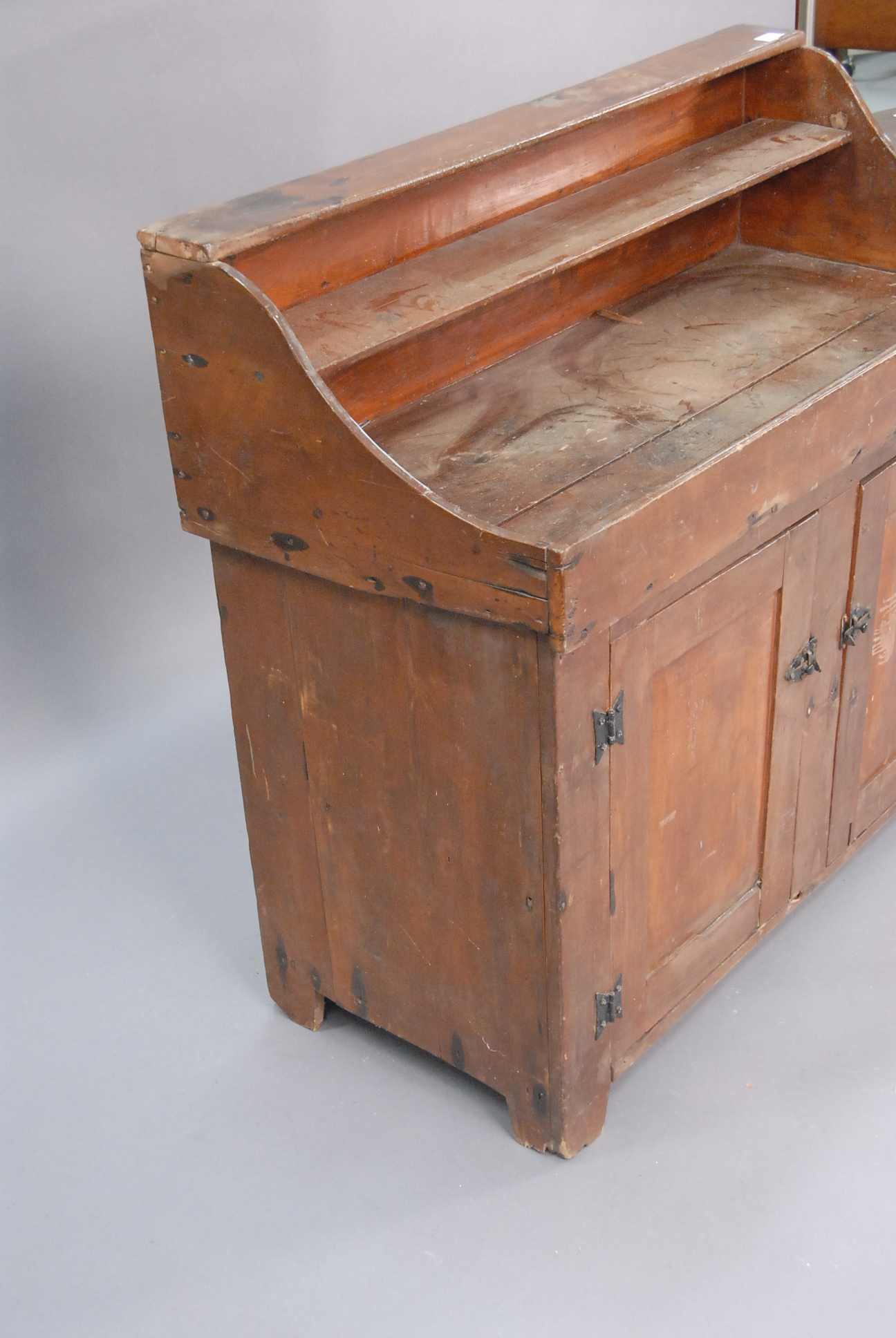 Primitive dry sink with two doors.