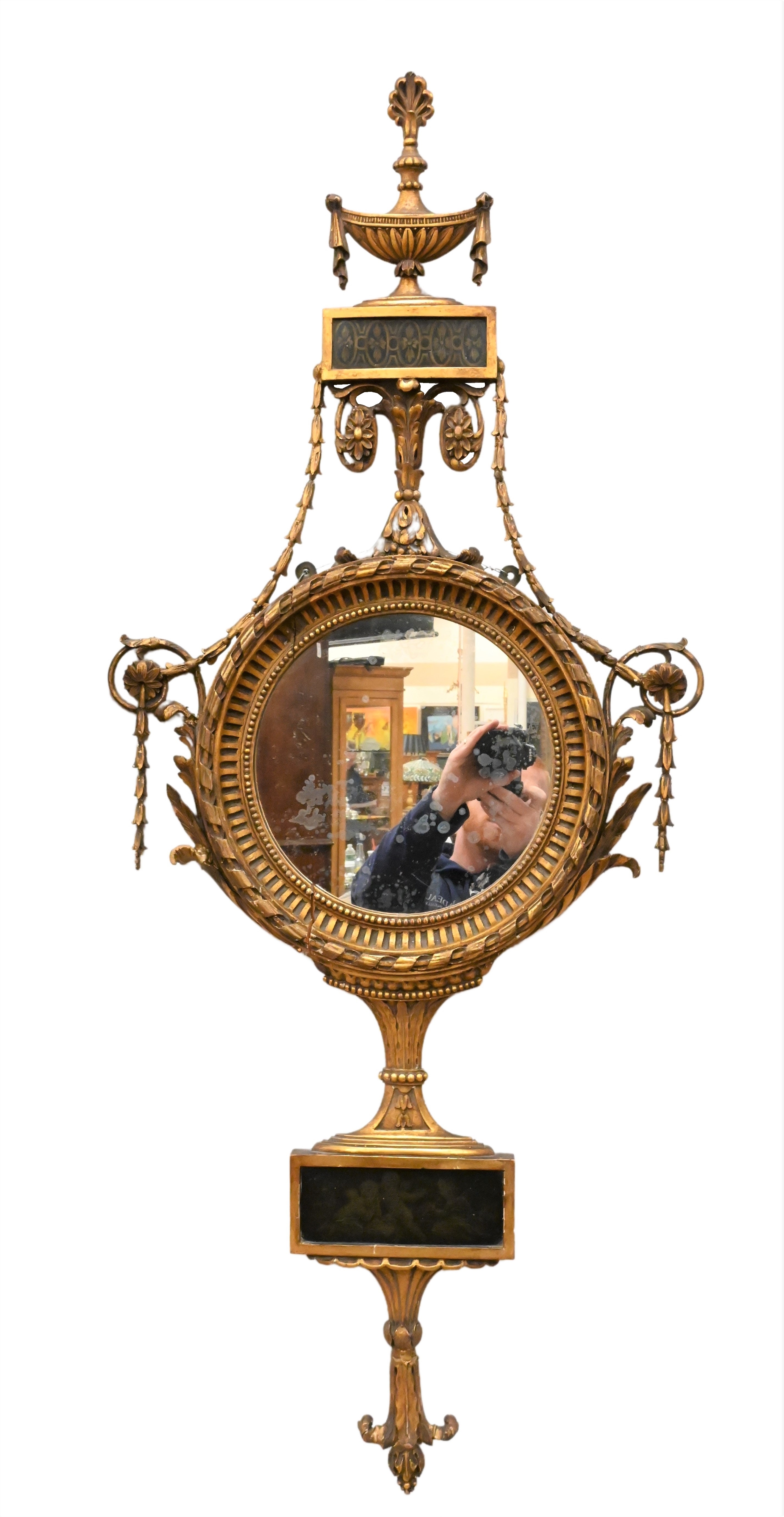 Lot 503: Rare Set of Six Neoclassic Style Giltwood and Polychrome-Painted Mirrors