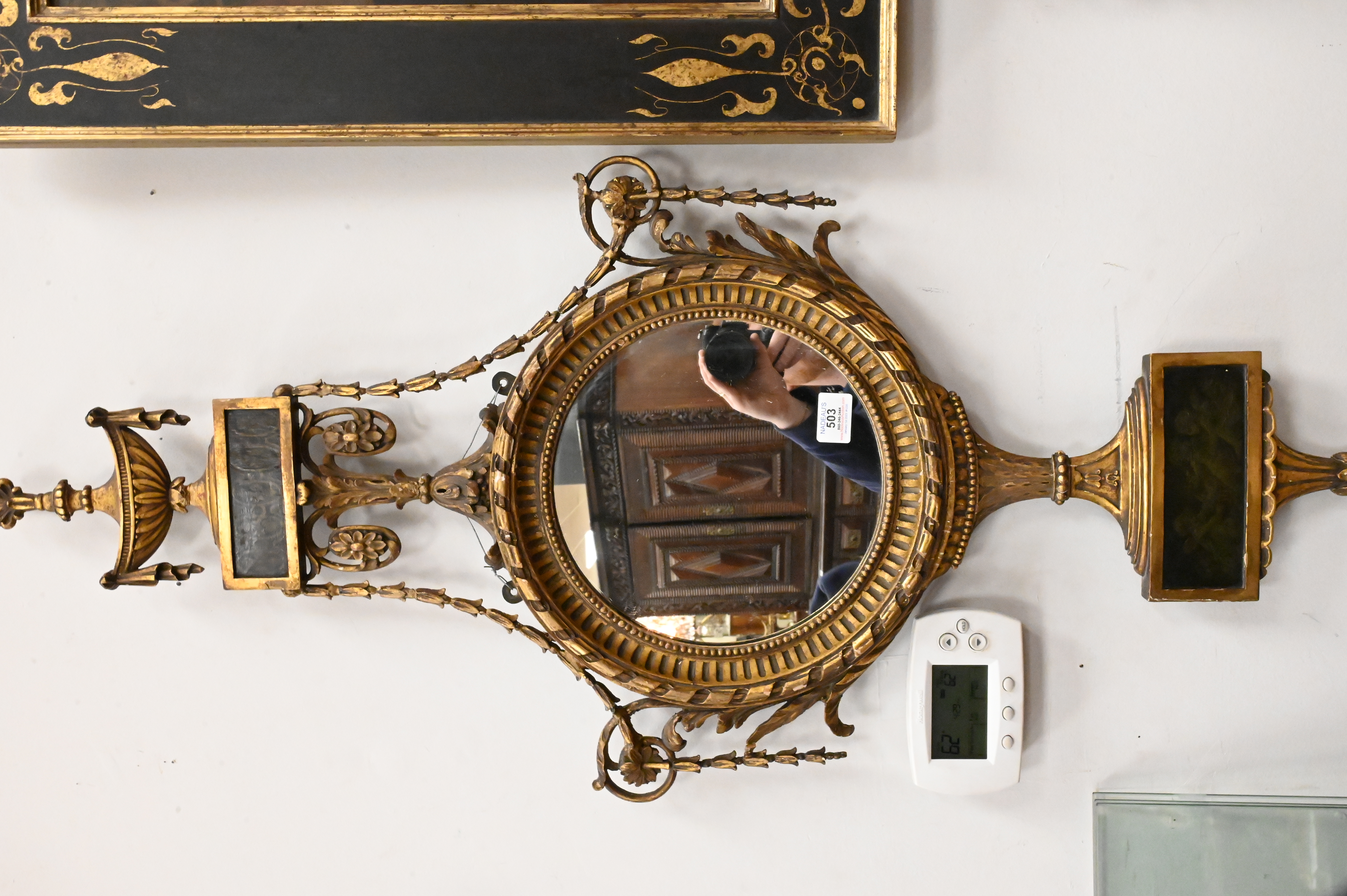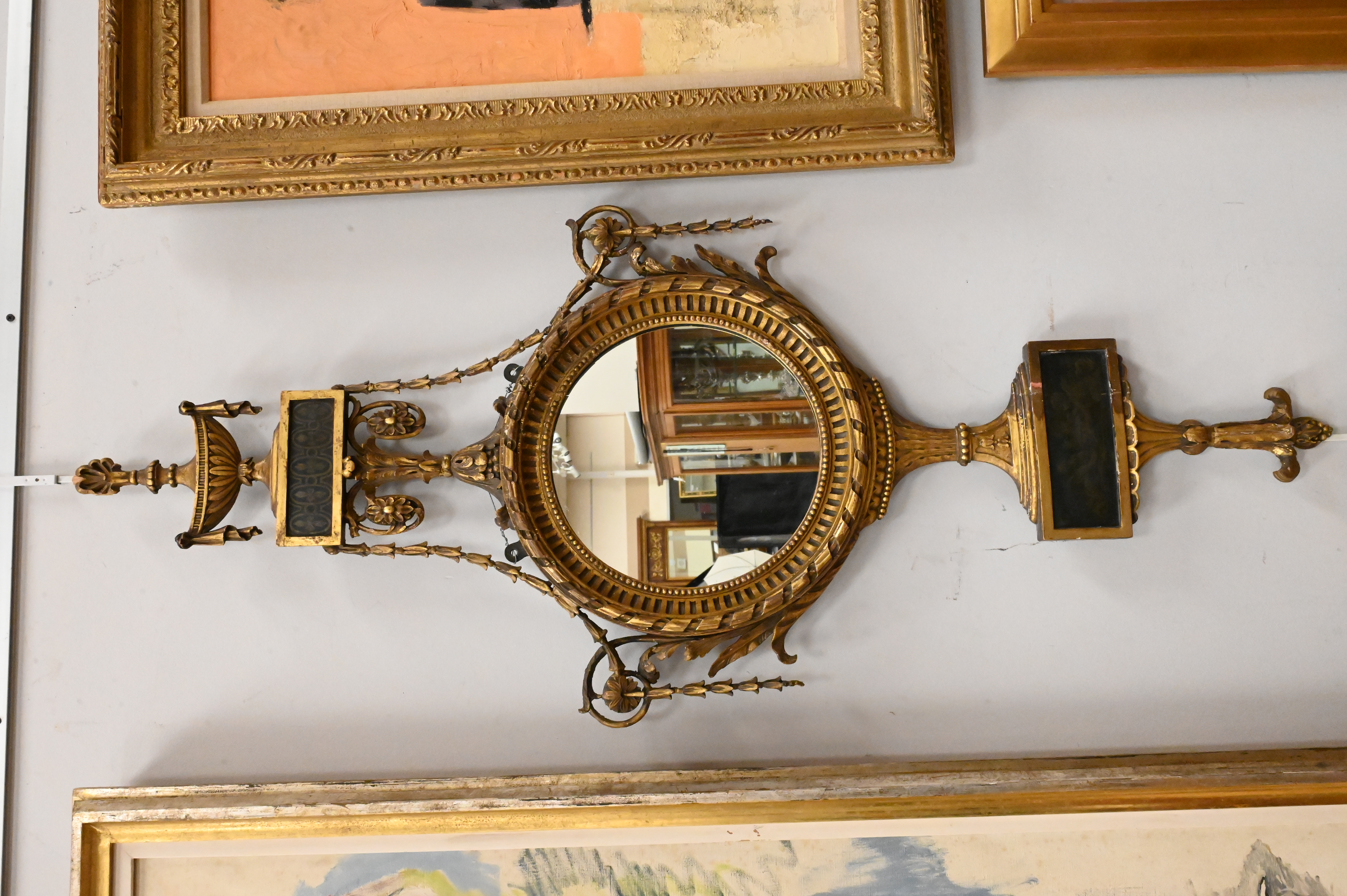 Condition: Overall good condition, a pair of mirrors with considerable sun fading, all mirrors with edge chips, minor losses to gilding, repairs on each and to structure, two having separations to round outer frame