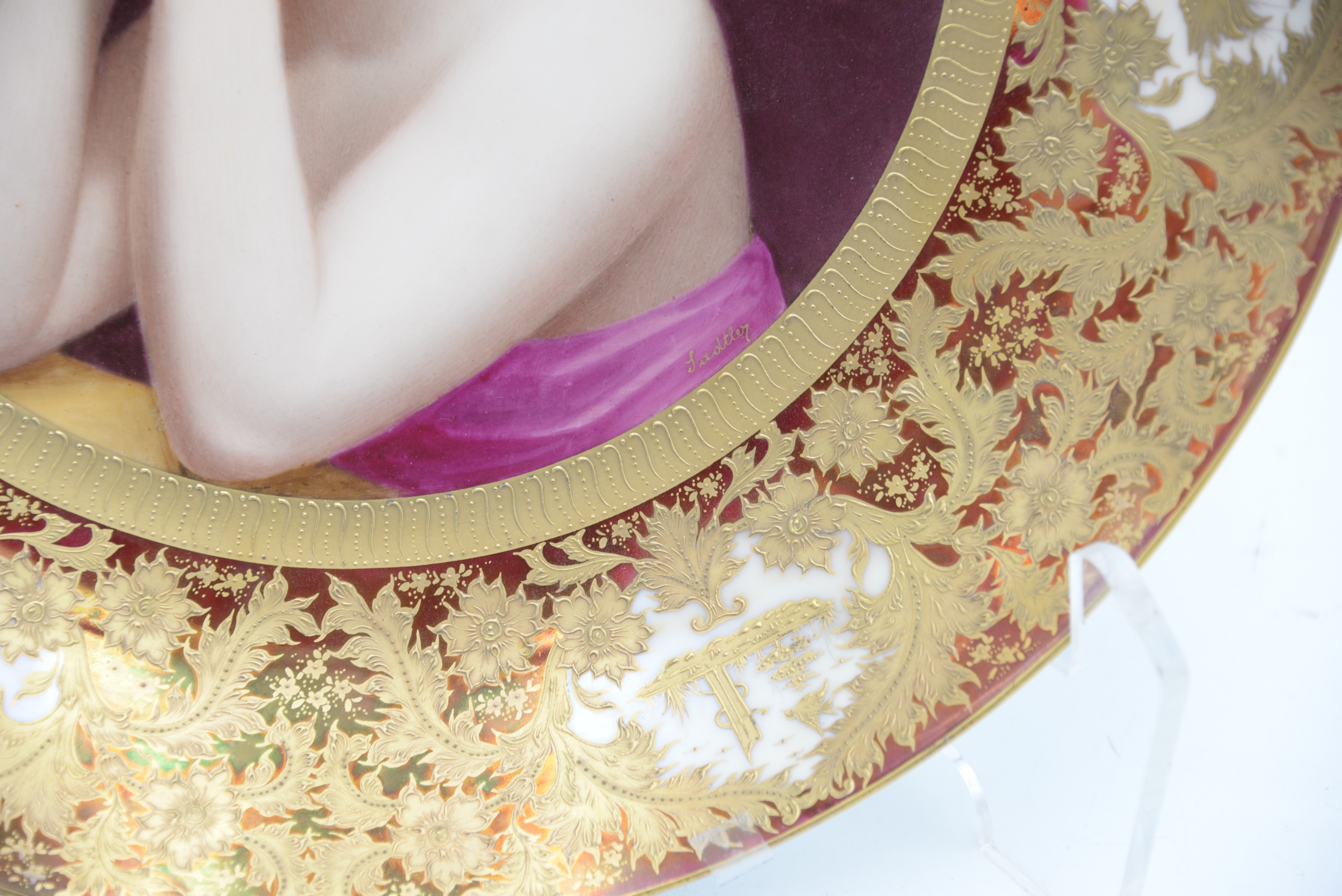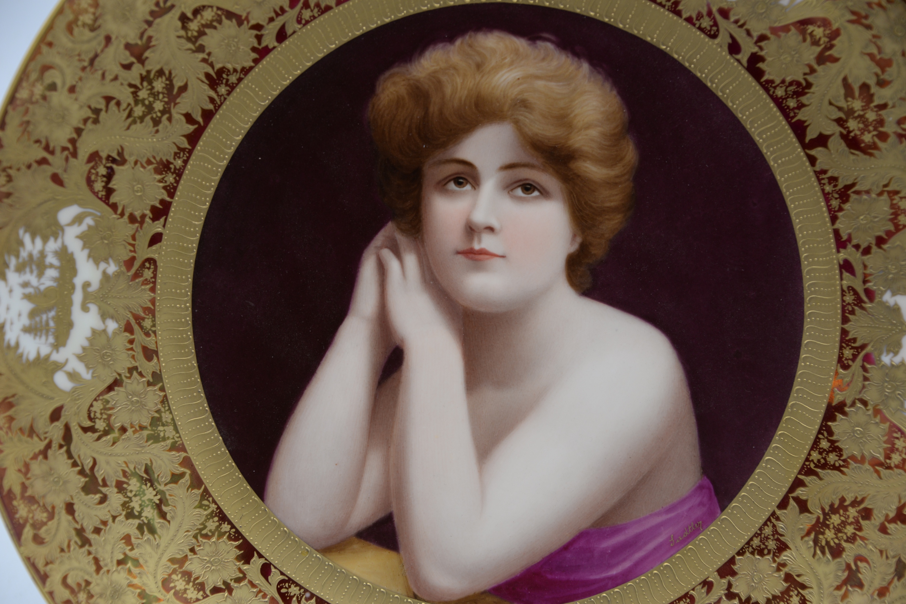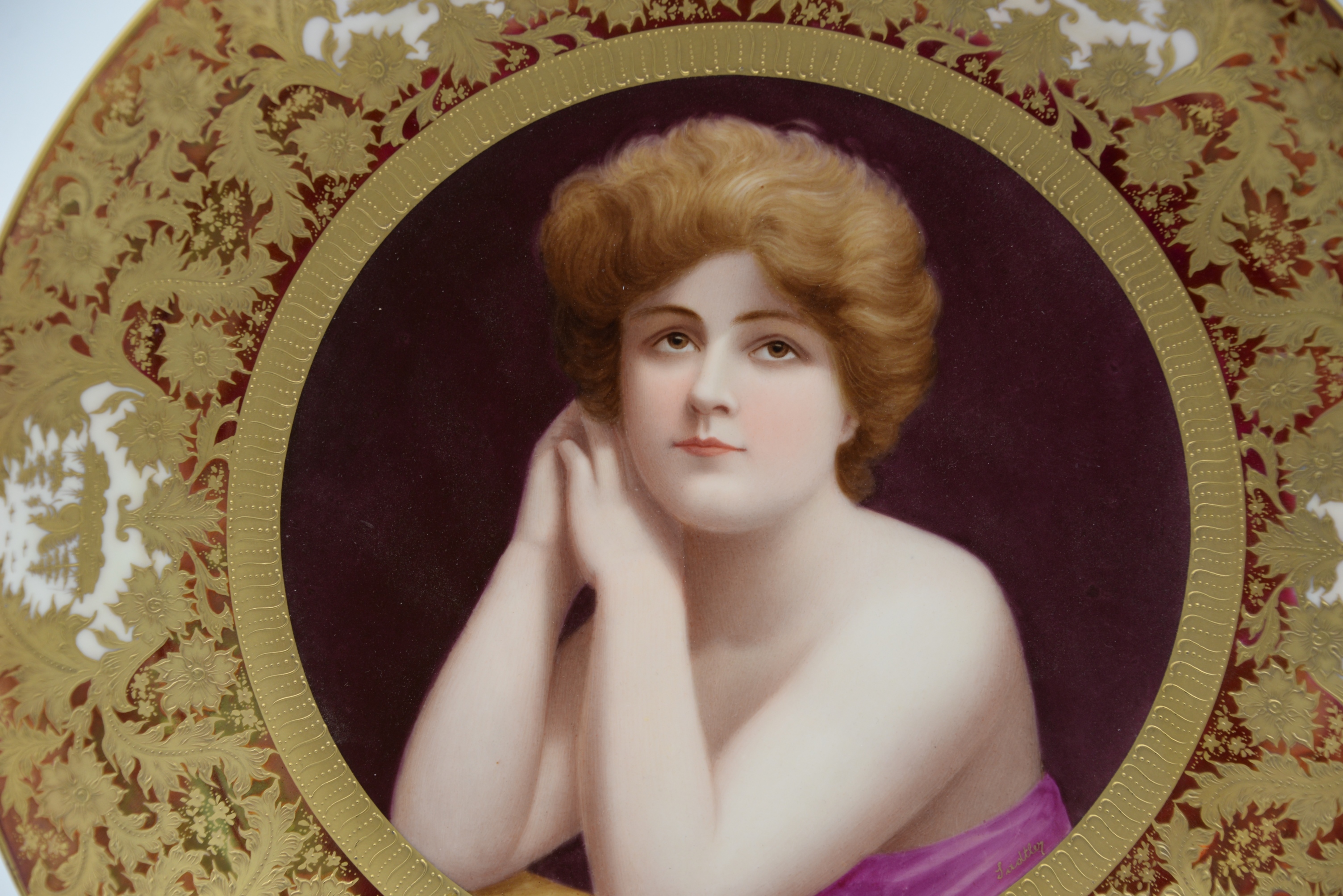 Royal Vienna Deep Charger, having hand painted woman, artist signed, with high relief border, 13 1/2 inches.