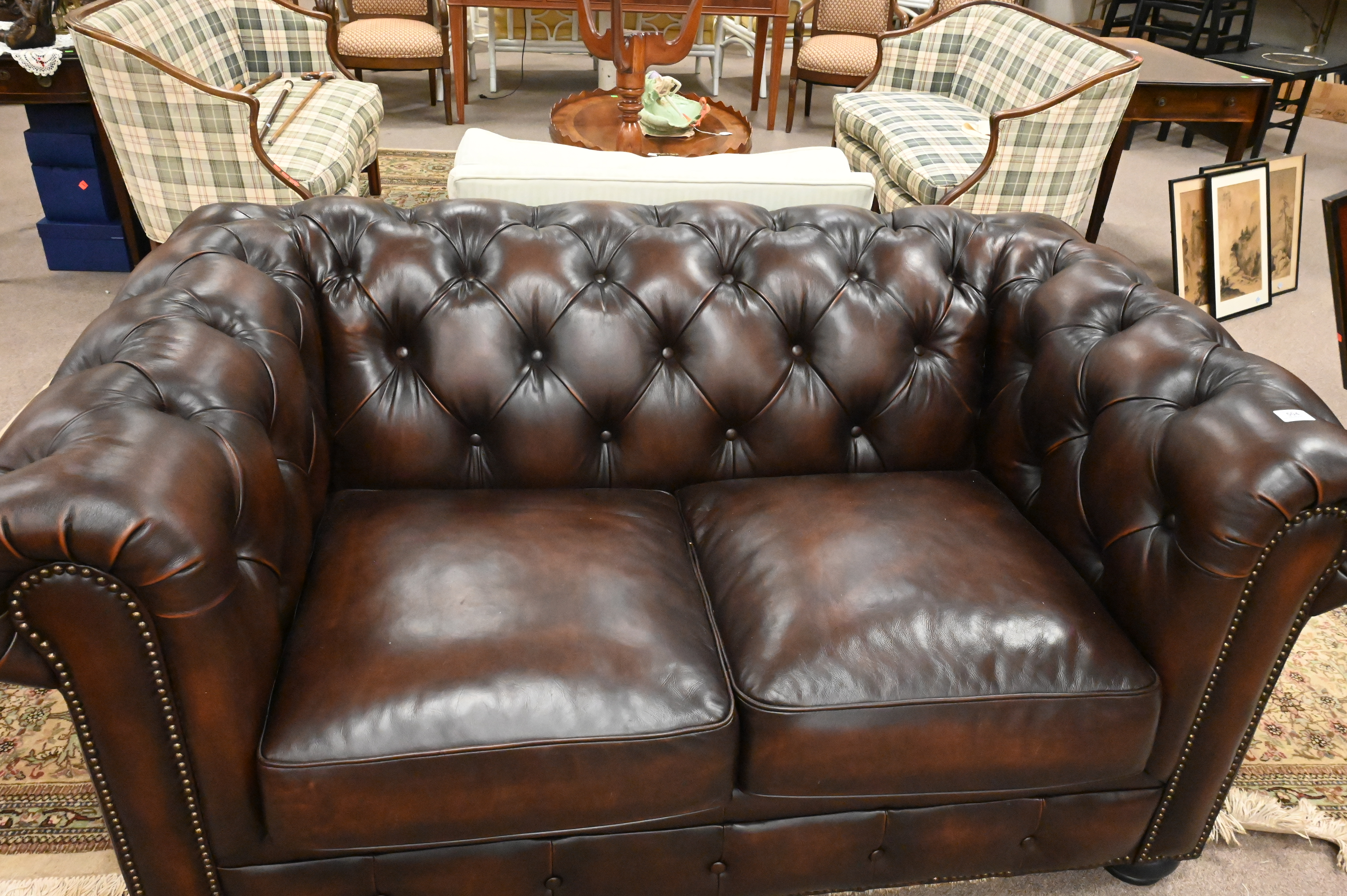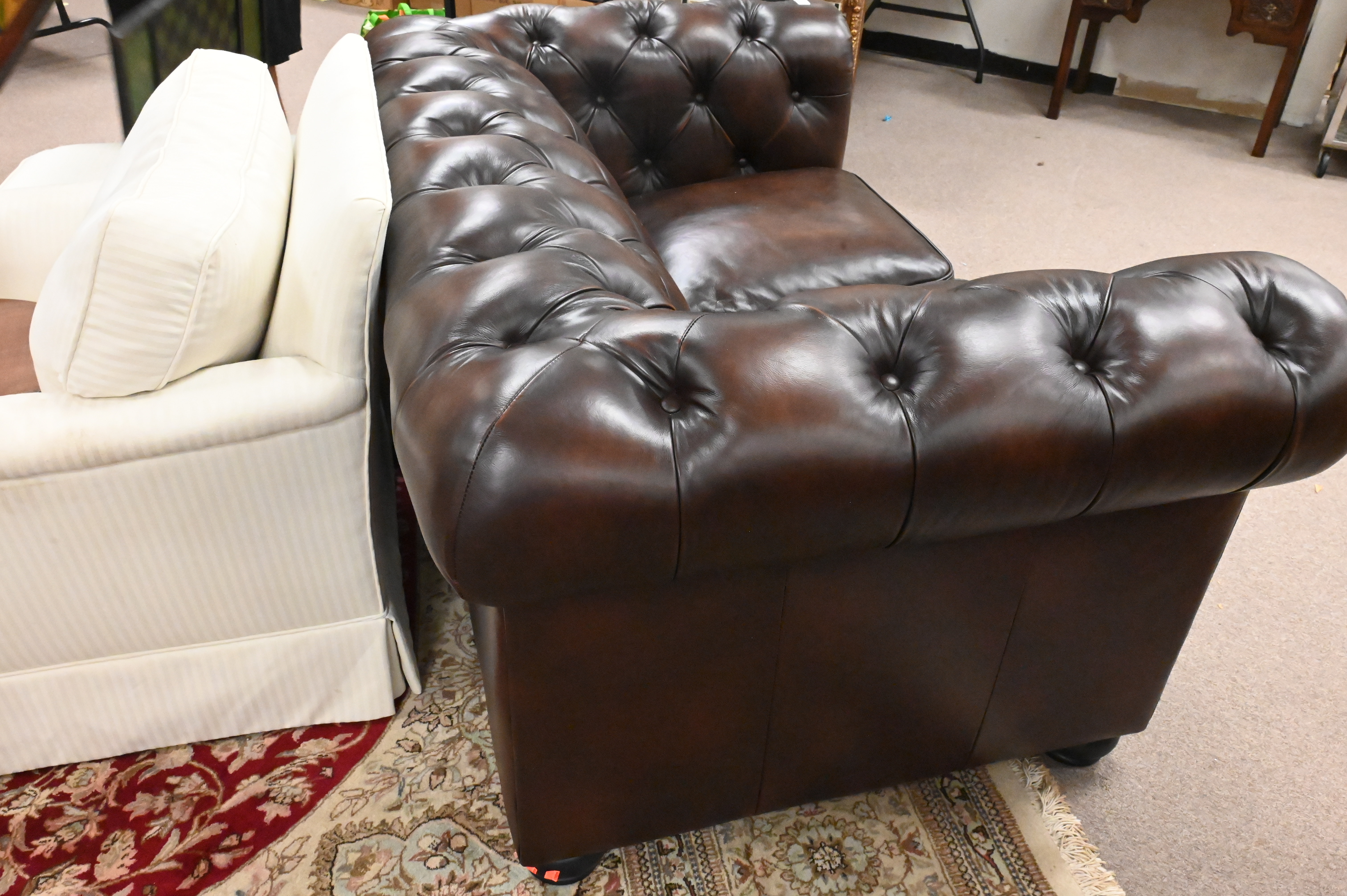 Chesterfield Style Leather Loveseat