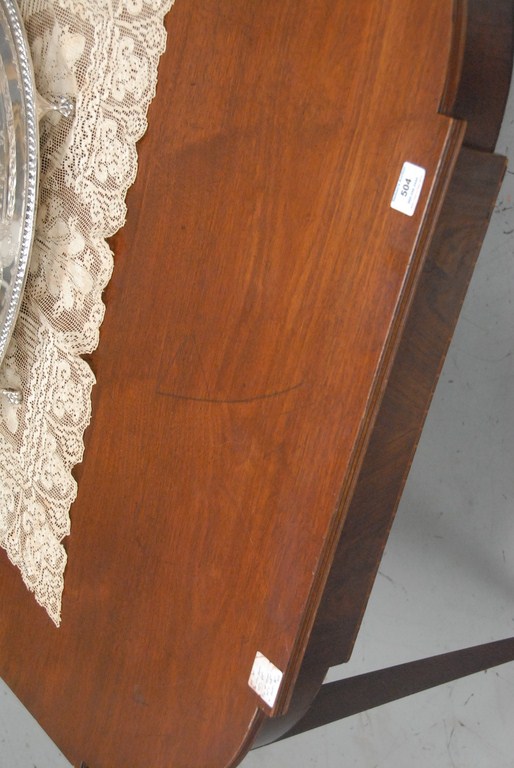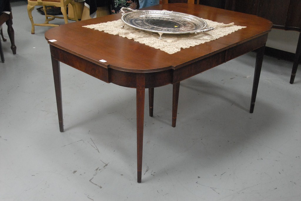 Lot 504: Margolis mahogany Federal style dining table with D shaped ends over conforming frieze all set on square tapered legs with four 12 i…