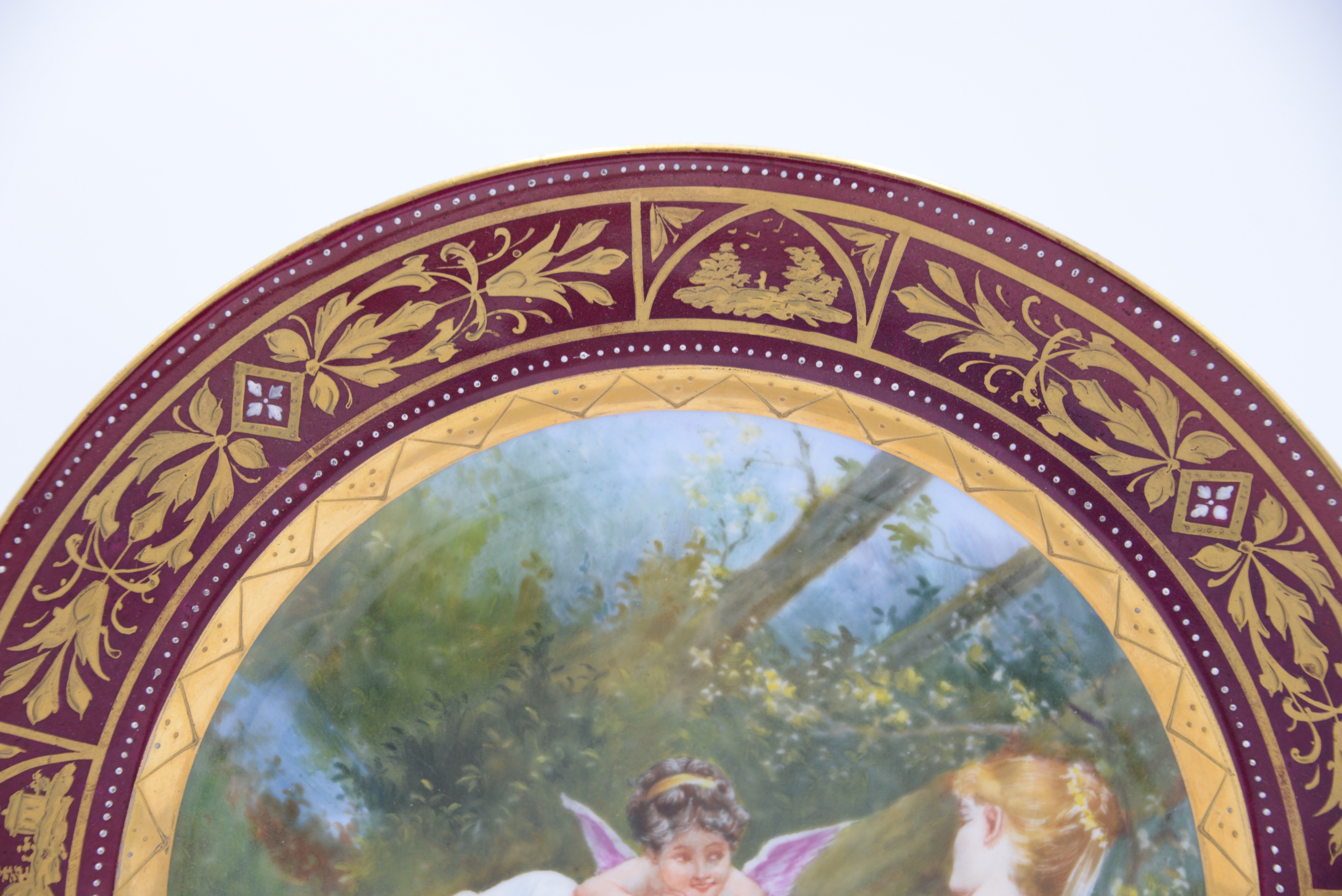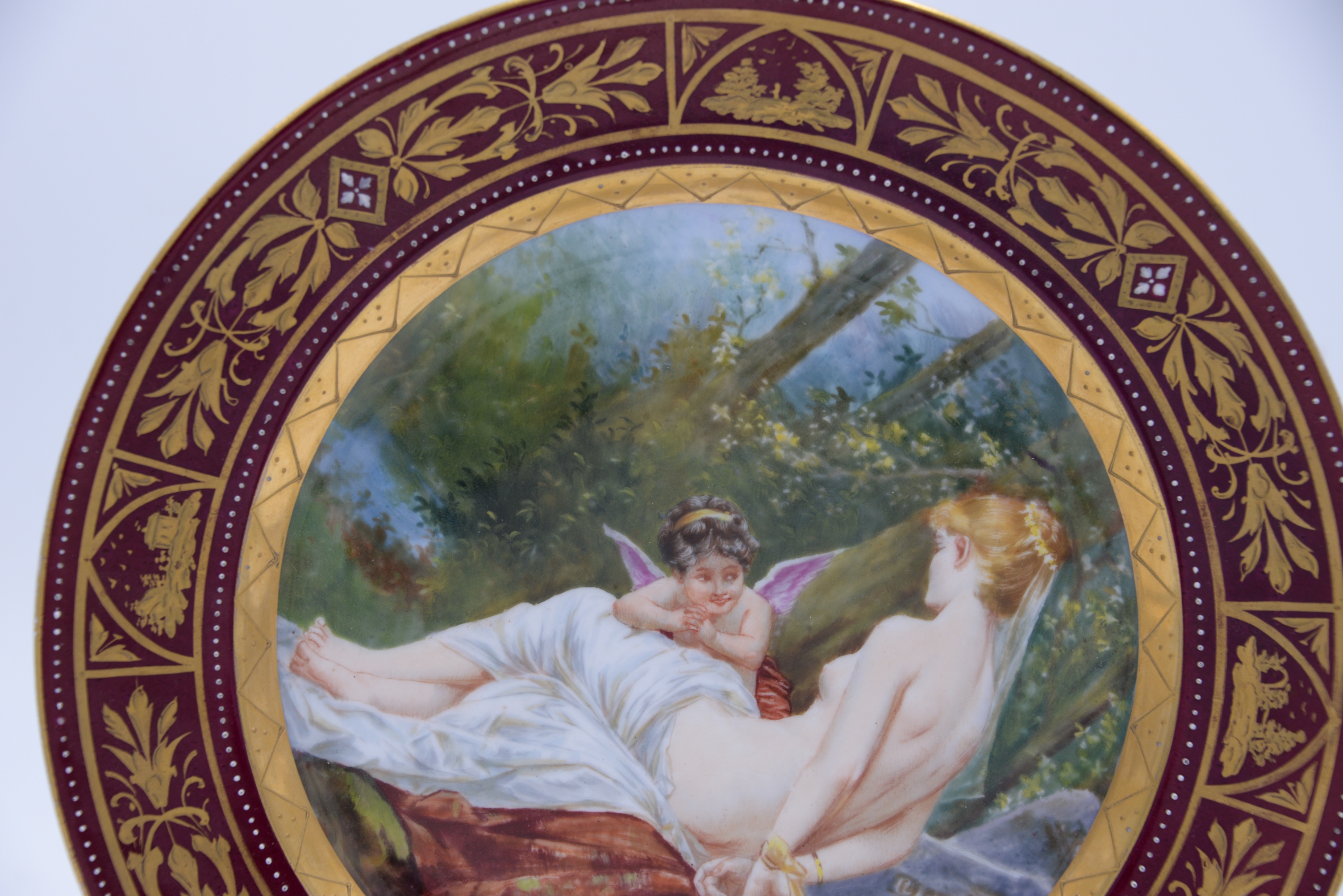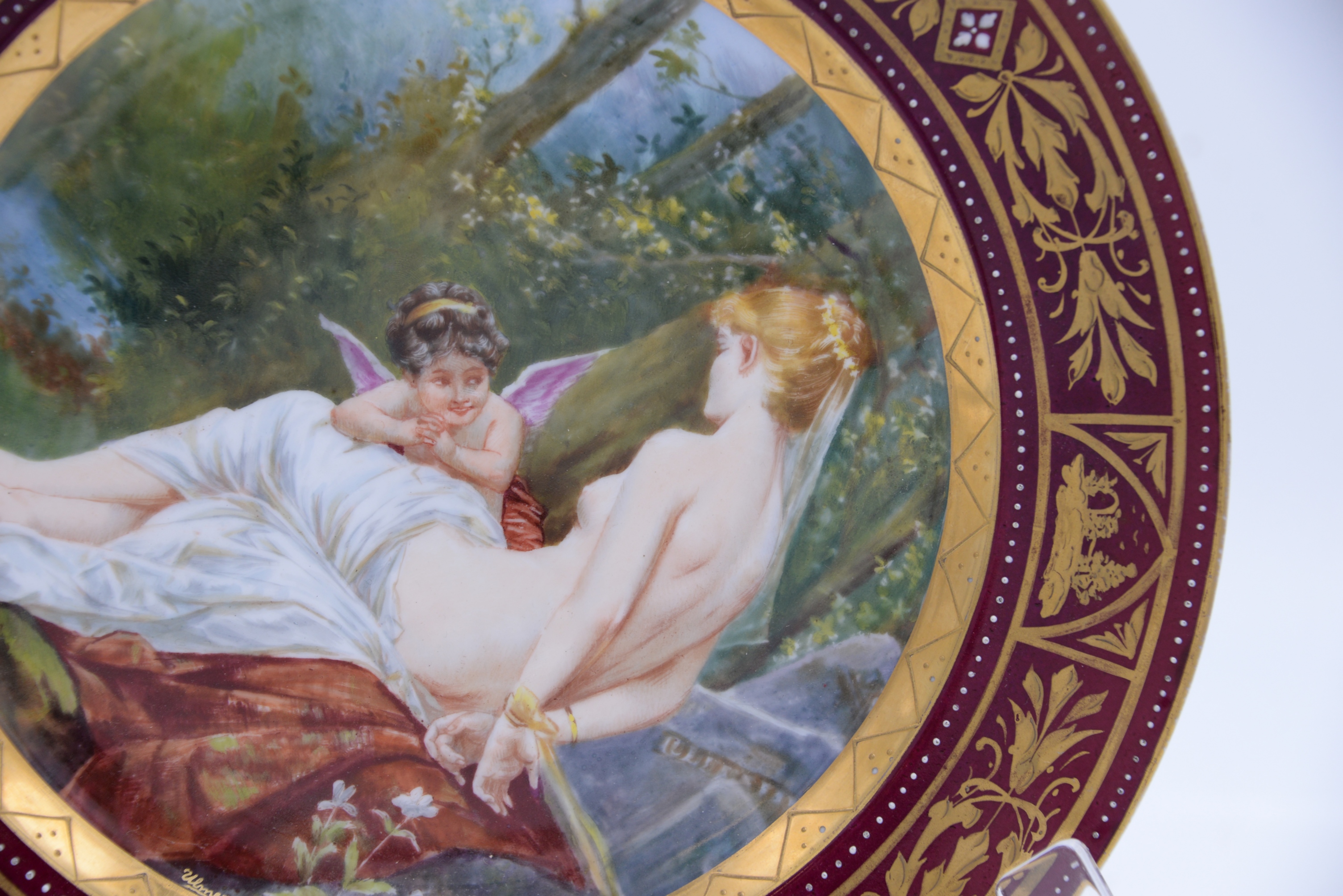 Royal Vienna Porcelain Charger, having hand painted partially clad woman, artist signed, “Ulmer”, diameter 12 inches.