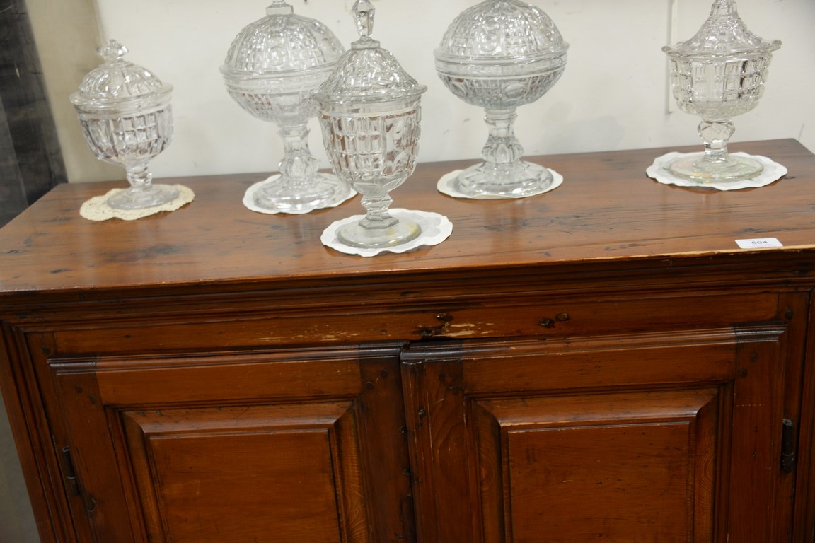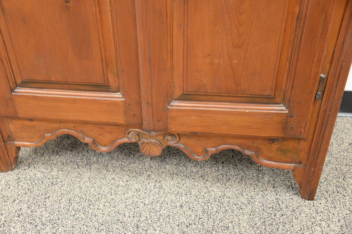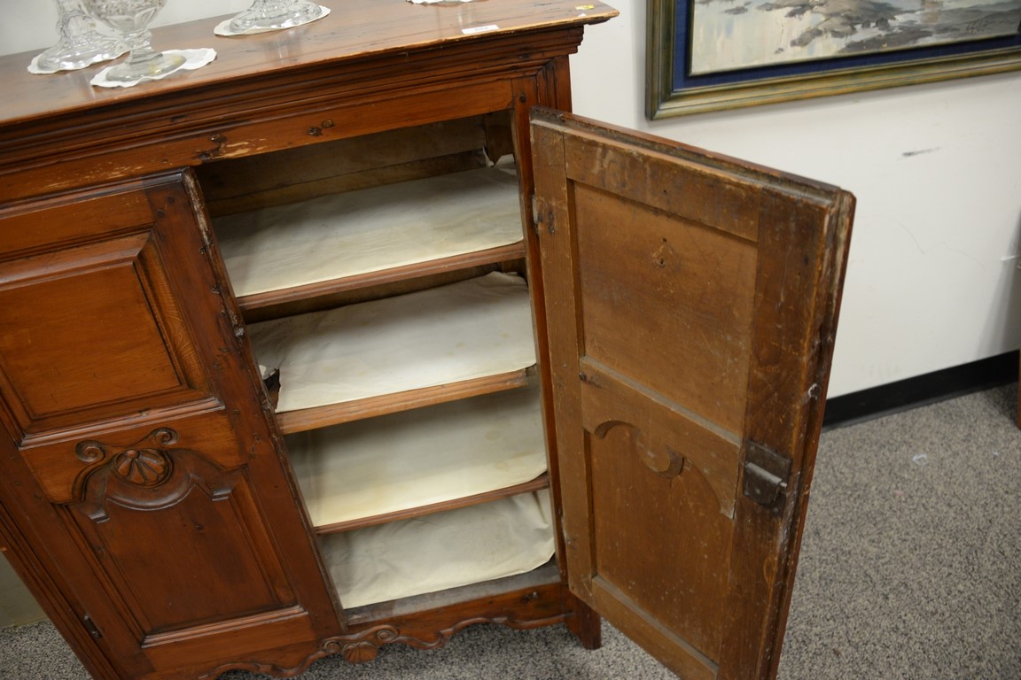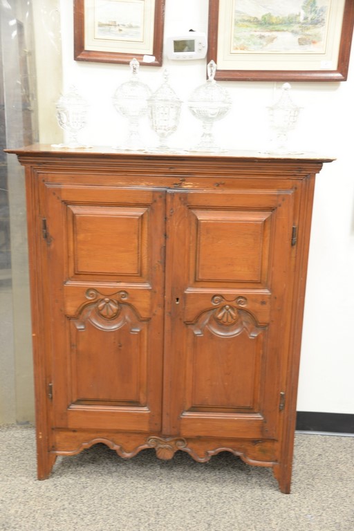 Two door cupboard, doors with raised panels and carving. ht. 47in., wd. 36in., dp. 18in.