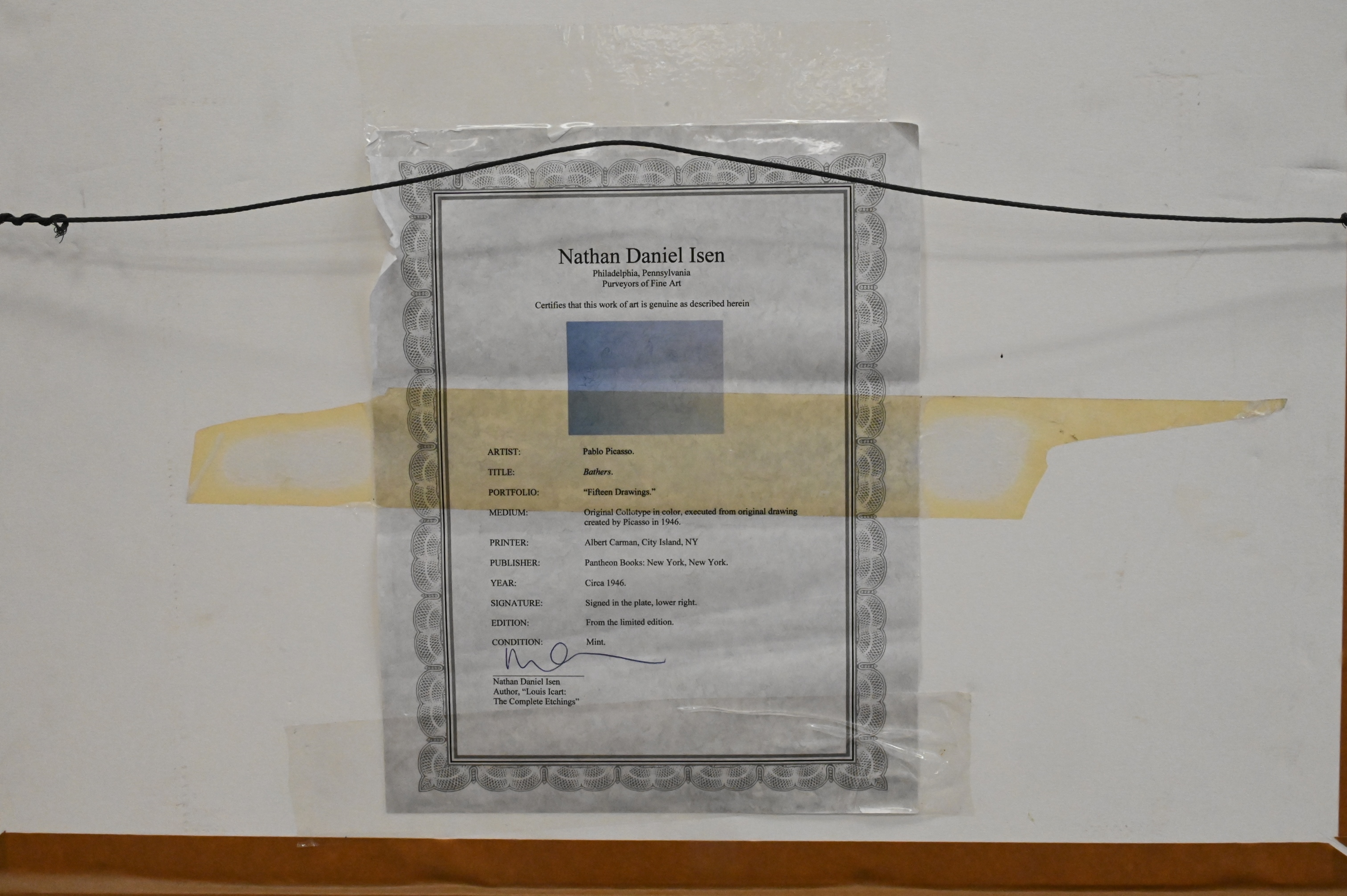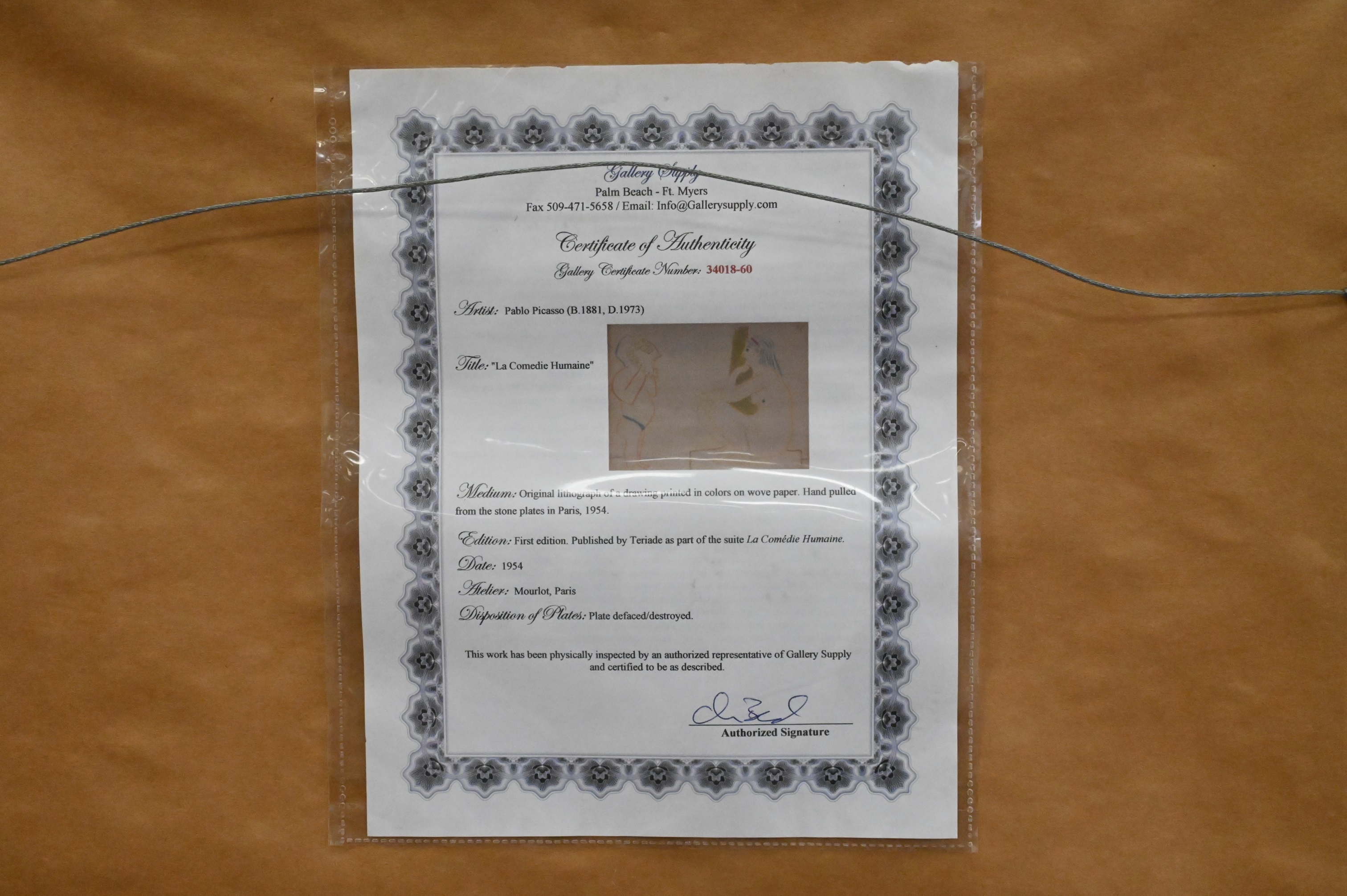 certificate of authenticity by Gallery Supply on verso