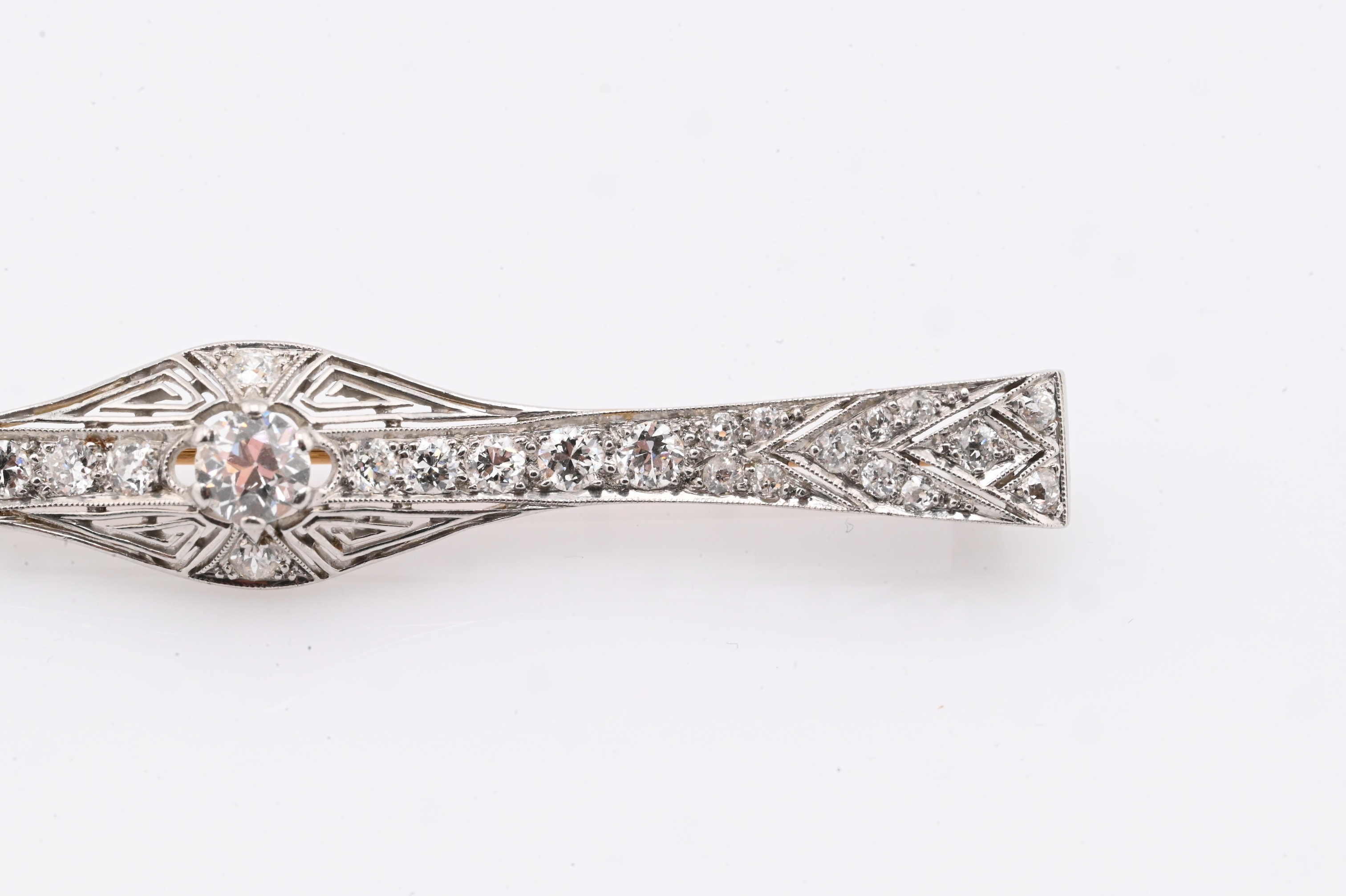 Art Deco Diamond Brooch in Platinum 950 with 18K Yellow Gold Pin Fitting