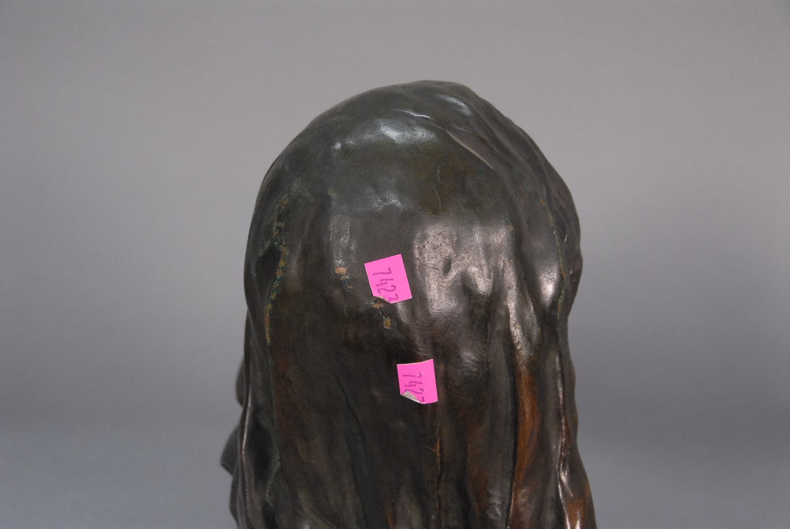 DelaGrange Bronze BUST OF A GIRL foundry mark on reverse ht. 12 1/2 in. wd. 15 1/2 in.