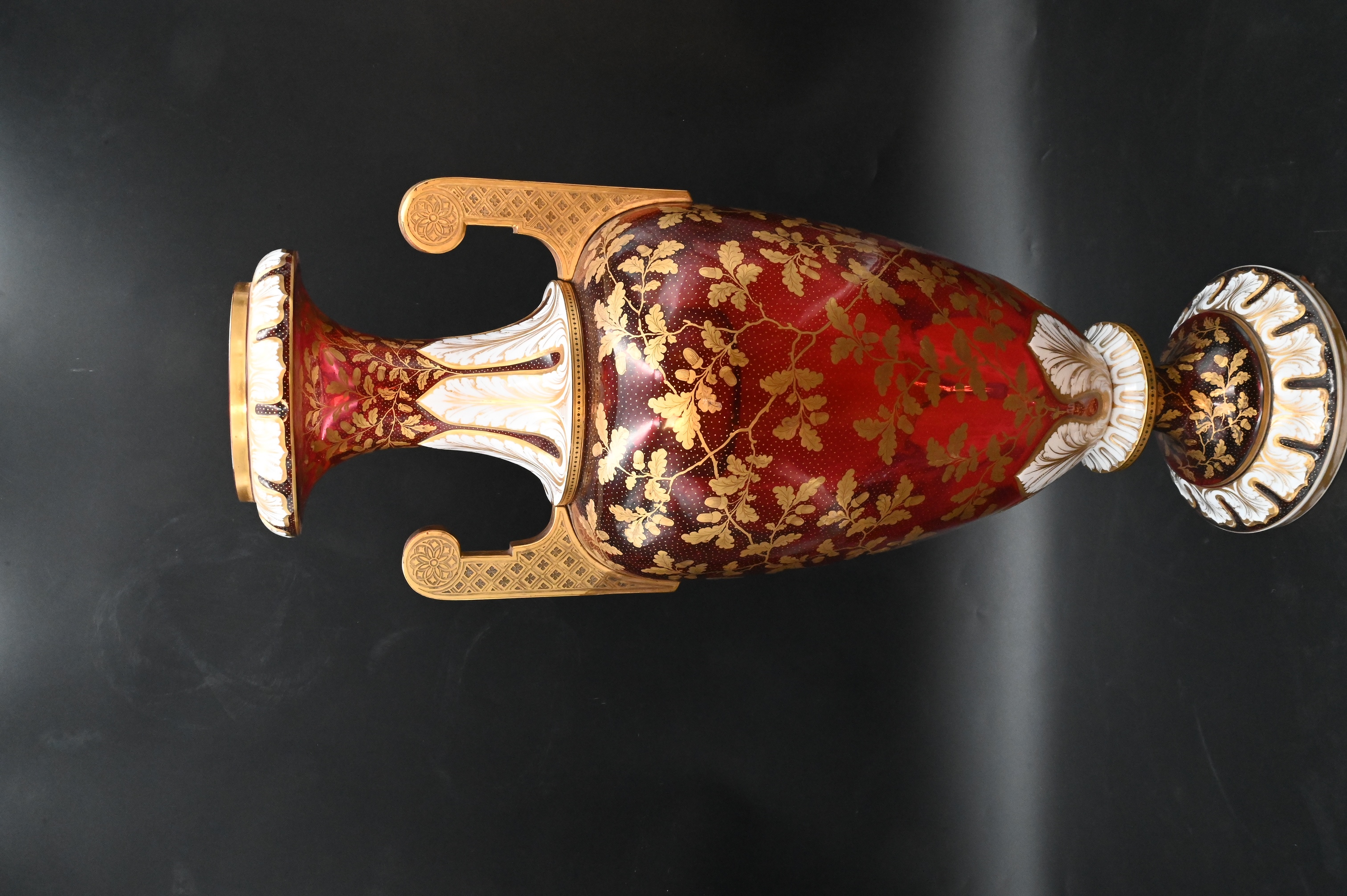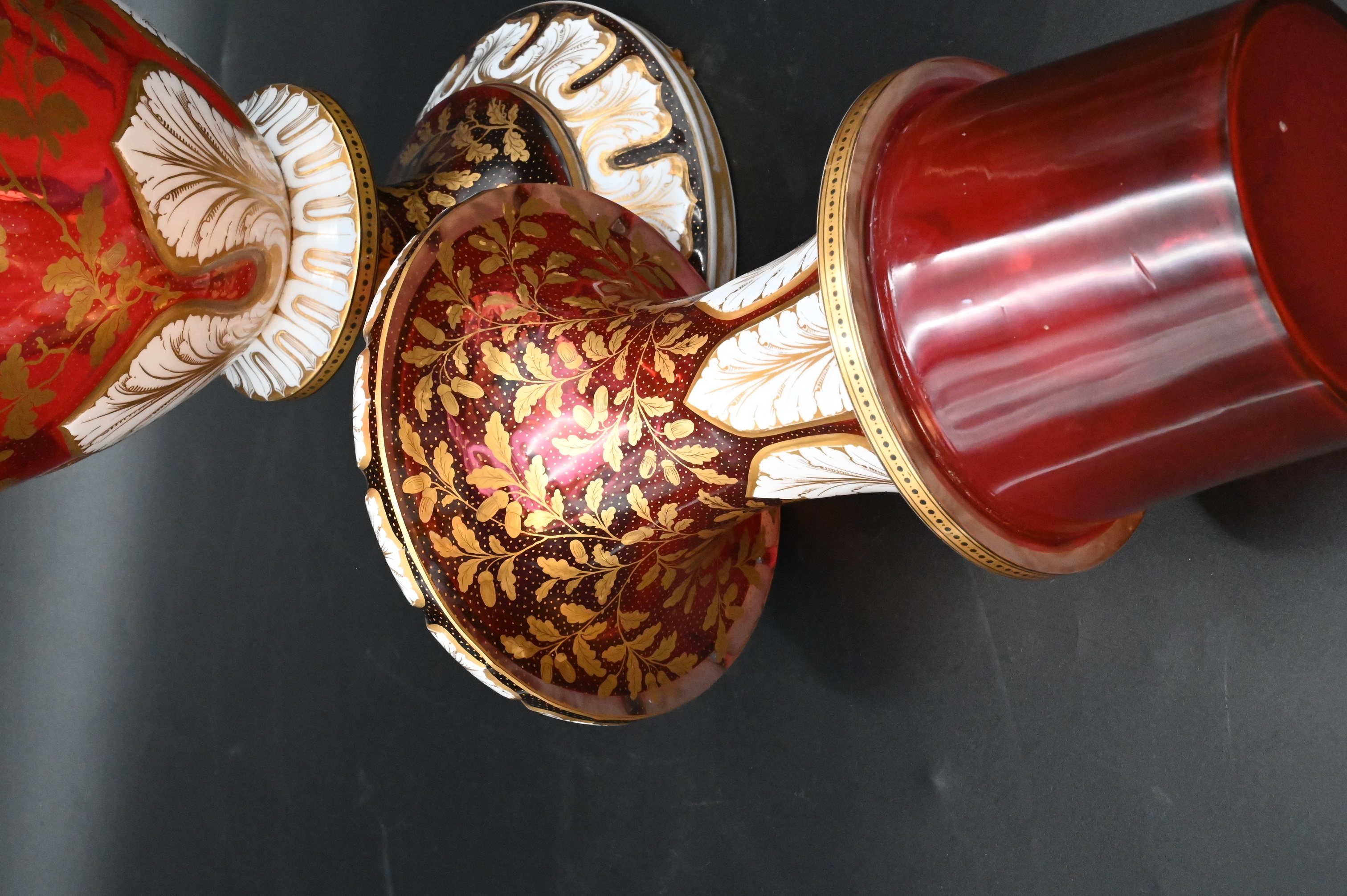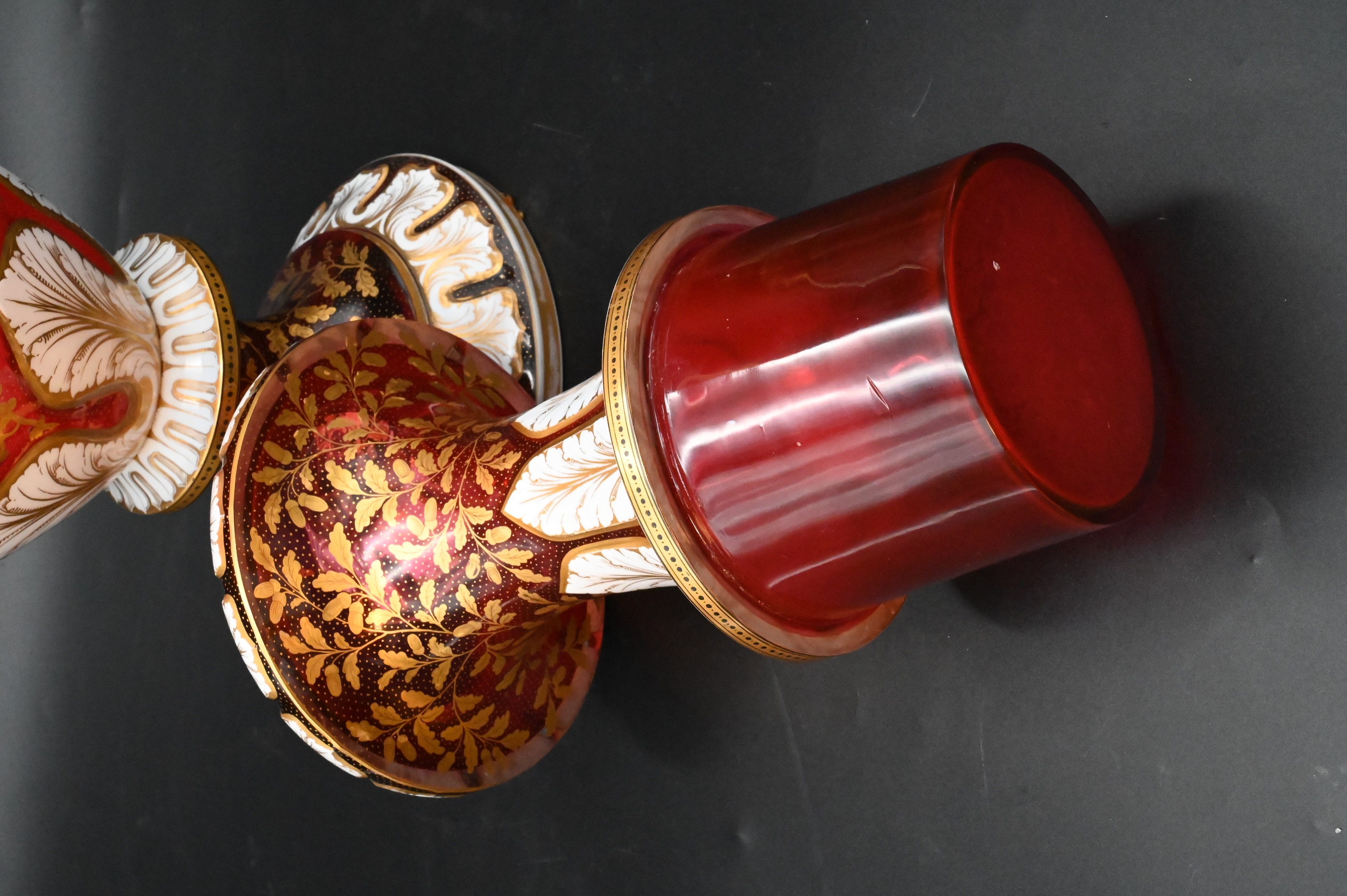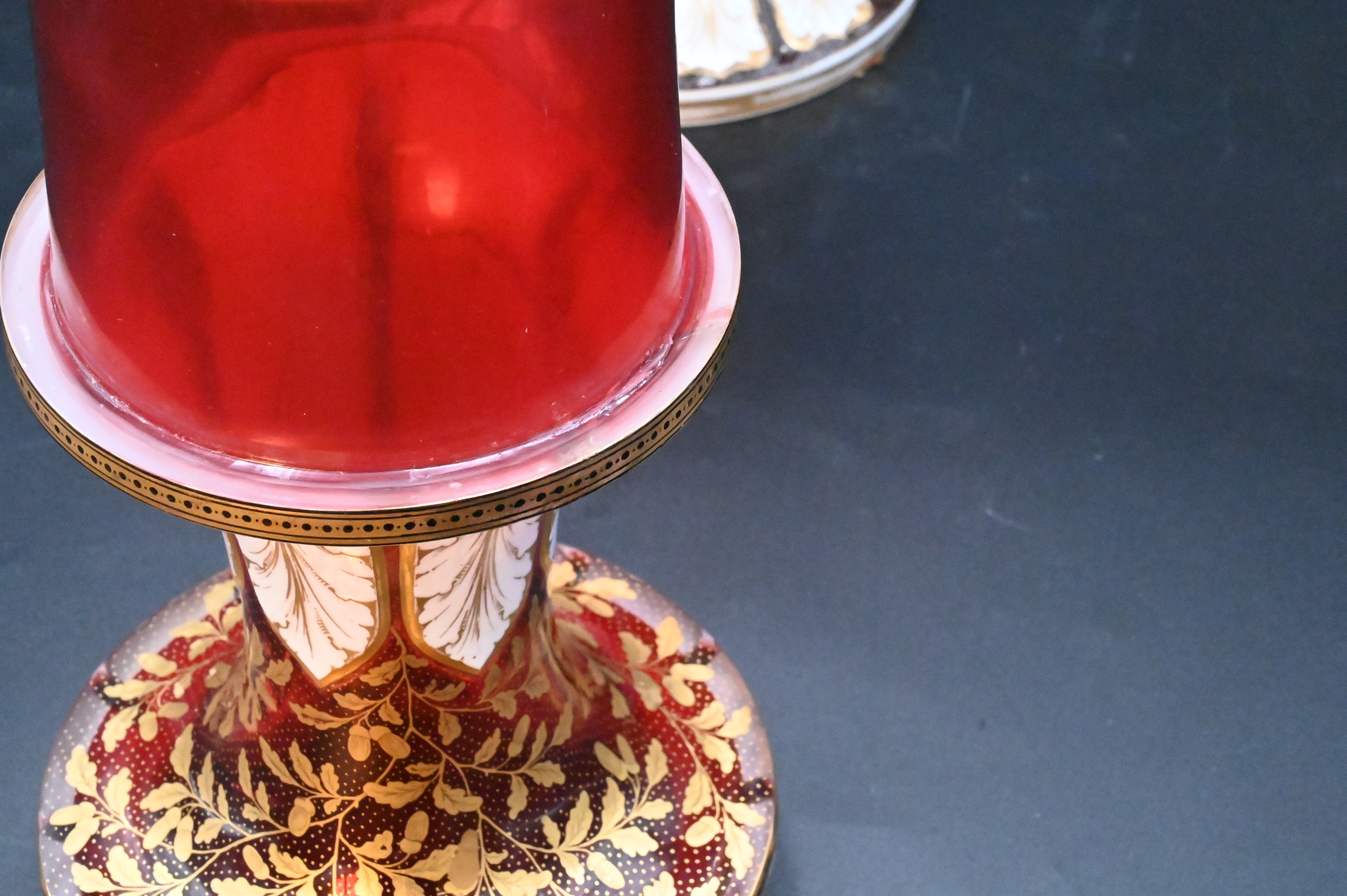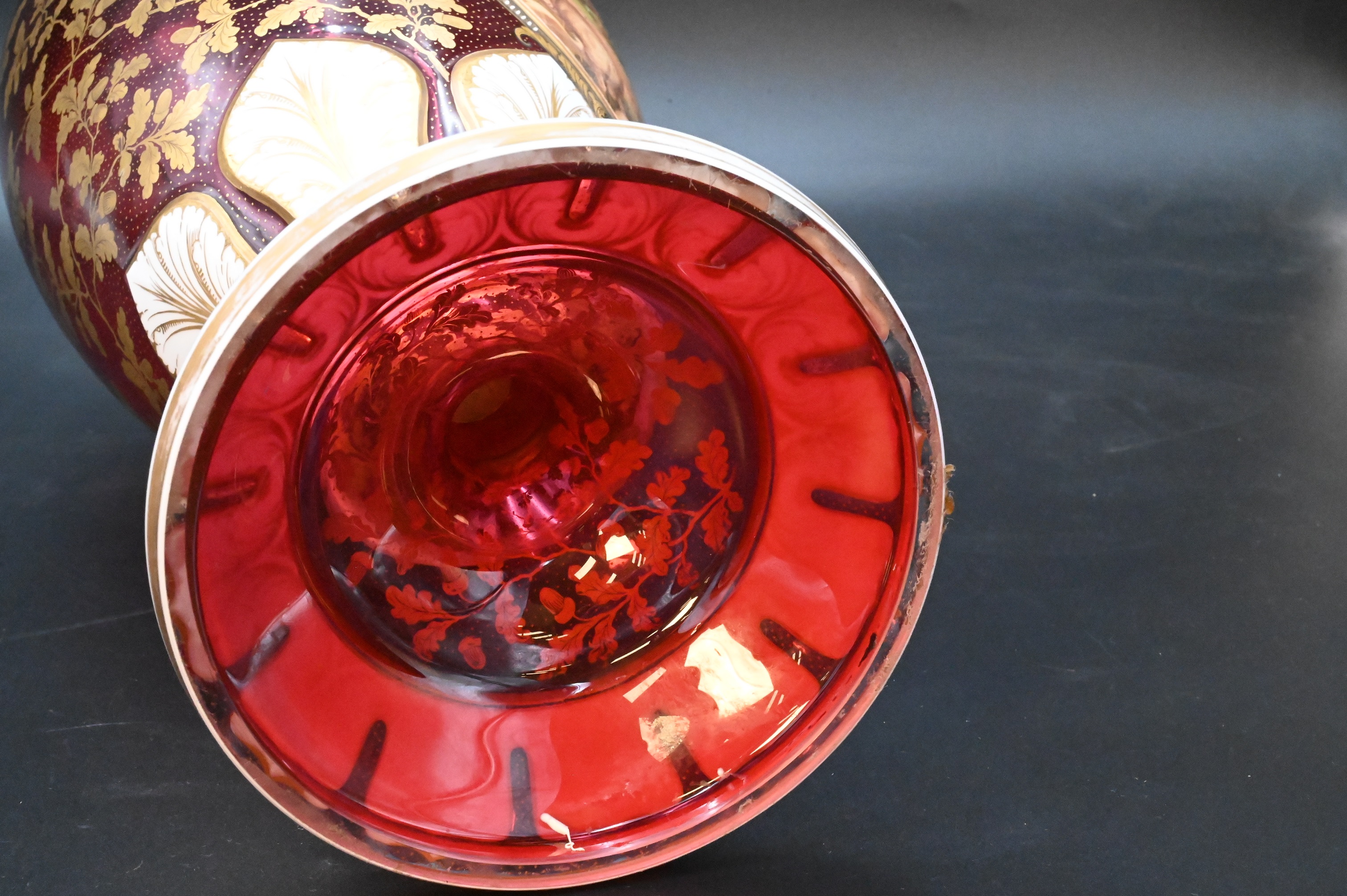 Lot 506: Cranberry Glass Urn with White Overlay Accents