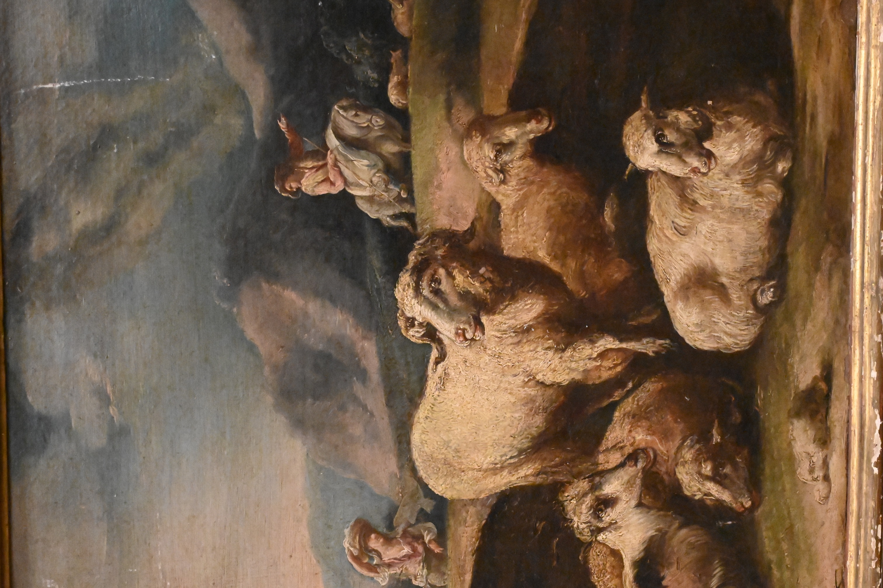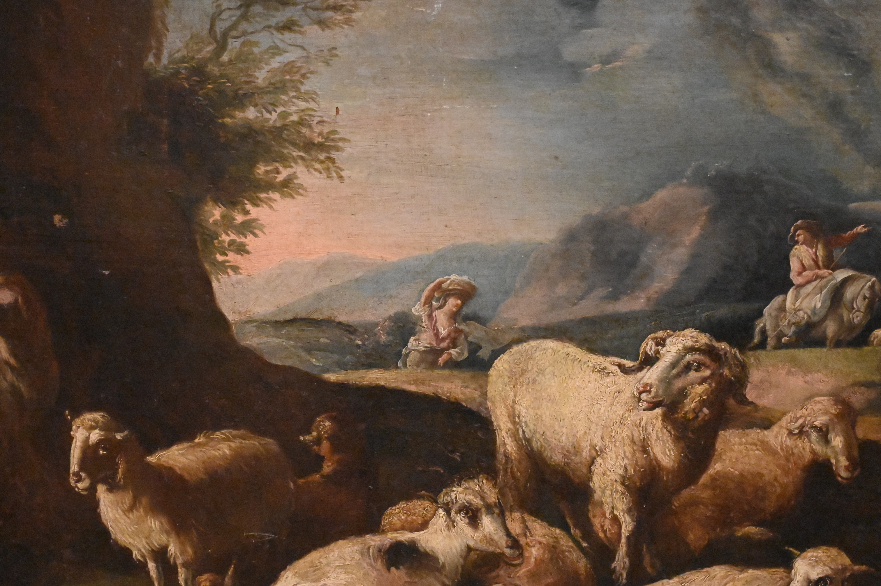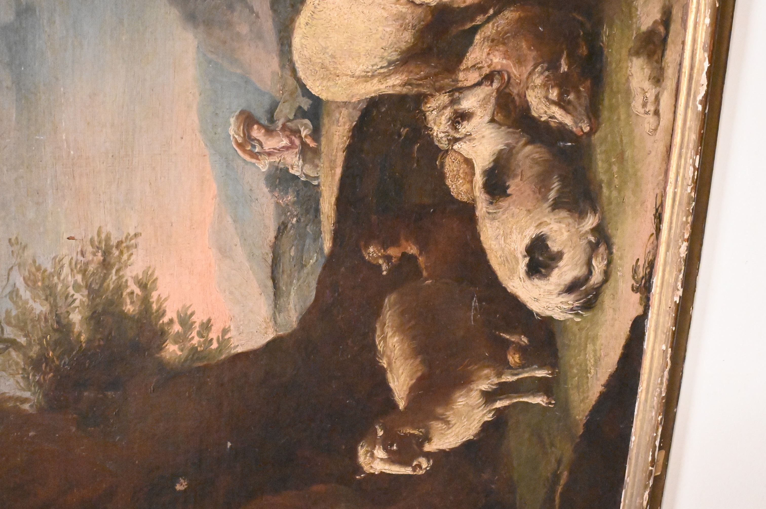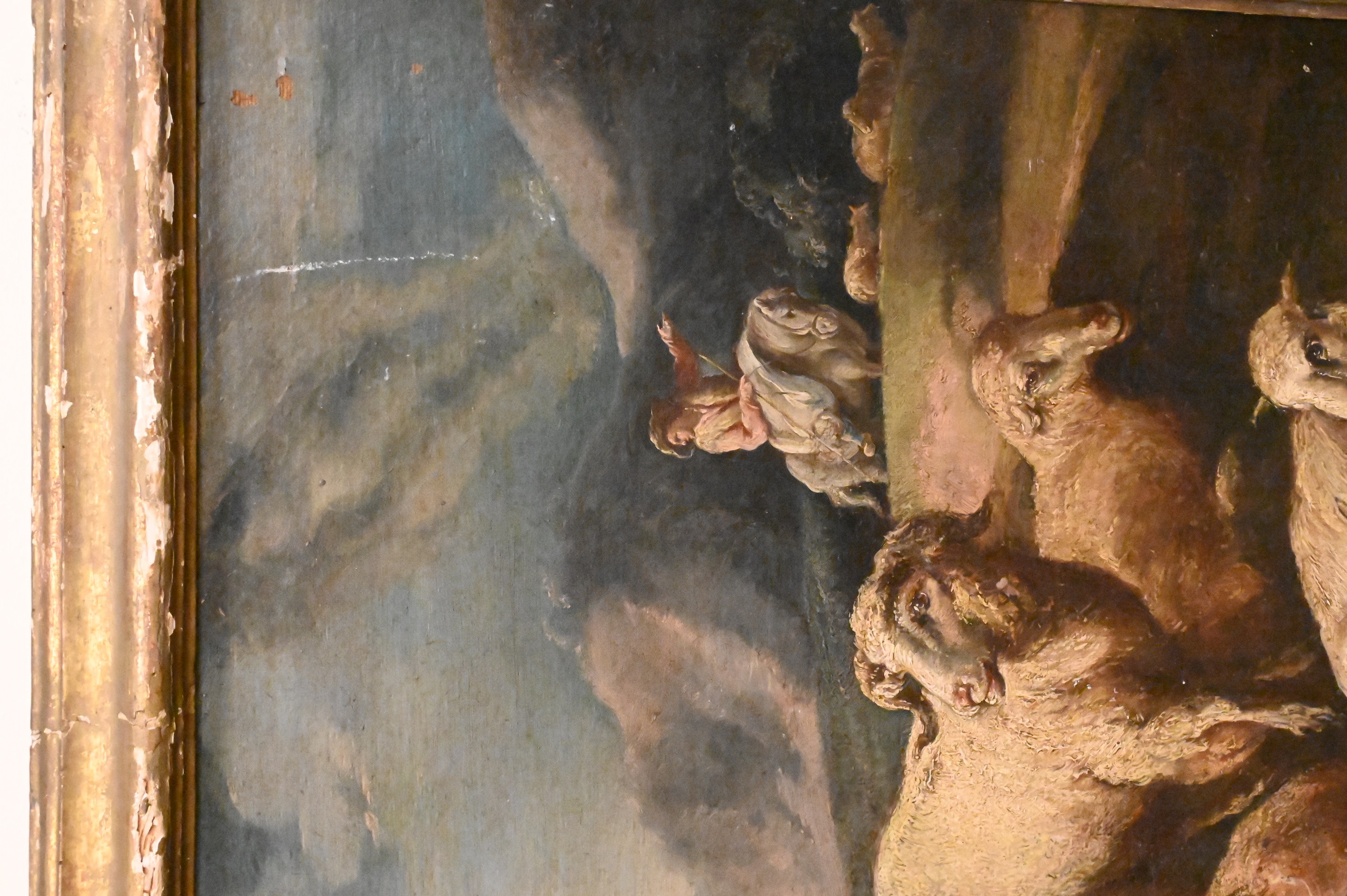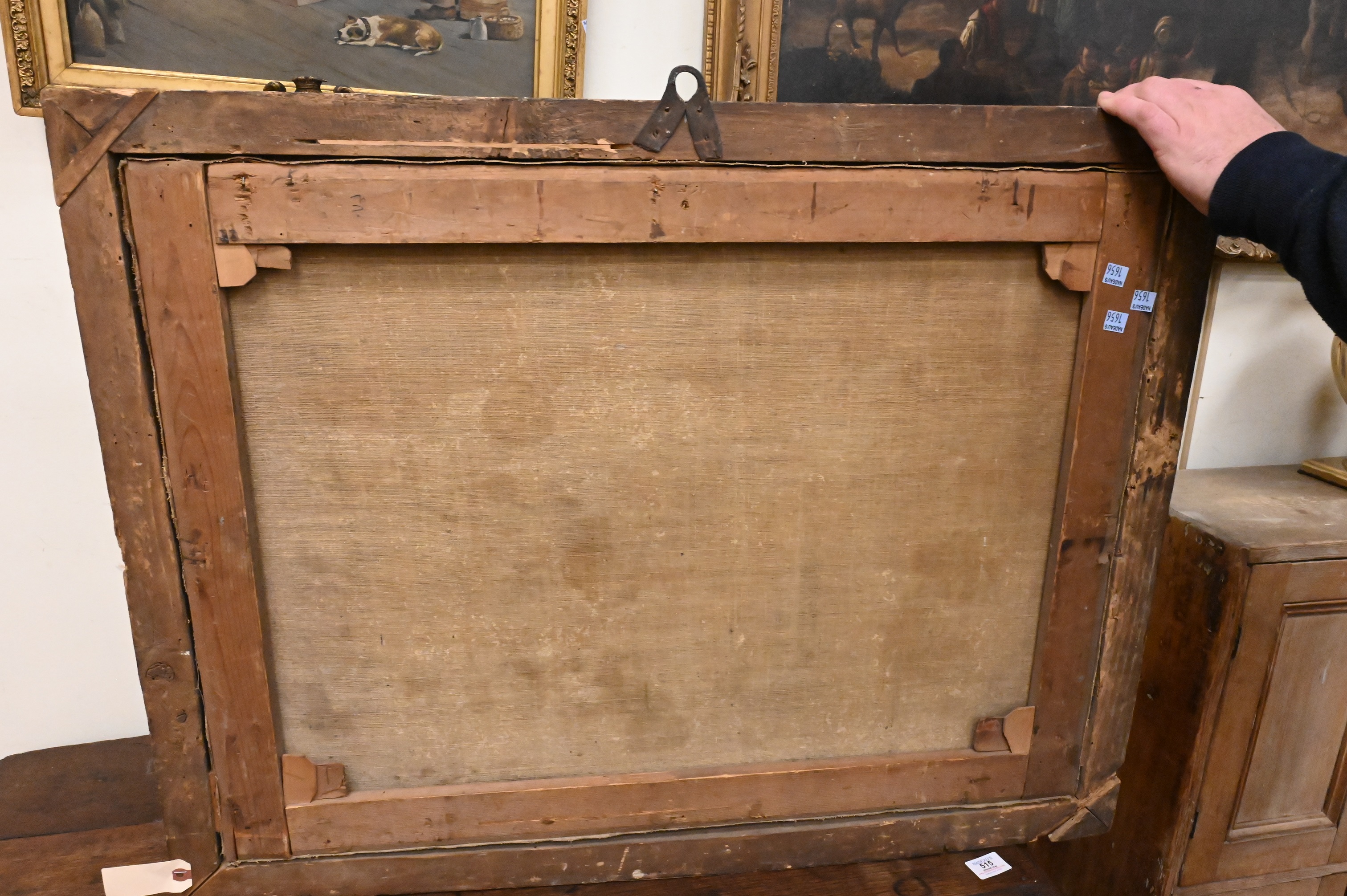 Condition: surface grime, minor paint loss, edge and frame wear, minor scratches, abrasions, relined