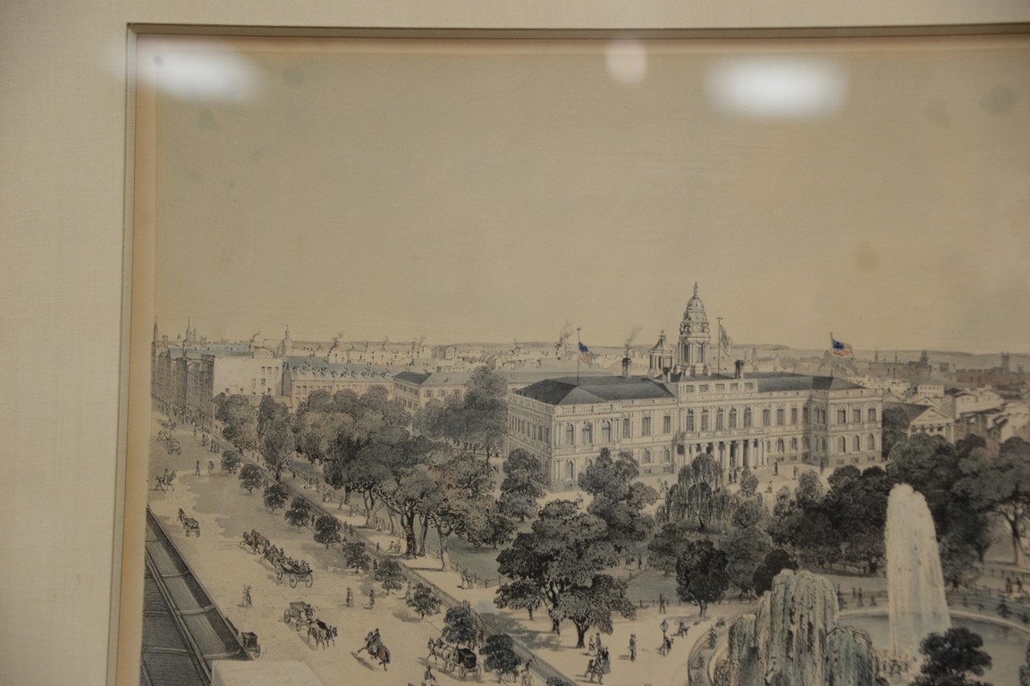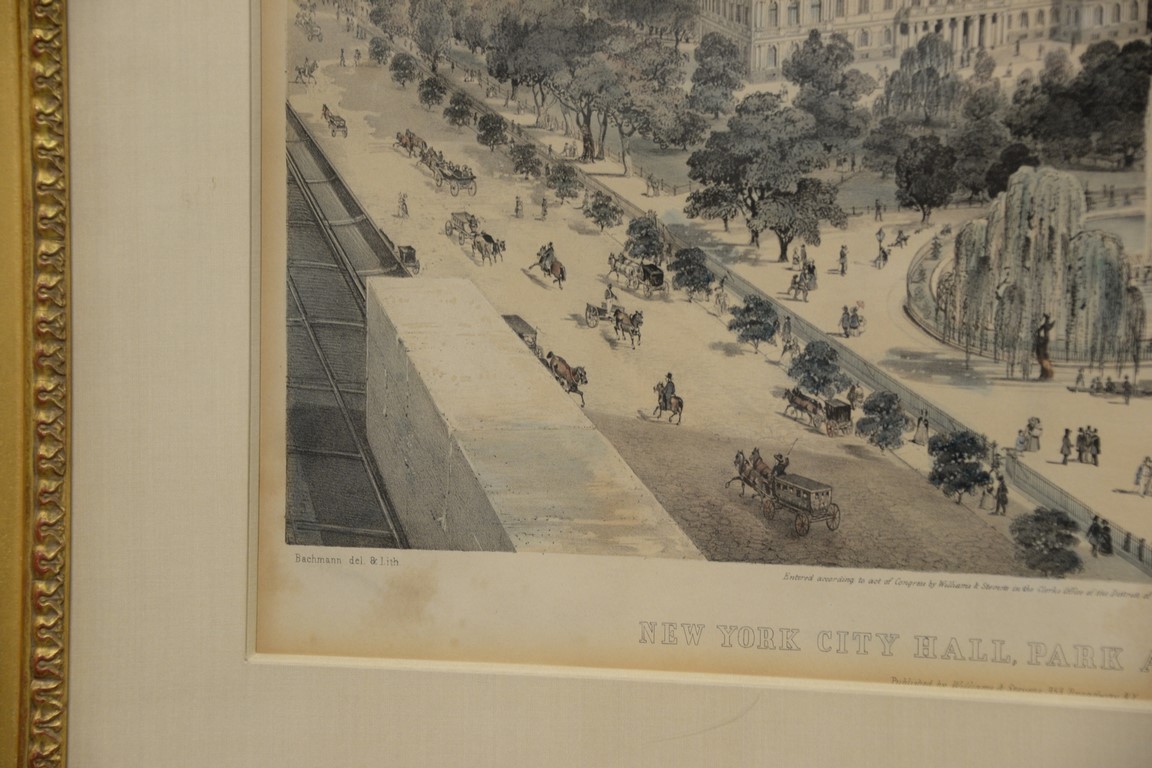 Lot 506: John Bachmann, hand colored lithograph, New York City Hall, Park and Environs, published by William Stevens, New York 1848-1849, s…