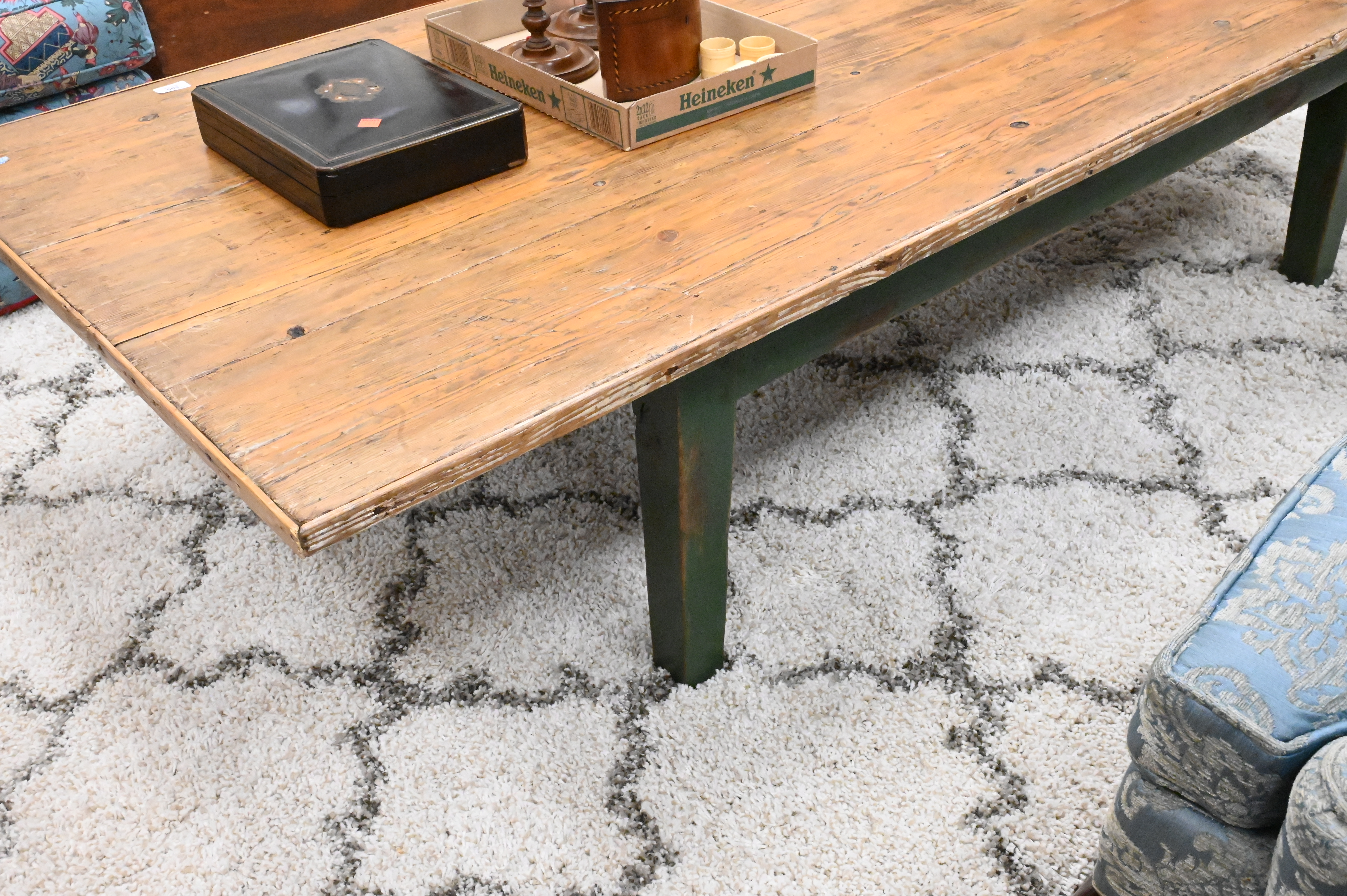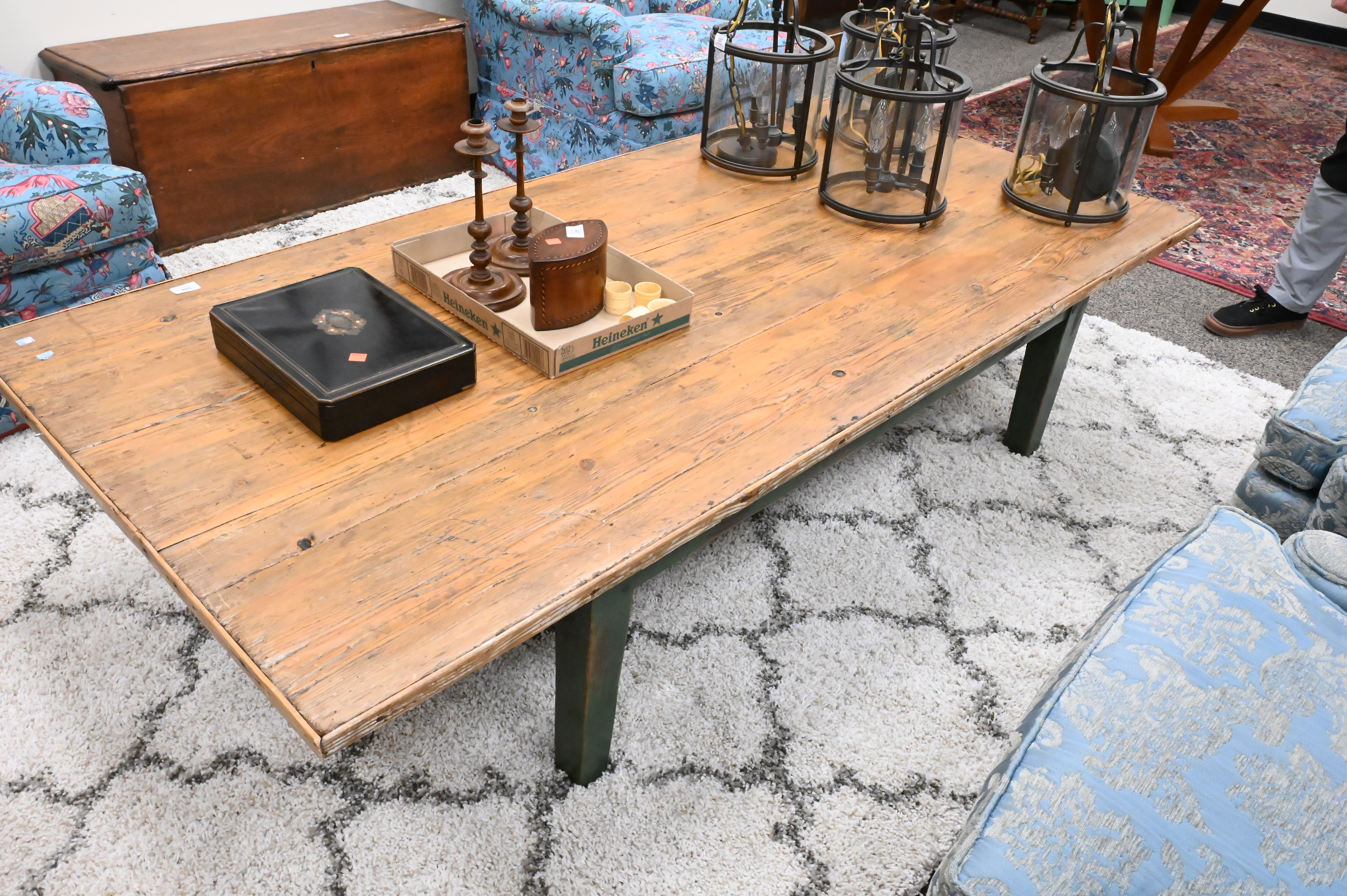 Large Pine Country Tavern Style Coffee Table, height 18 inches, top 37″ x 78″.