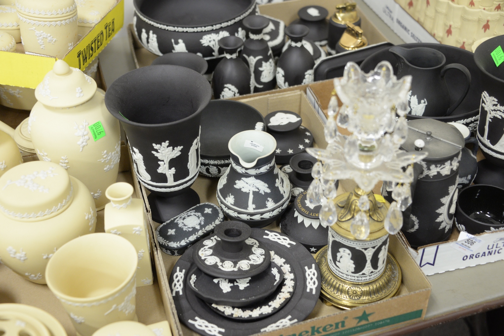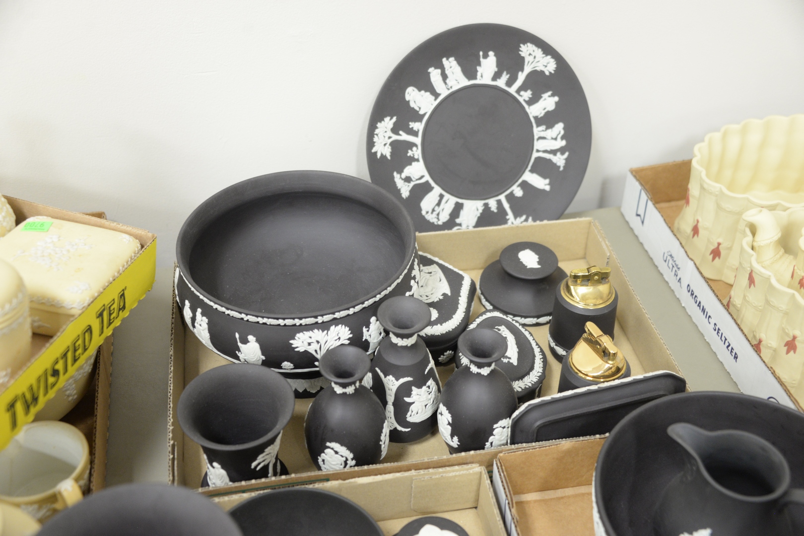 Three Tray Lots of black and white Wedgwood Jasperware, to include bowls, vases, pitchers, etc. Provenance: Estate of James Wadhams
