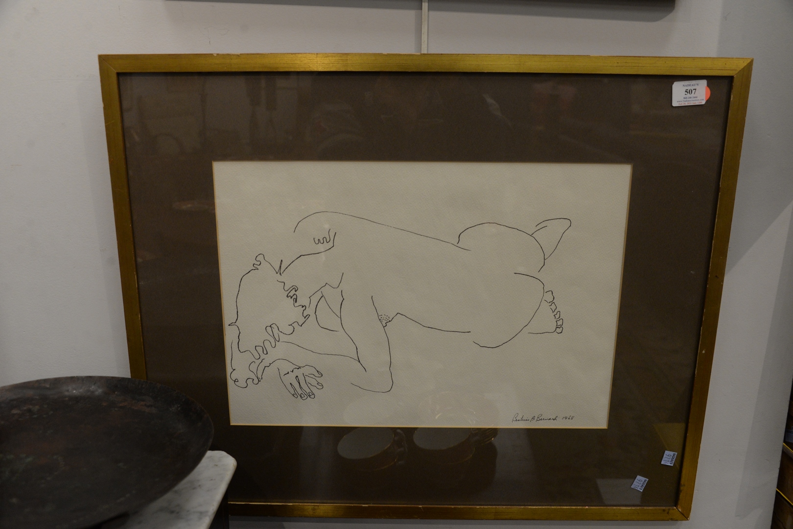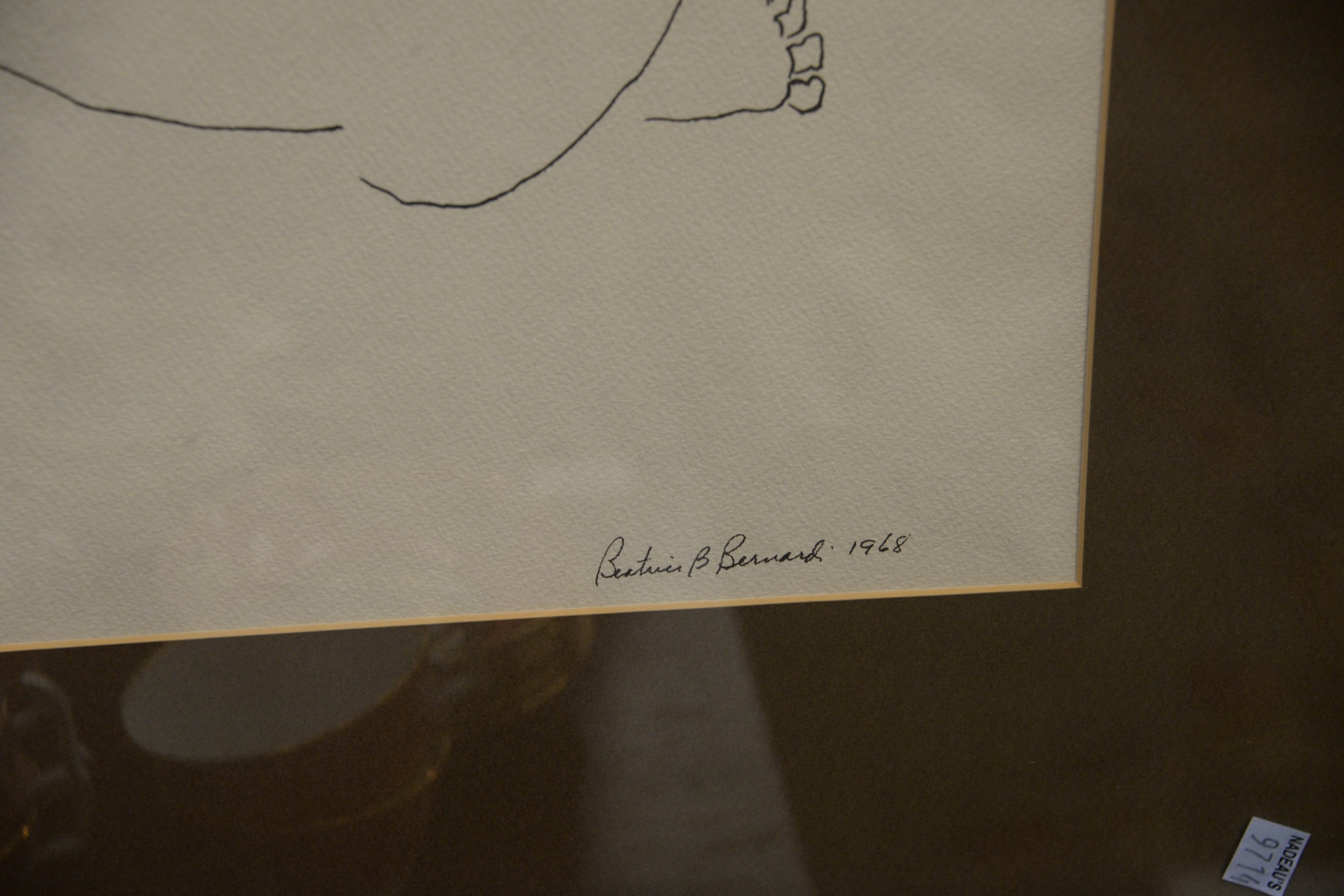 Lot 507: Beatrice Bernardi (American, 1901 – 1991), female figure, 1968 ink on paper, signed and dated lower right: Beatrice Bernardi 1968 13 3/4″ x 19 1/2″ (sight).