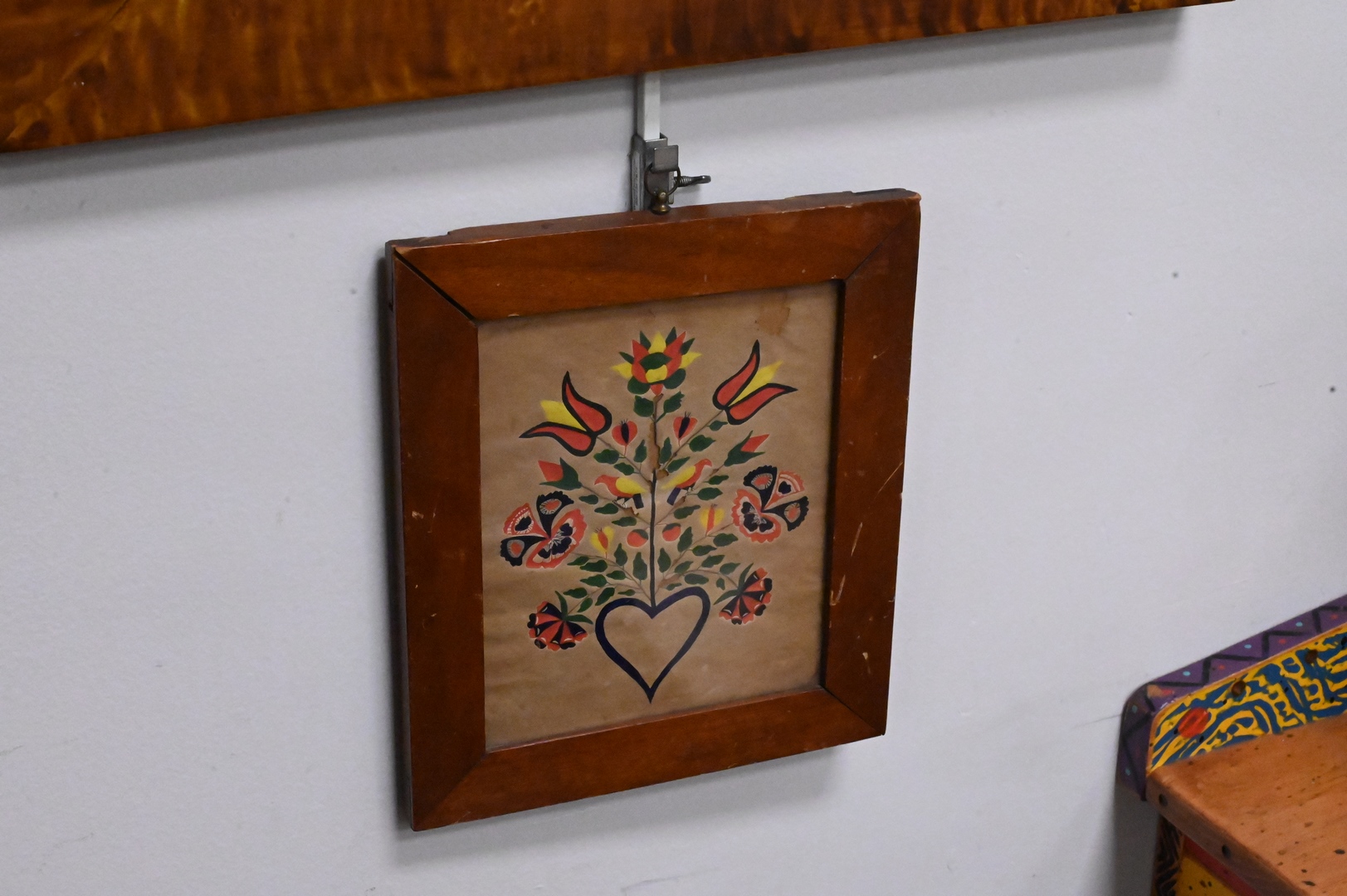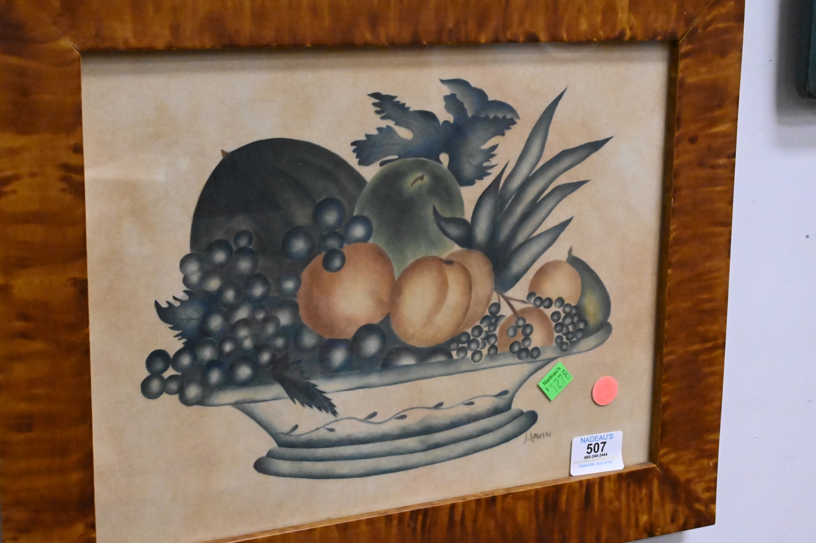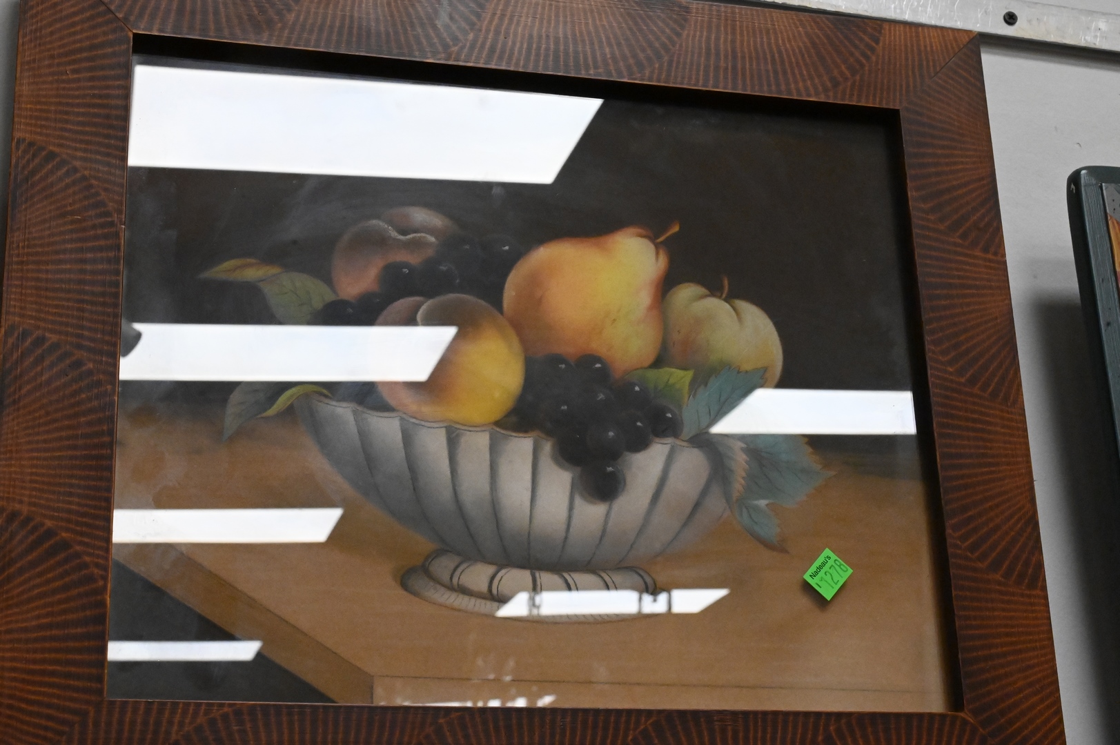 Four Piece Framed Lot, to include a mixed media still life of fruit, signed Bauer lower left; one early watercolor; still life of fruit theorem; along with a reproduction printed fracture; largest 12″ x 15″. Provenance: Estate of Peter Tillou, Litchfield, Connecticut.