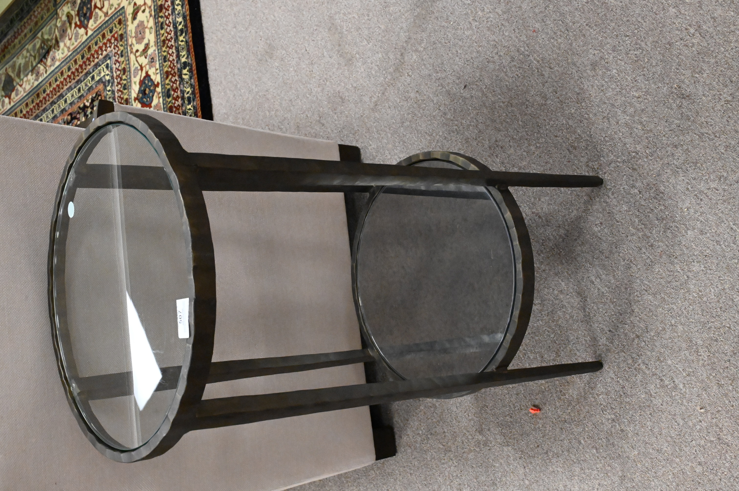 Lot 507: Pair of Bronze Two Tiered Brutalist End Tables