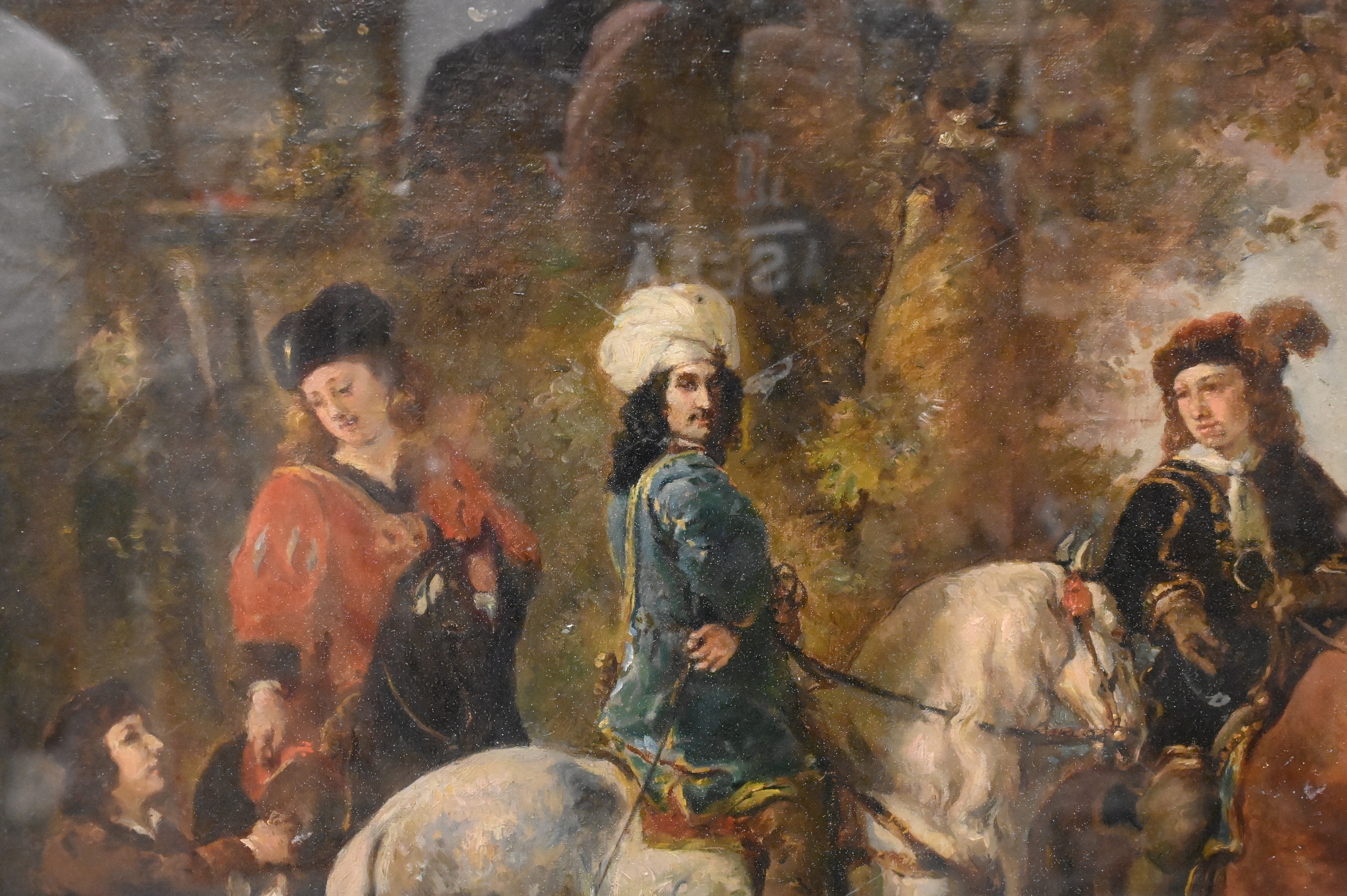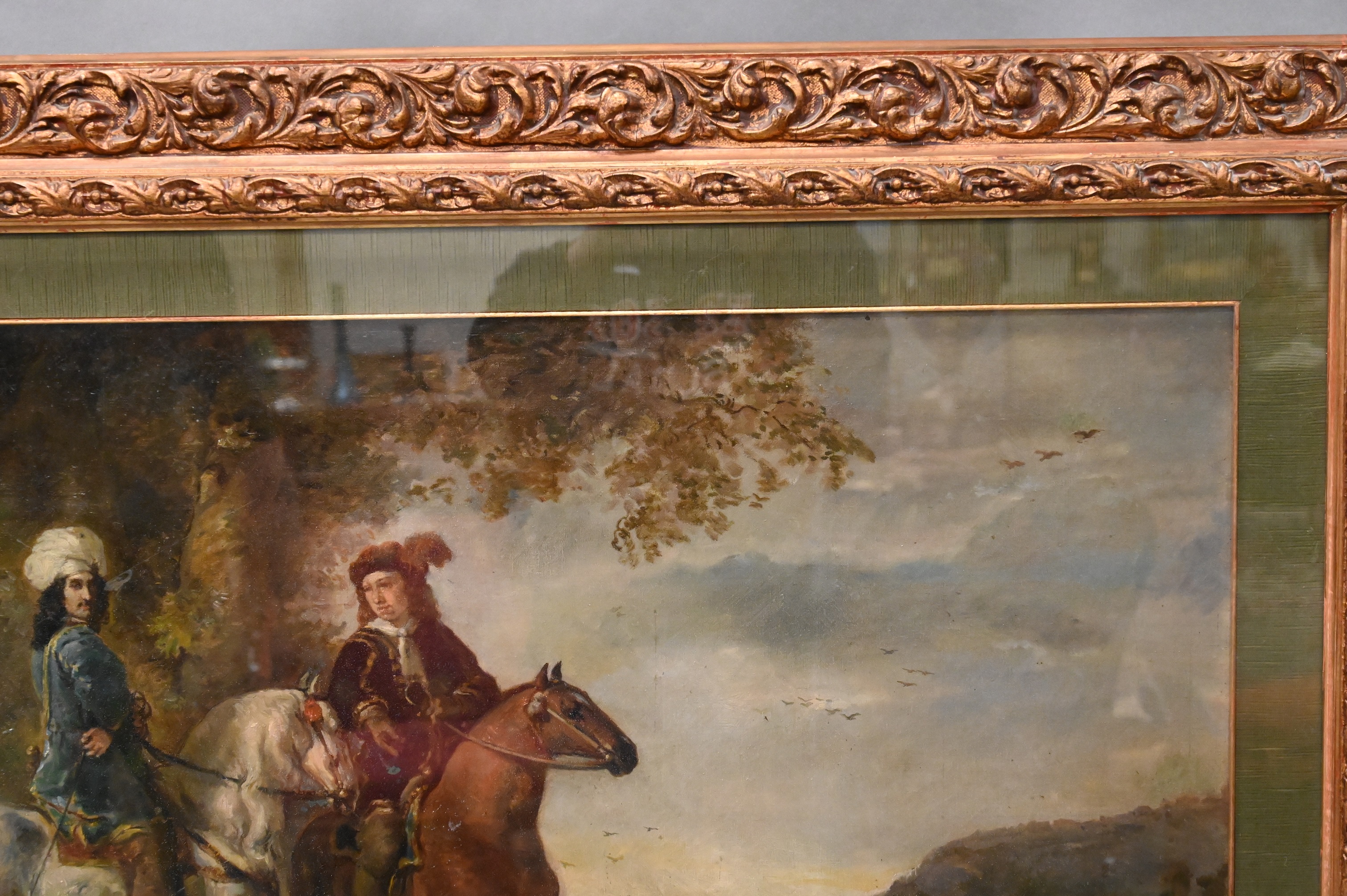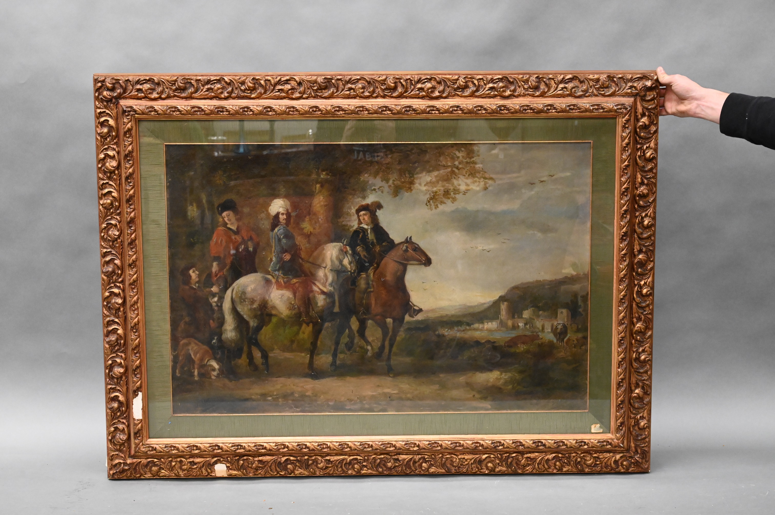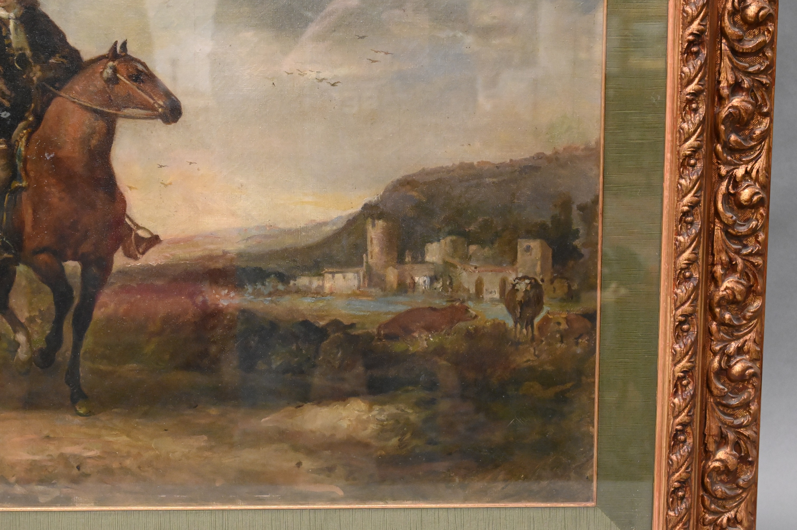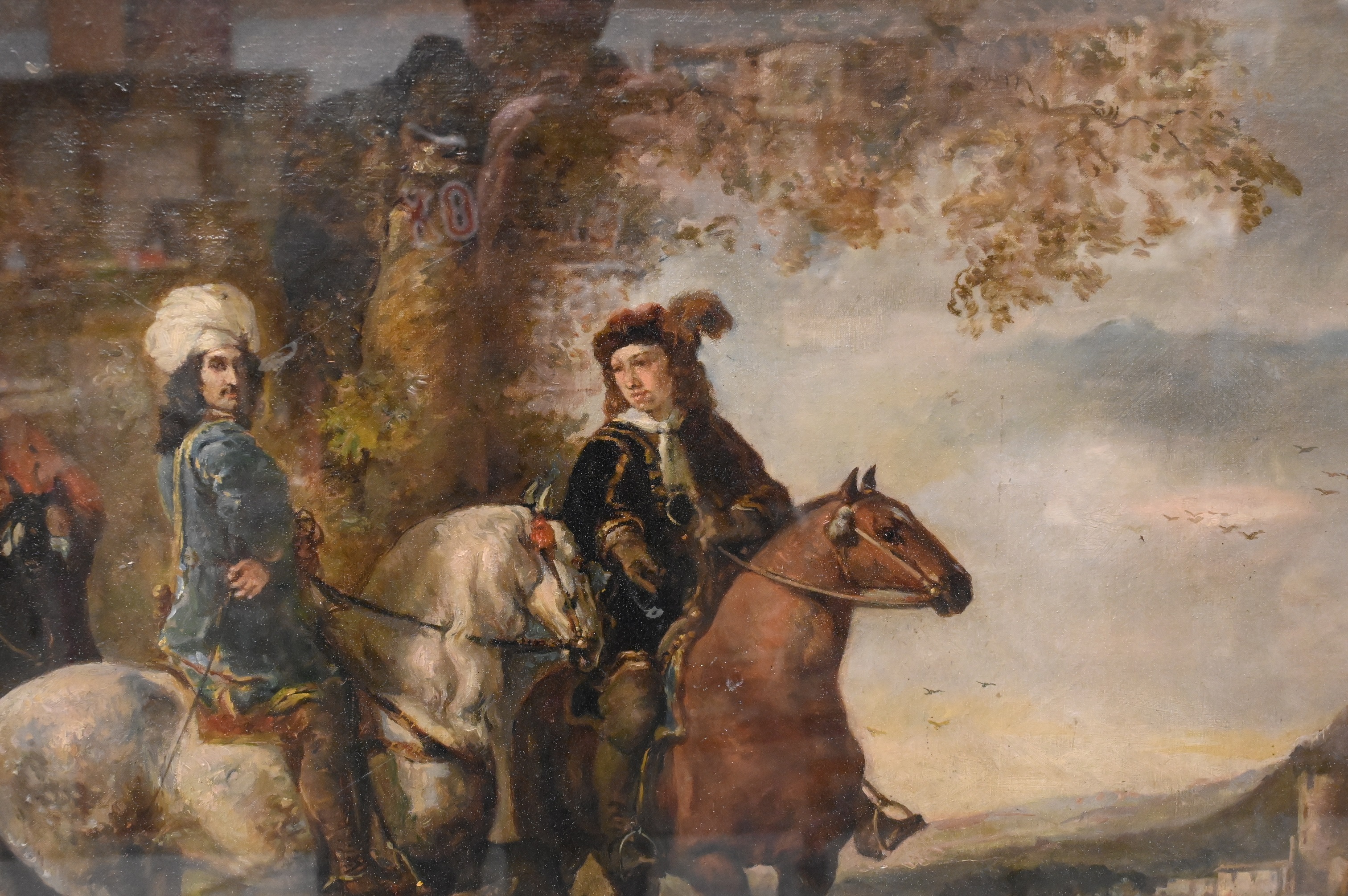 French Landscape Having Riders on Horseback, Farm Trade Outside of the Castle