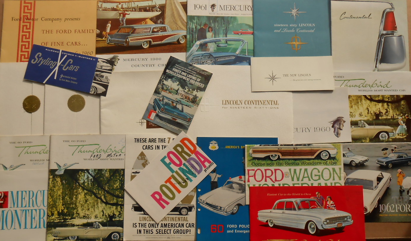 1957-1962 Ford, Thunderbird, Mercury and Lincoln brochures – 38 large, 8 small