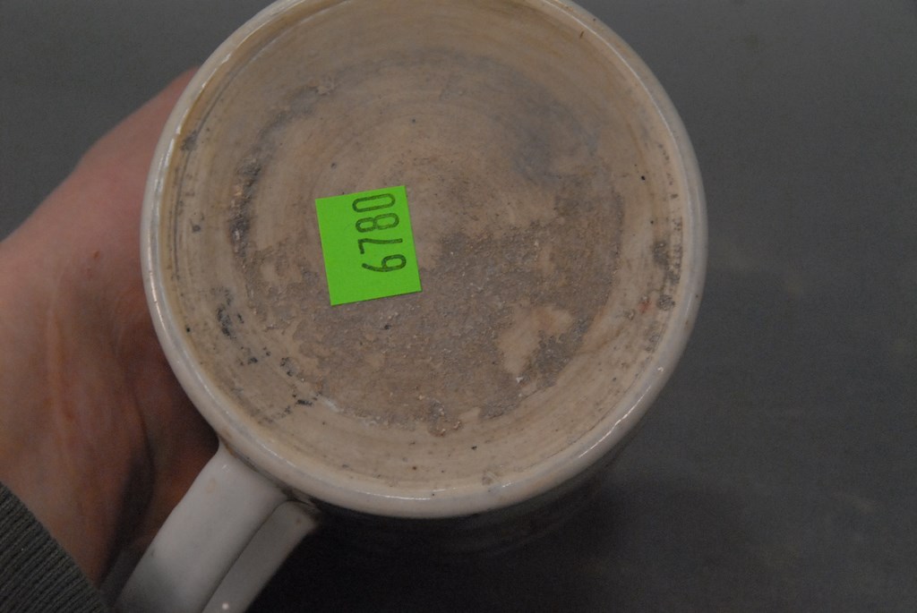 Lot 508: Chinese strap handle mug with intricately painted exterior view with twelve figures in lush landscape surroundings, mug having polyc…
