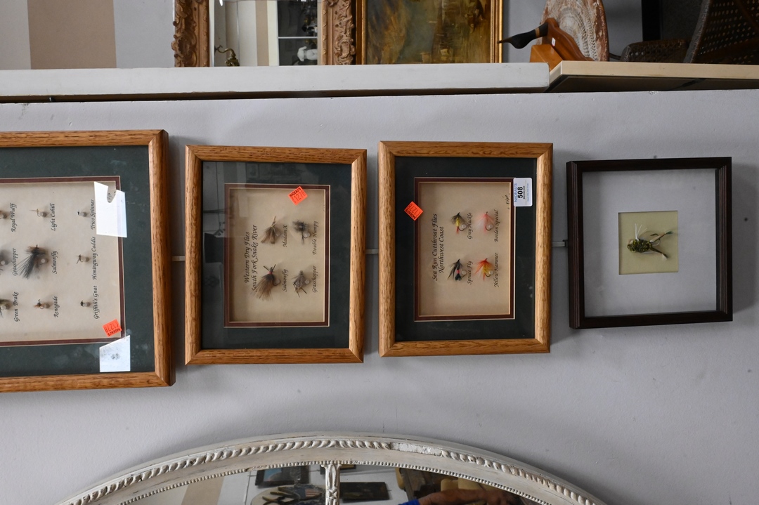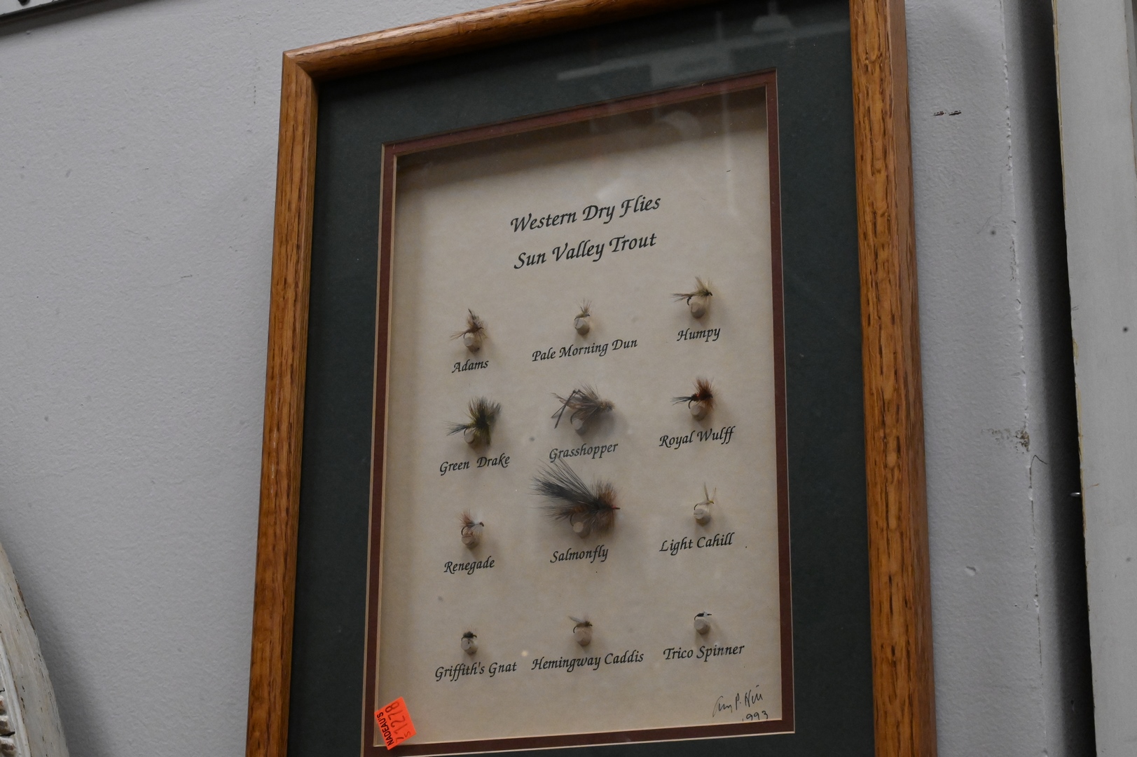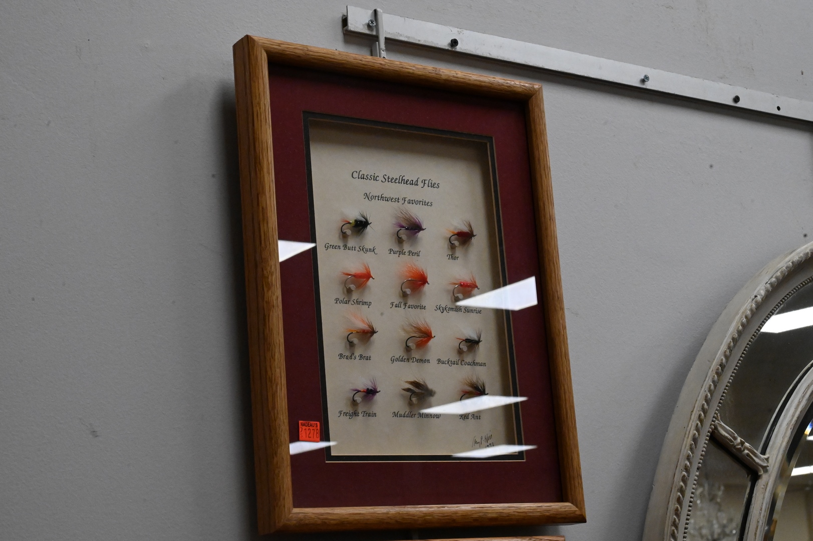 Eight Framed Flies, of various patterns. Provenance: Estate of Peter Tillou, Litchfield, Connecticut.
