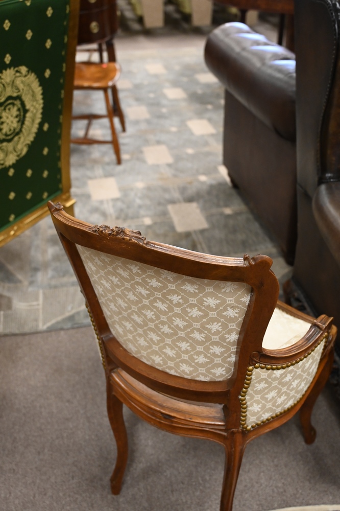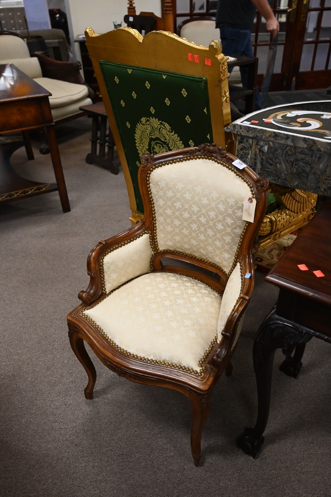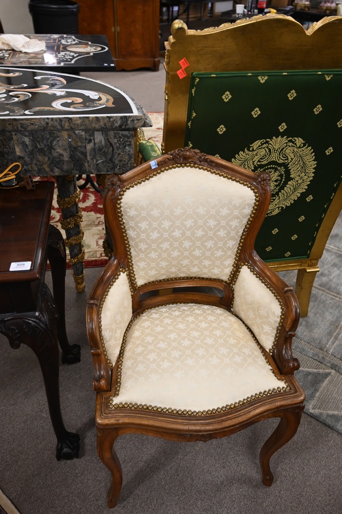 Lot 508: Pair of Diminutive/Children’s Louis XV Style Armchairs, having new upholstery, height 34 inches.