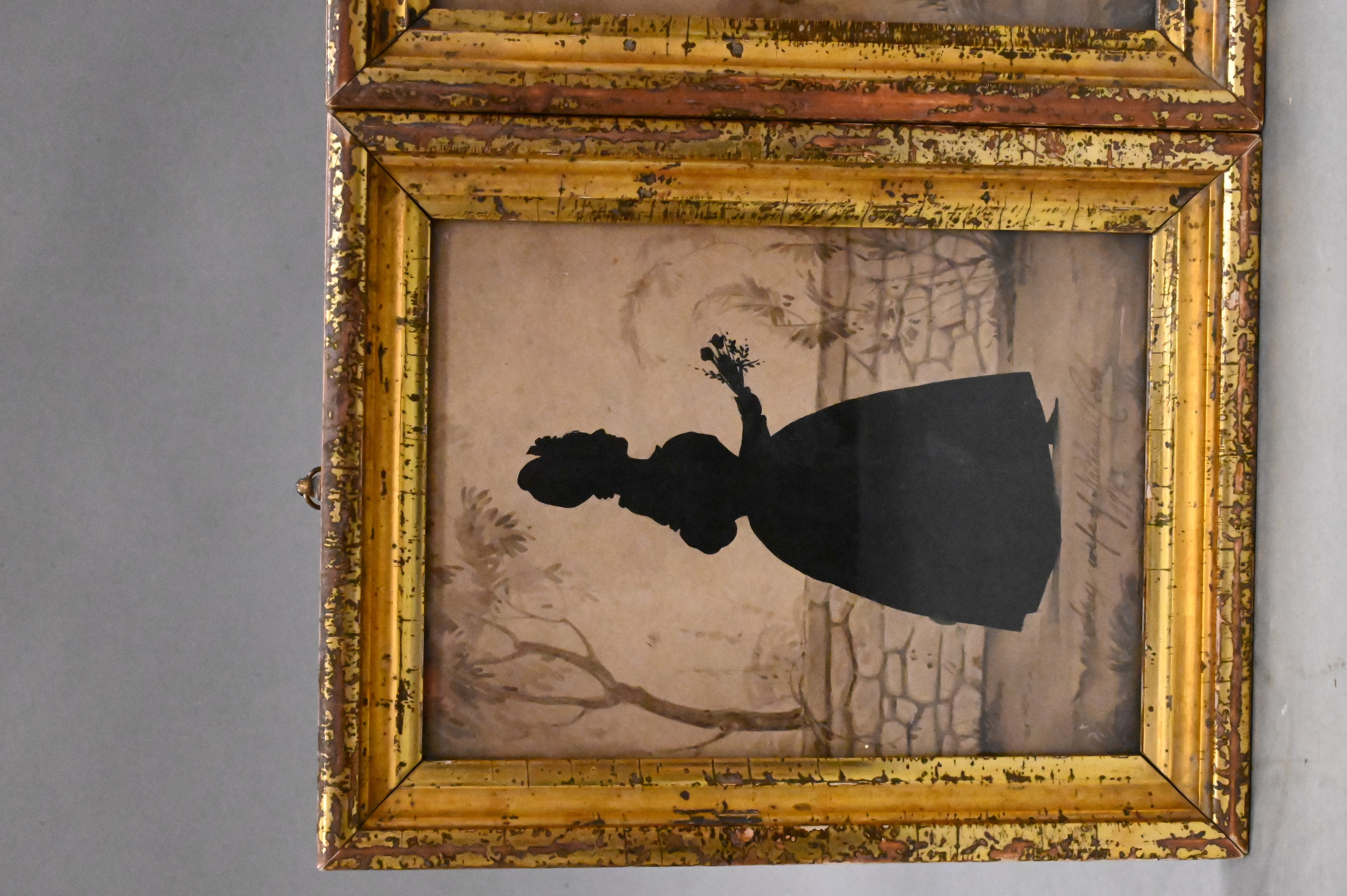 Lot 508: Pair of Watercolor and Silhouettes of Nathaniel Cook and Wife