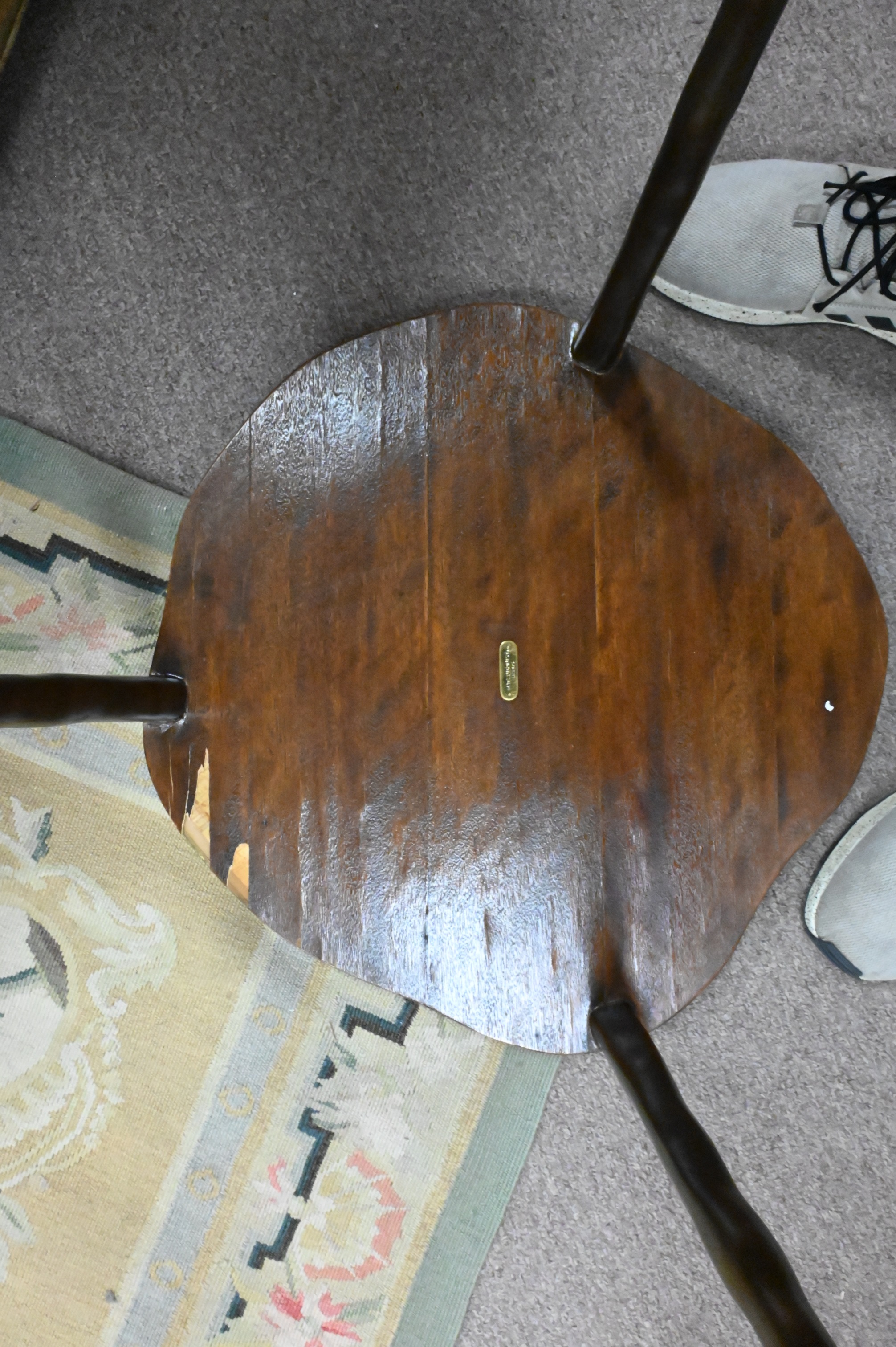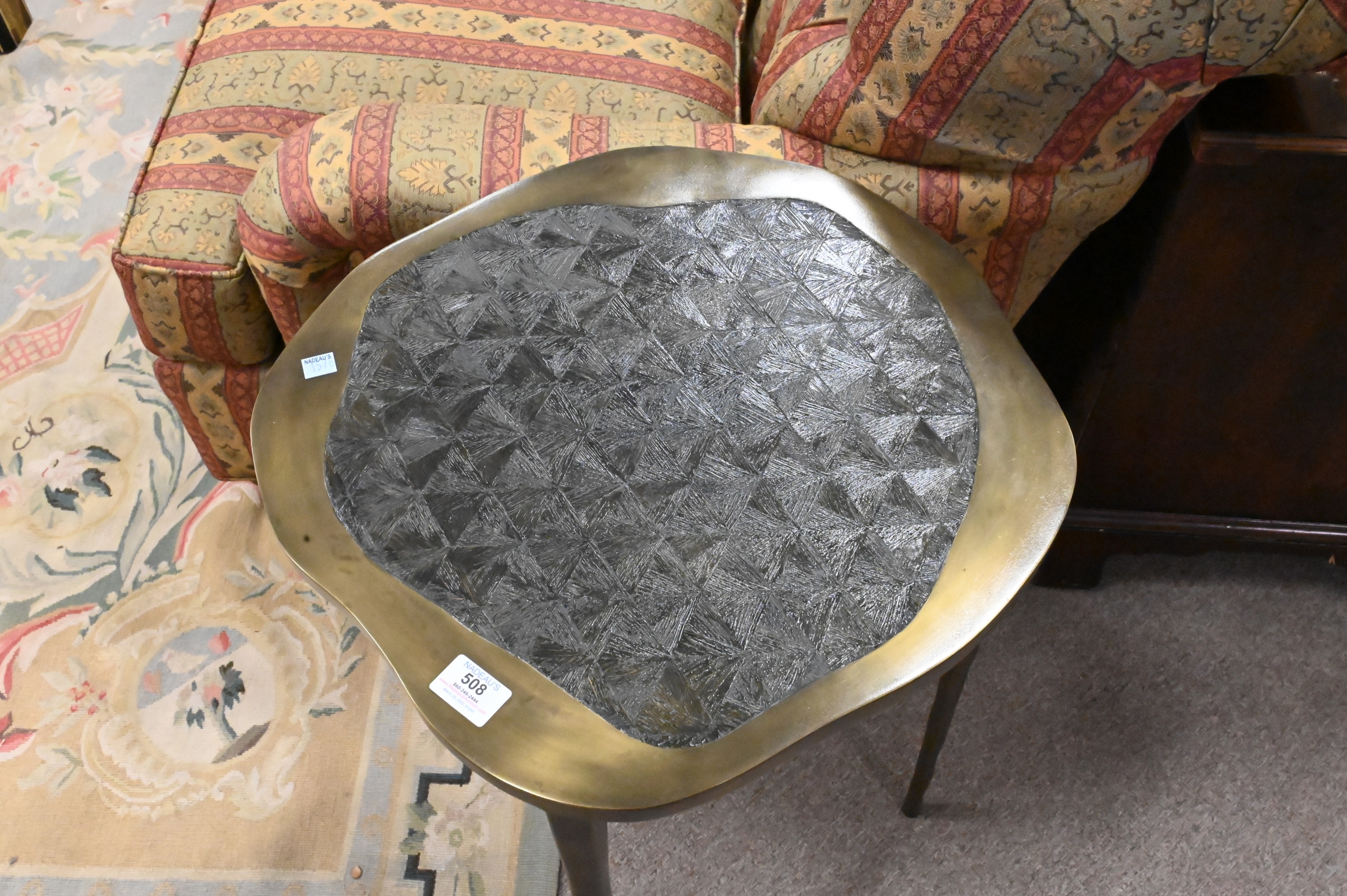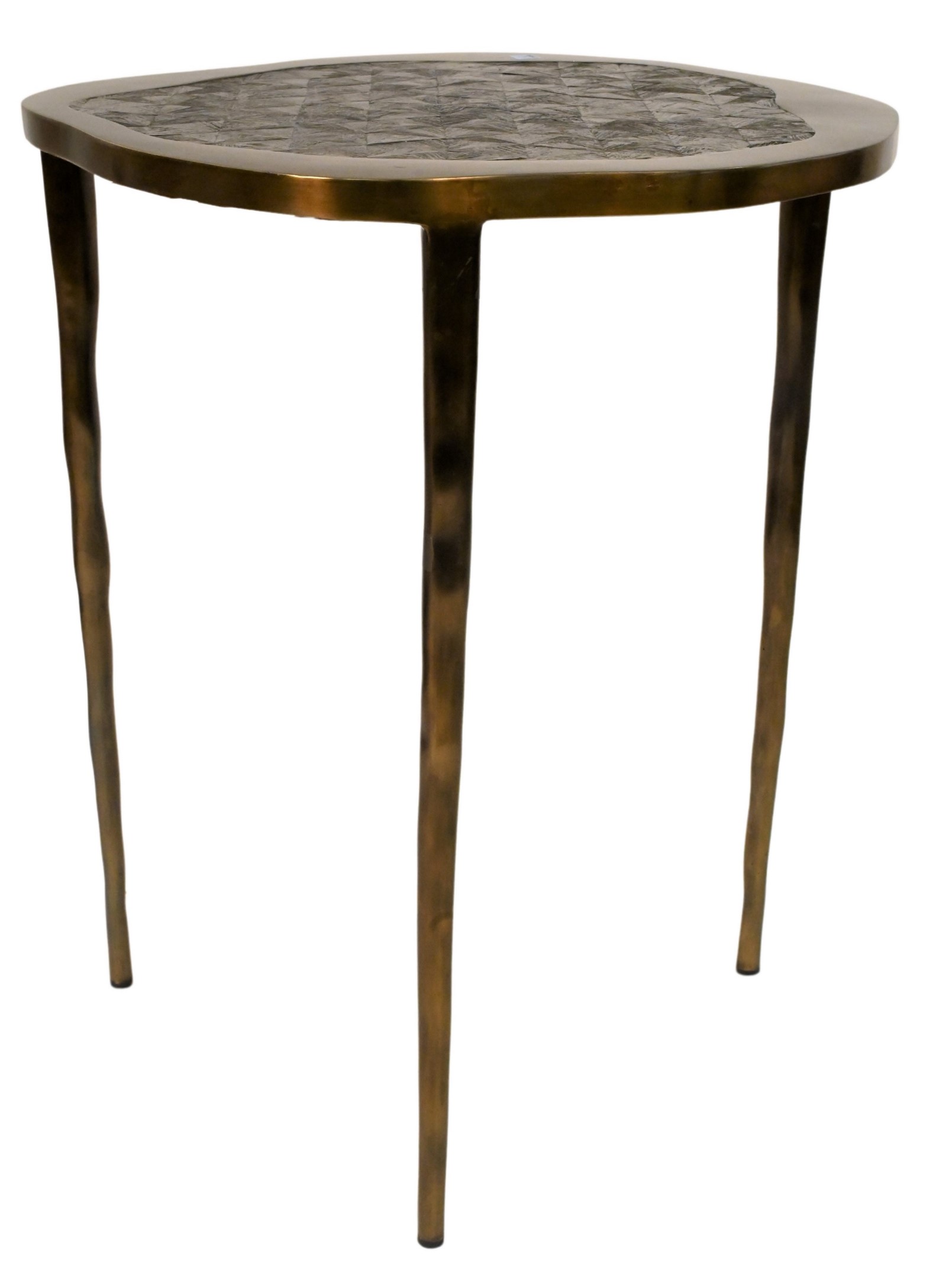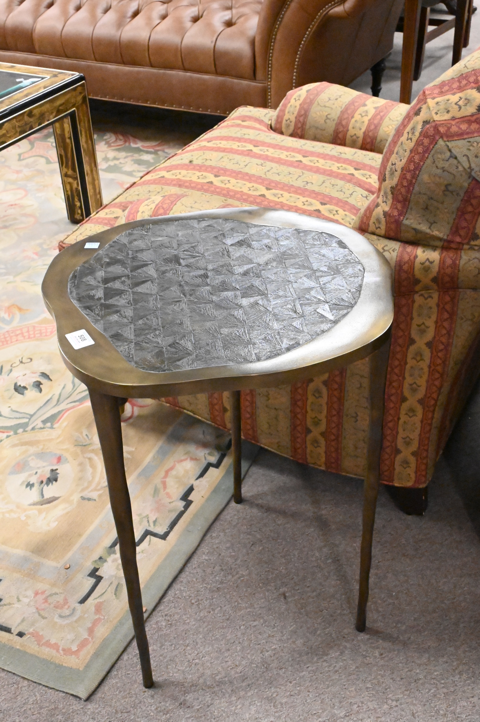 R & Y Augousti “Melting” Shagreen Side Table, in bronze patina brass body, lacquered shagreen top, R & Y Augousti tag on underside, height 23 inches, diameter 19 inches.