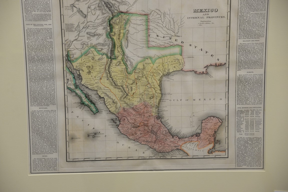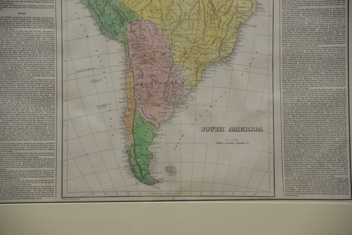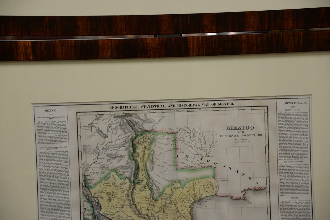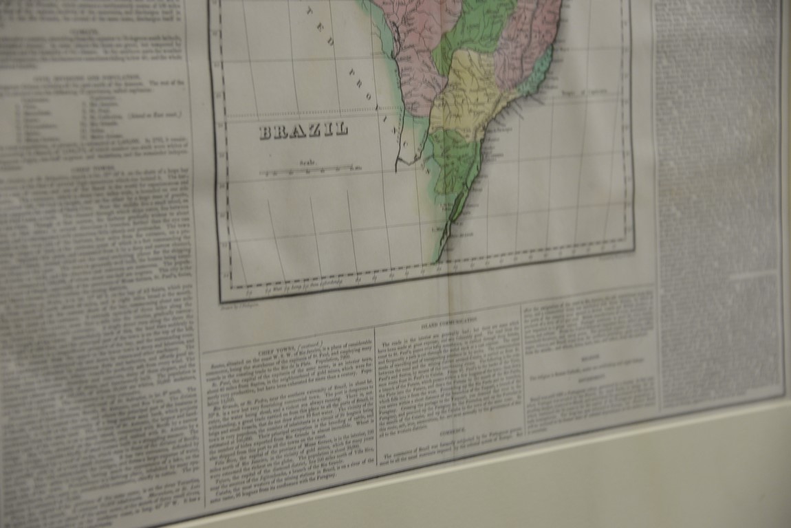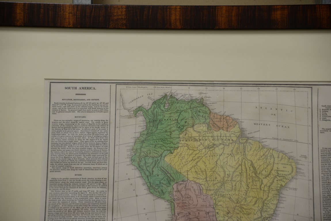 Set of three maps Geographical, Statistical, and Historical Maps of Mexico, Brazil, and South America Plate #’s 38, 48, & 46 hand colored copper engravings having information text in borders engraved by James H. Young and George Delleker Framed by W. Graham Arader III sight size: 17 x 21 1/4 Provenance: Property from Credit Suisse’s Americana Collection