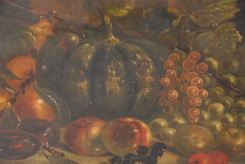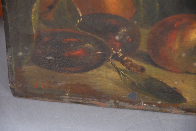 STILL LIFE OF FRUIT oil on metal signed lower left Champion 9 3/8 x 12