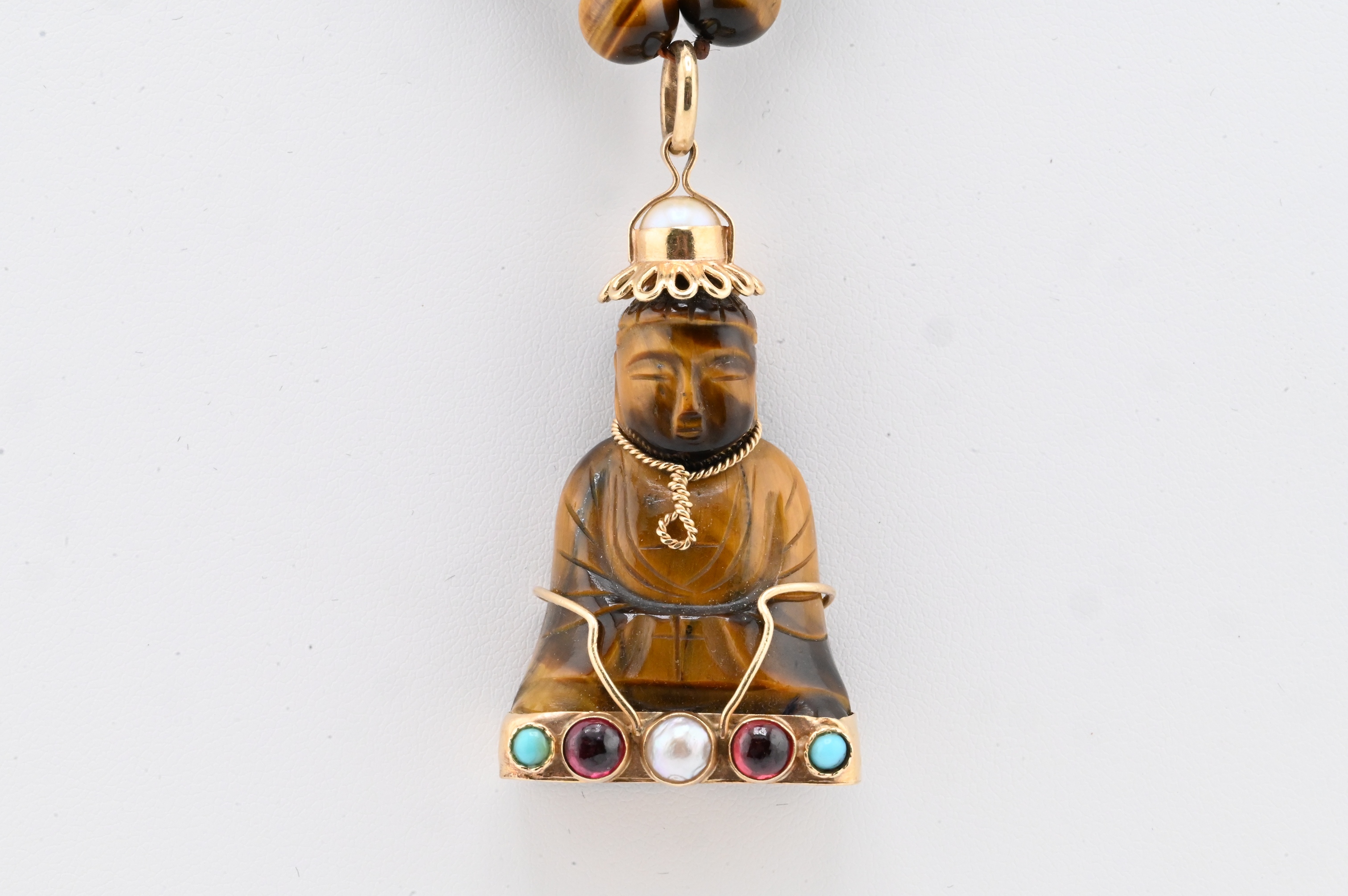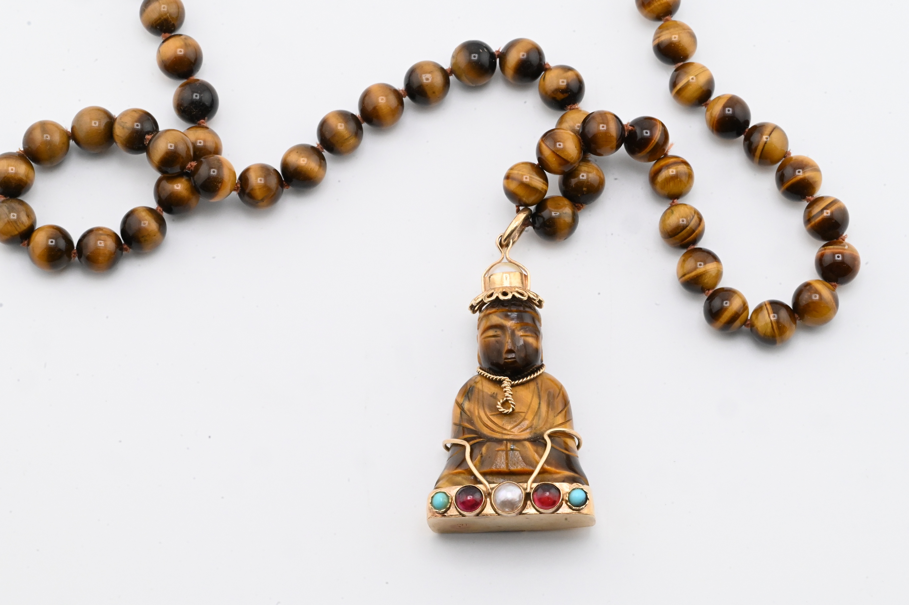 Lot 508: Tigers Eye Buddha and Bead Necklace