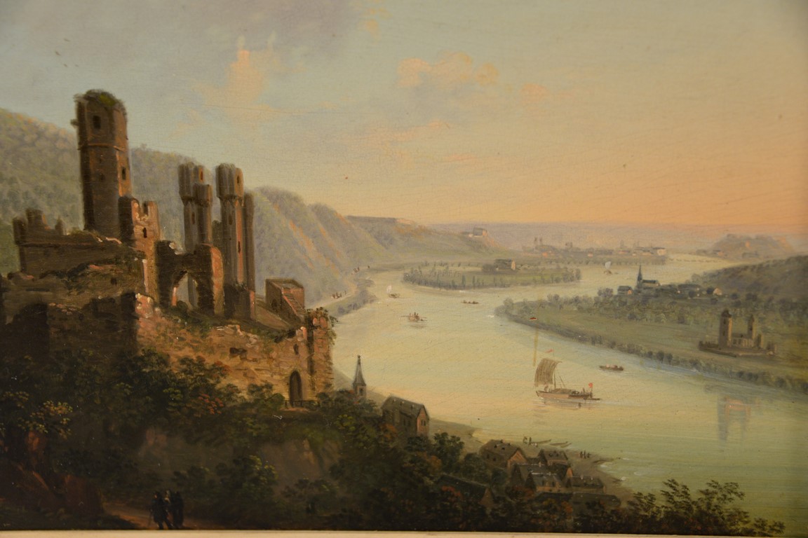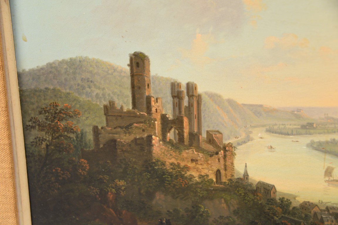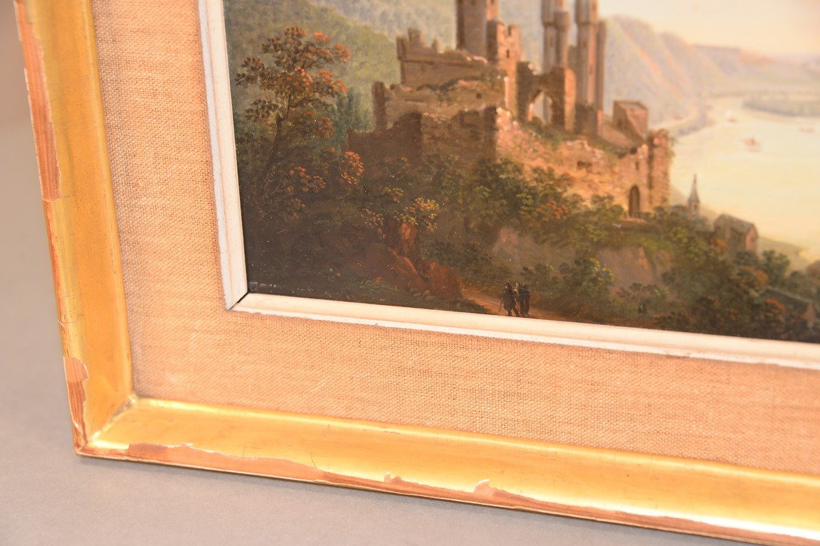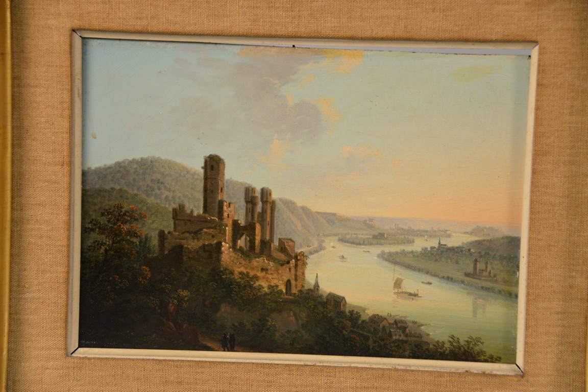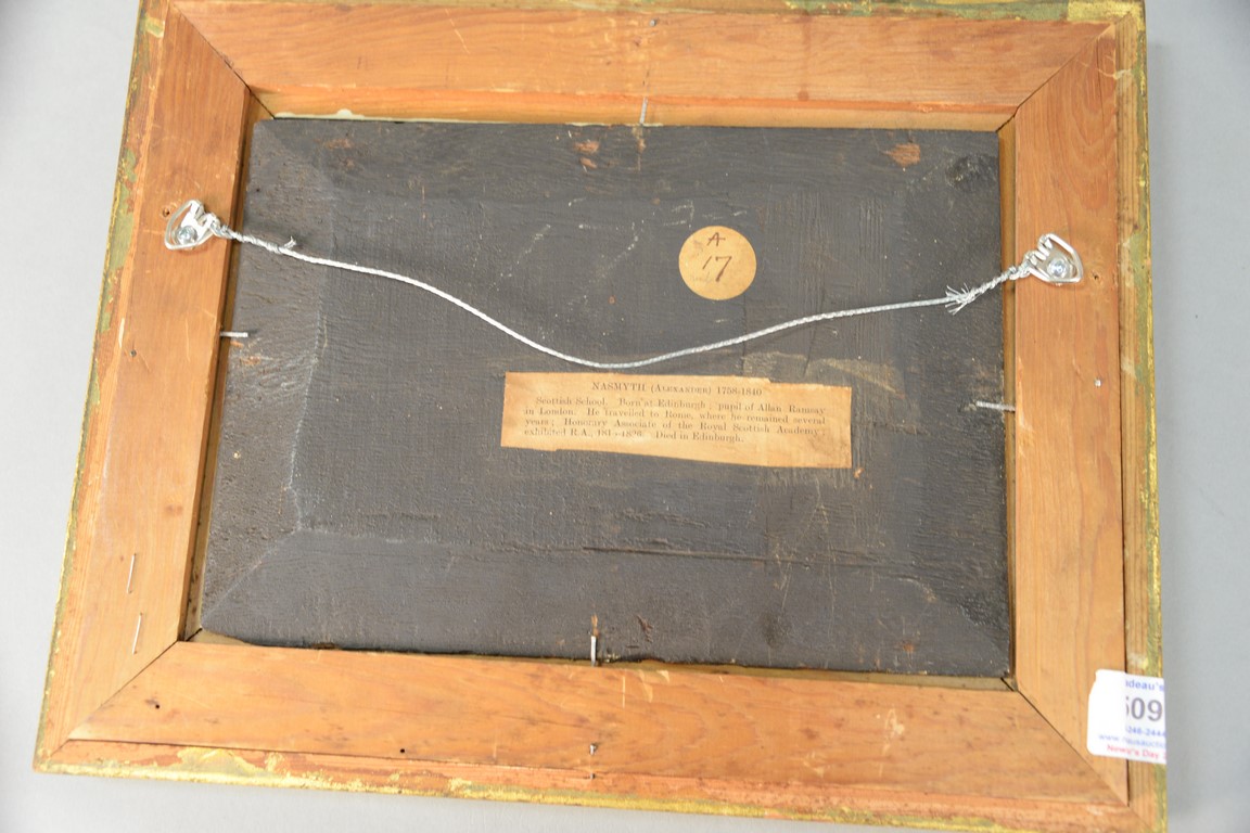 Attributed to Alexander Nasmyth 1758-1840 oil on board Castle on River Valley 7 1/4 x 10 1/4