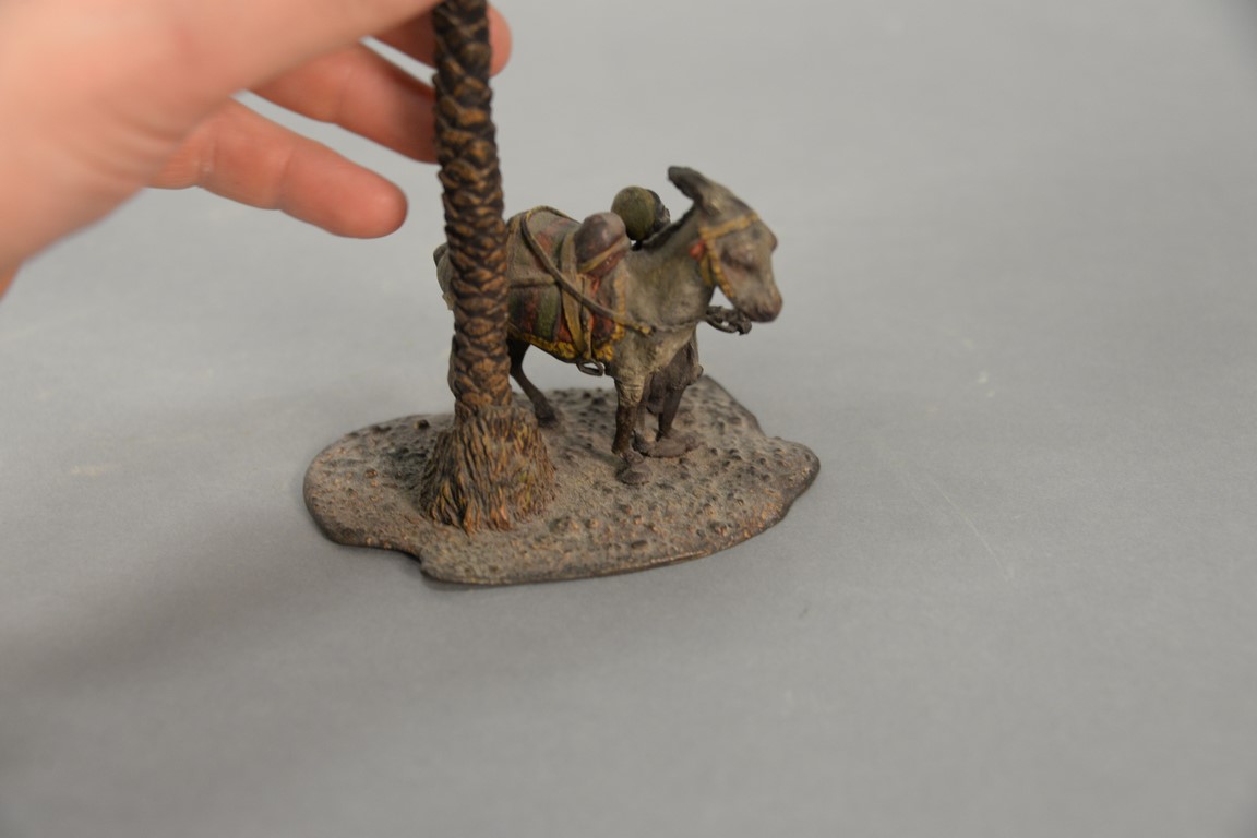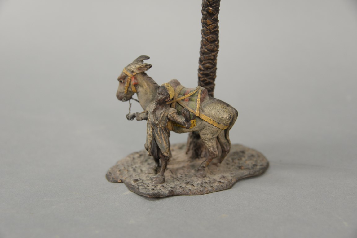 Lot 509: Geschutzt bronze palm tree with cold painted boy and donkey. two branches disconnected, but available height 12 inches