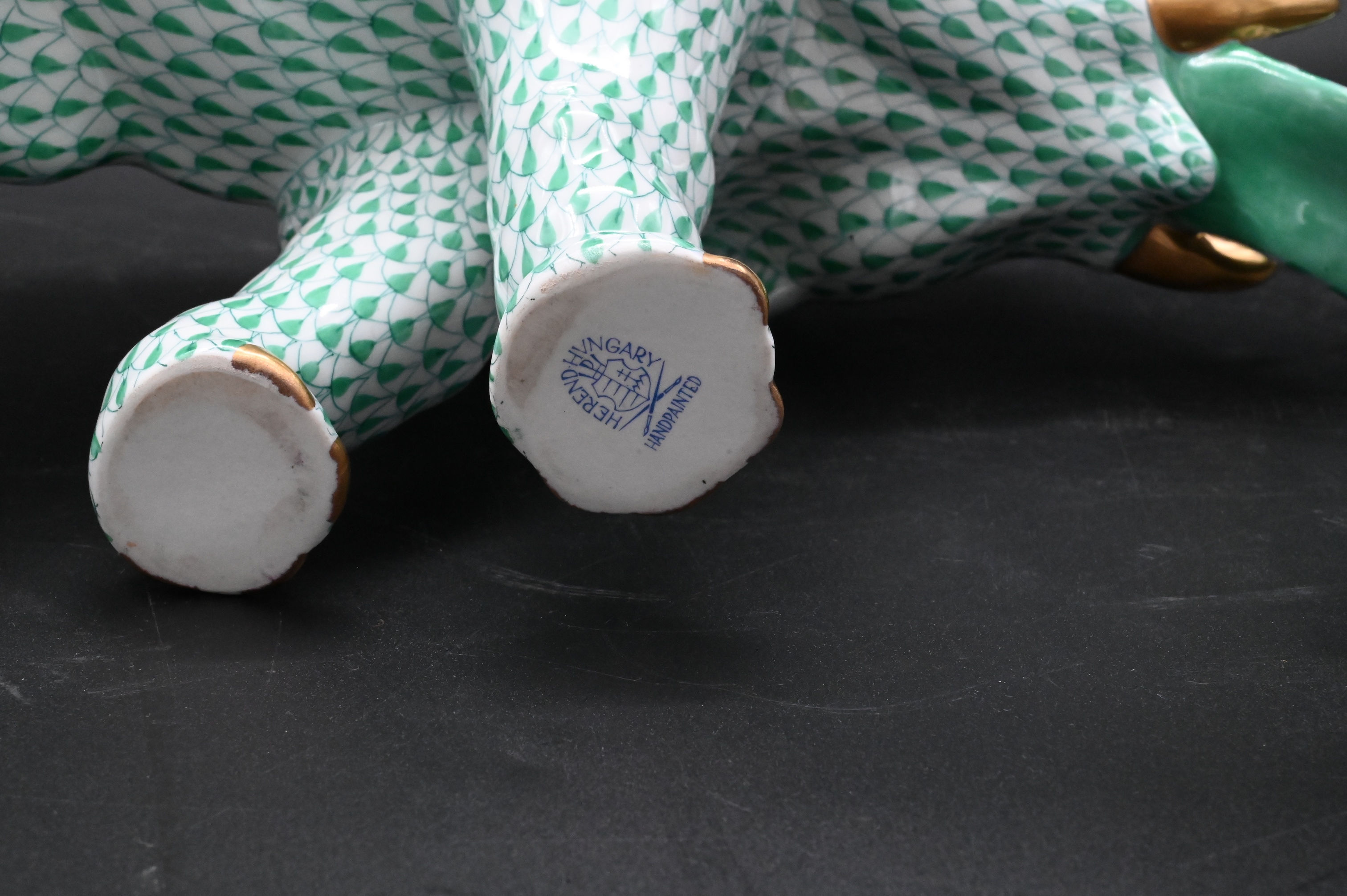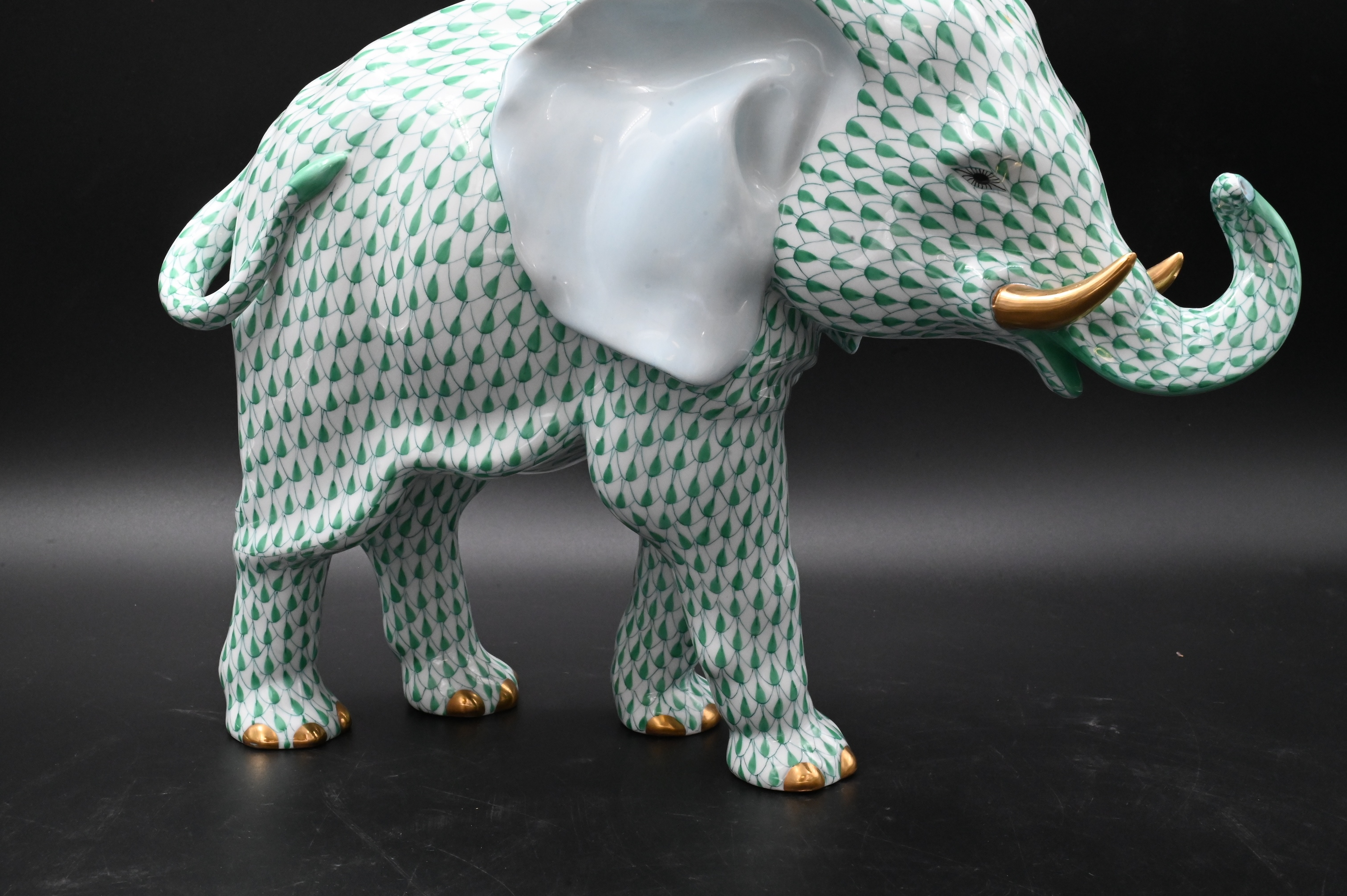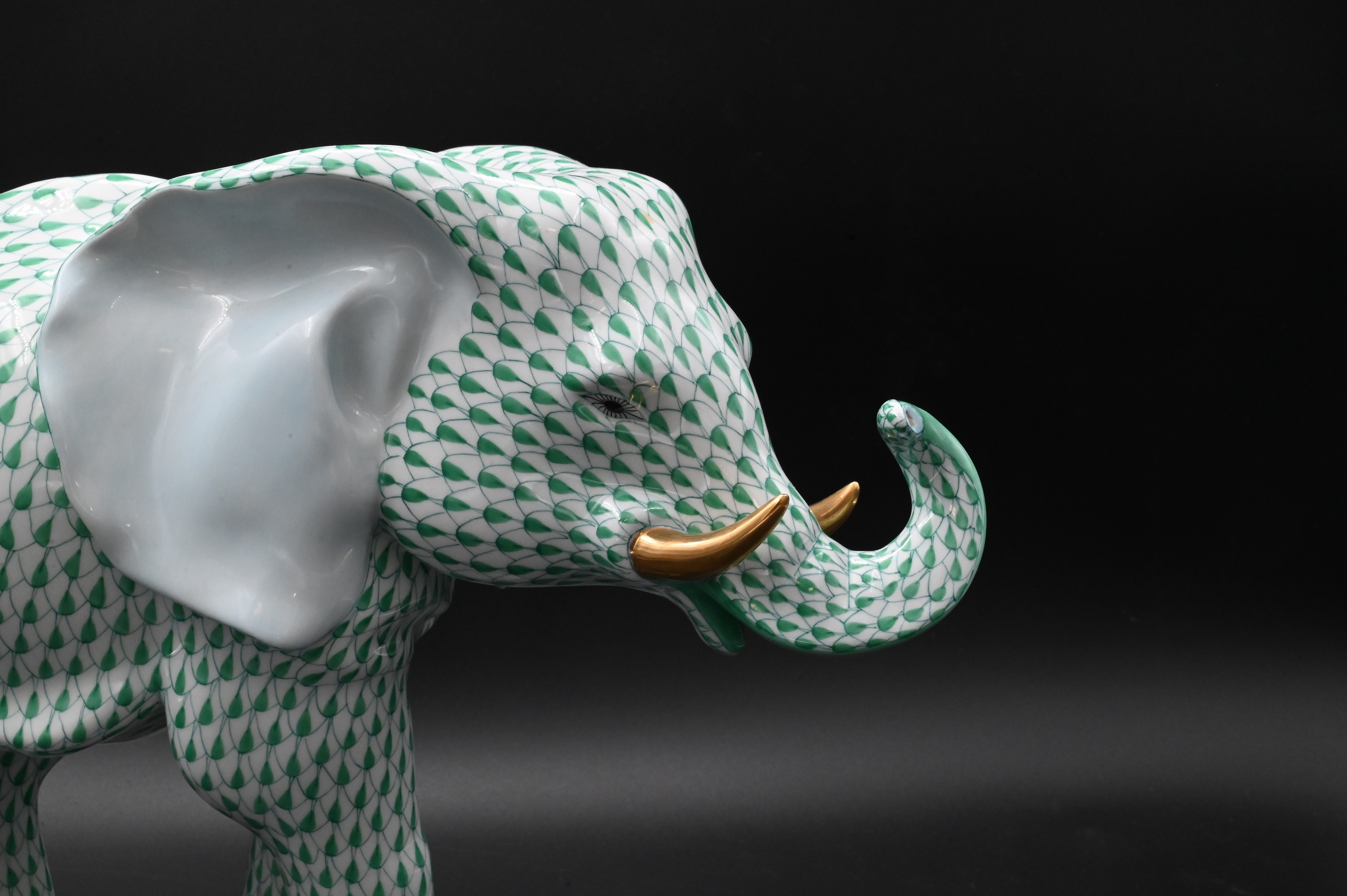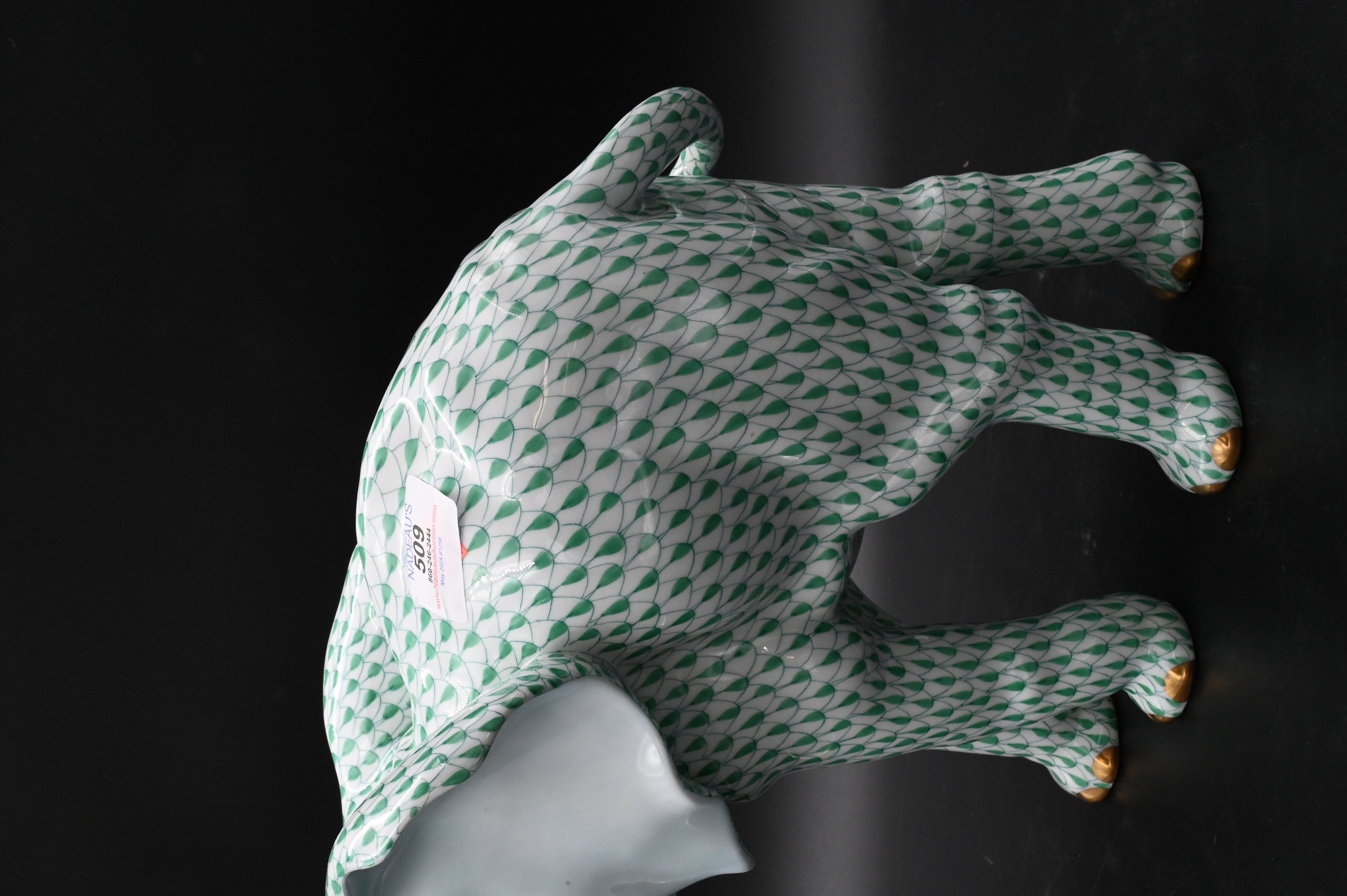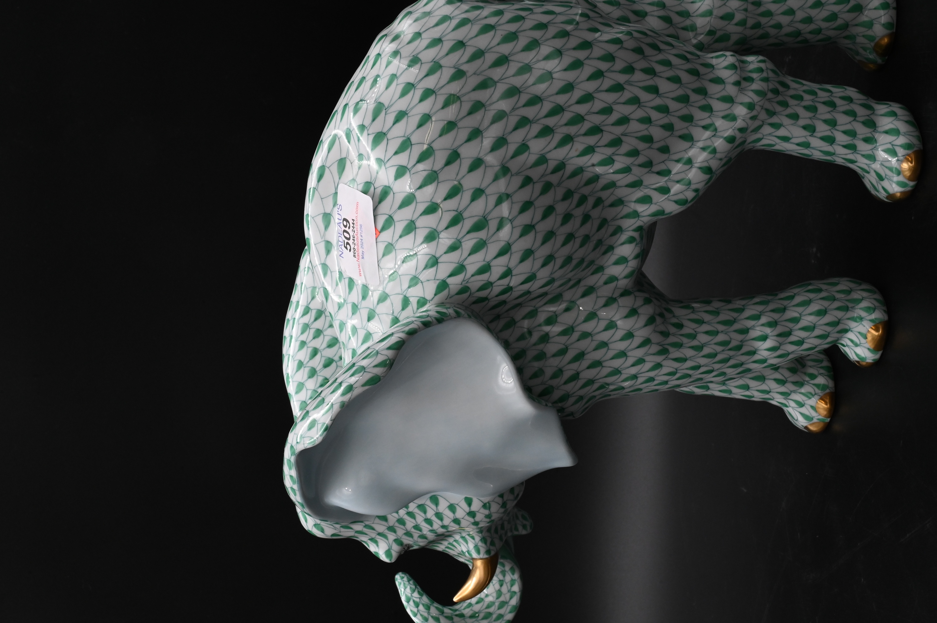 decorated with green fishnet design and upturned trunk, marked on foot, model # 5214