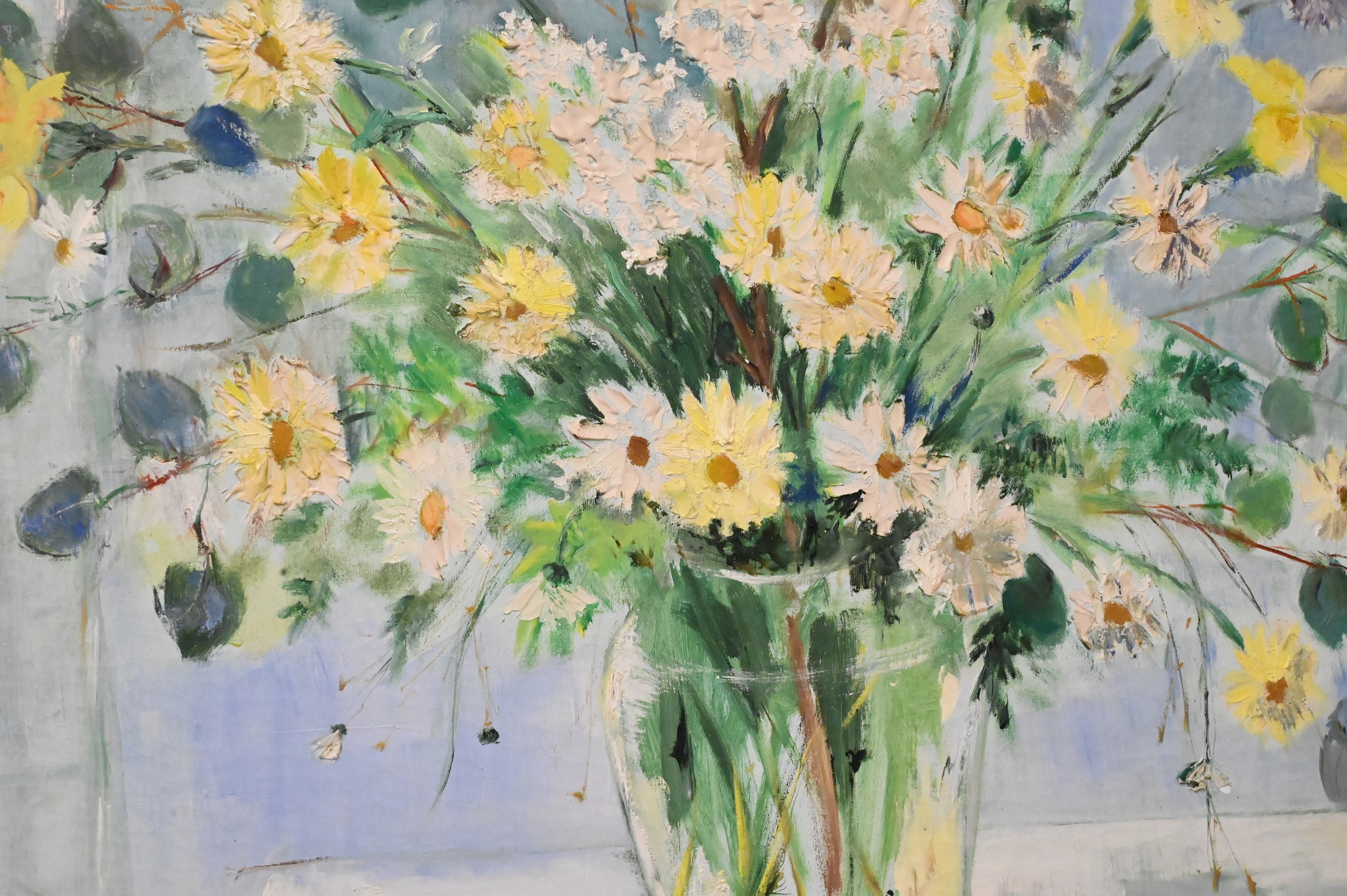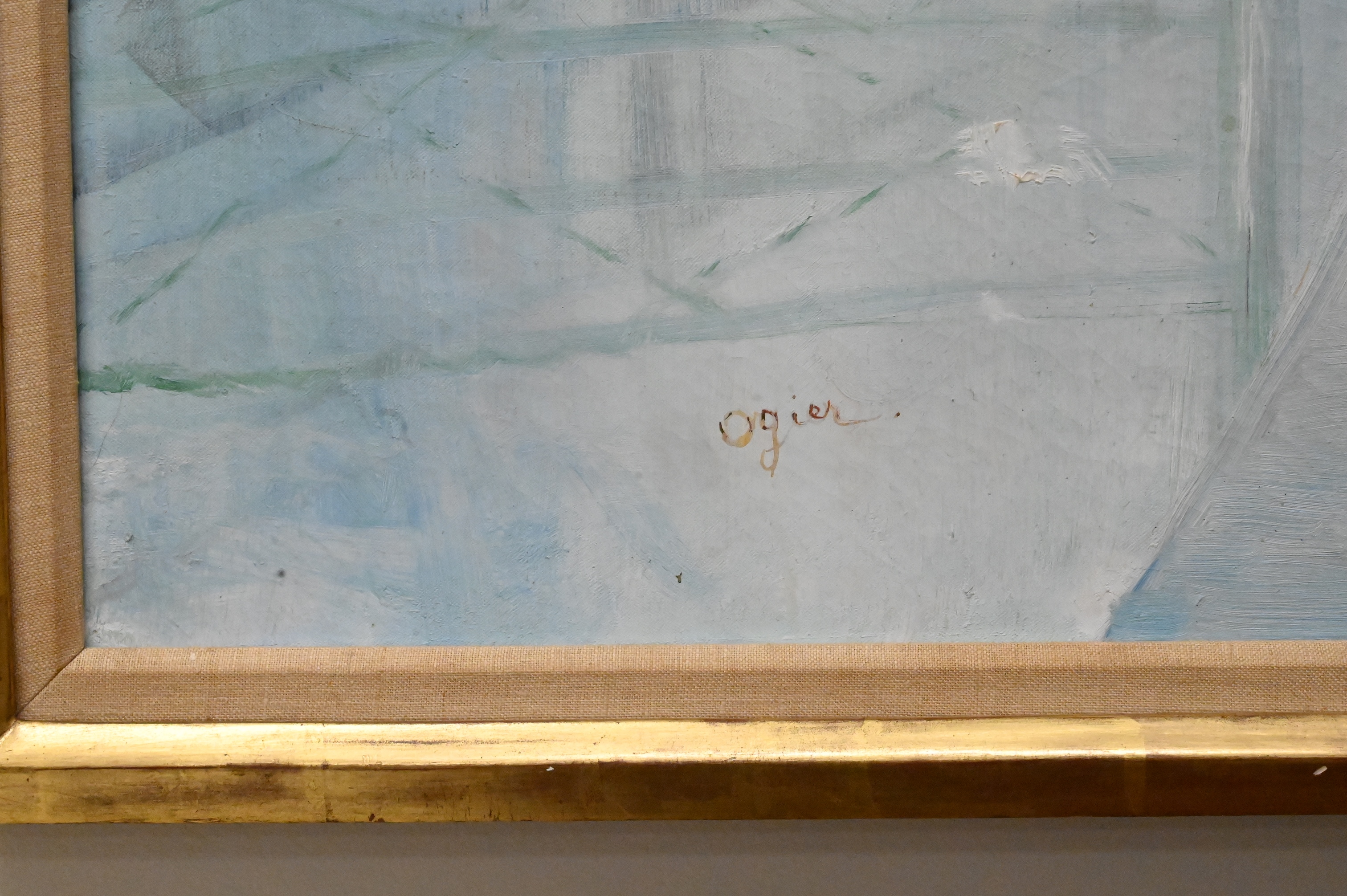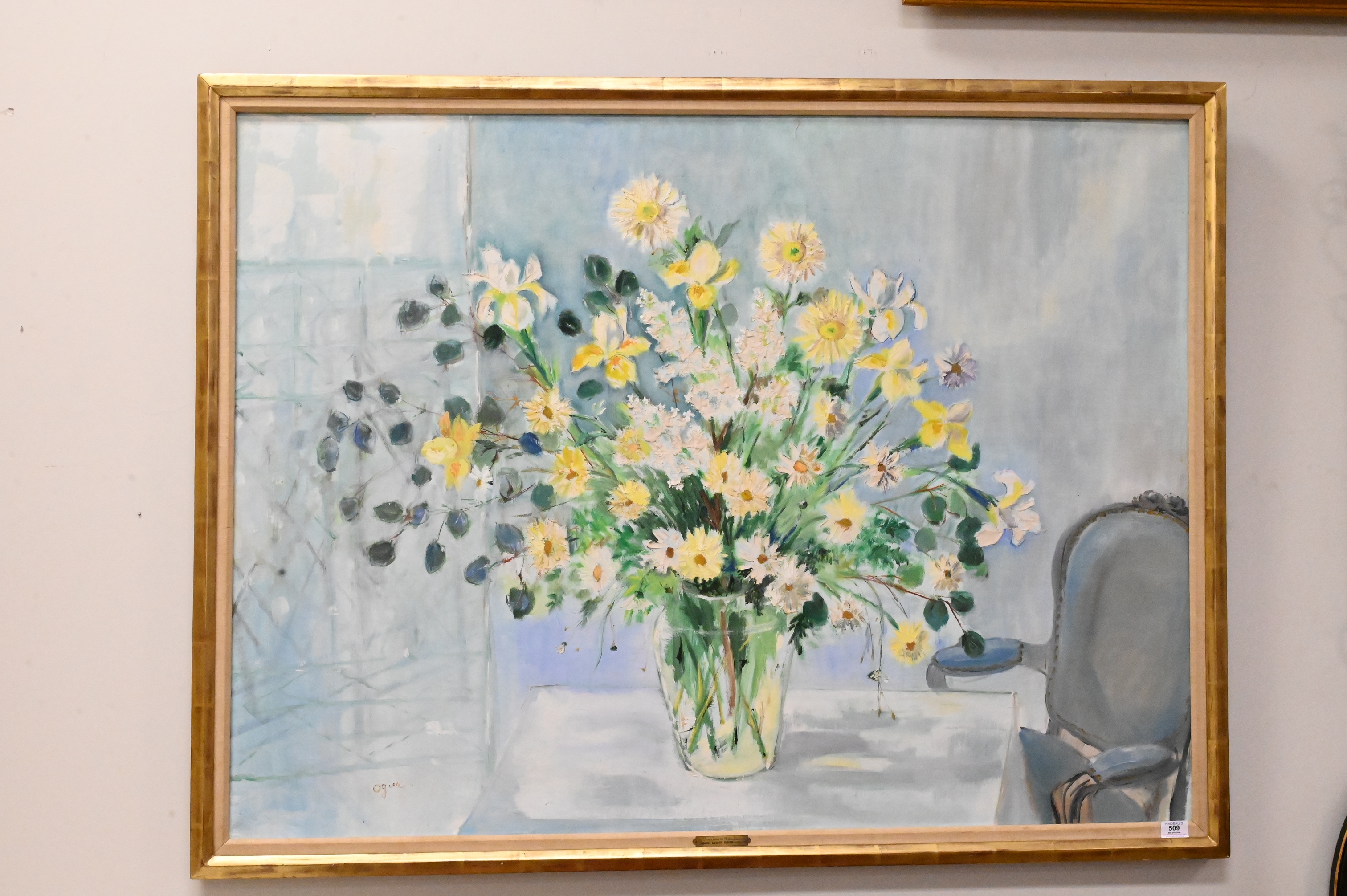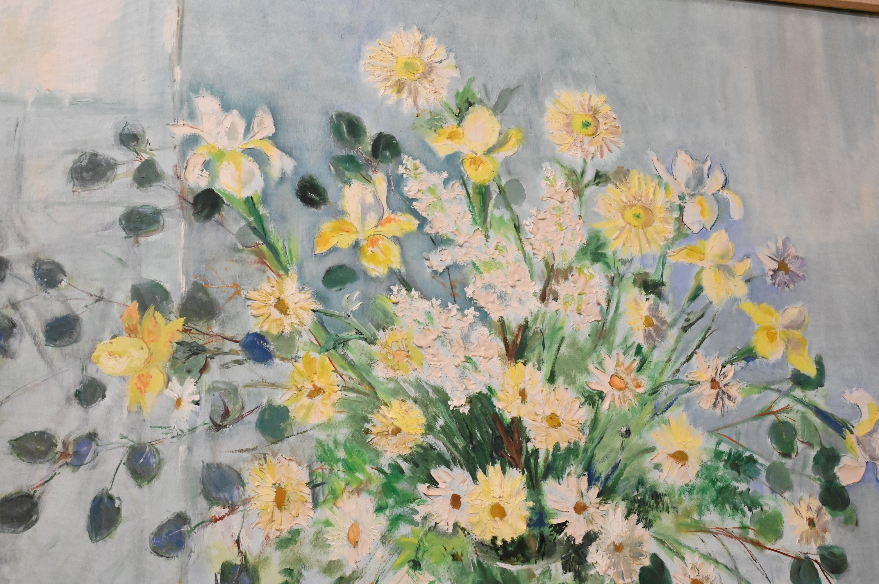 Marie Louise Ogier (b. 1912), oil on canvas, still life of flowers in a vase, signed Ogier lower left, 40″ x 52″.