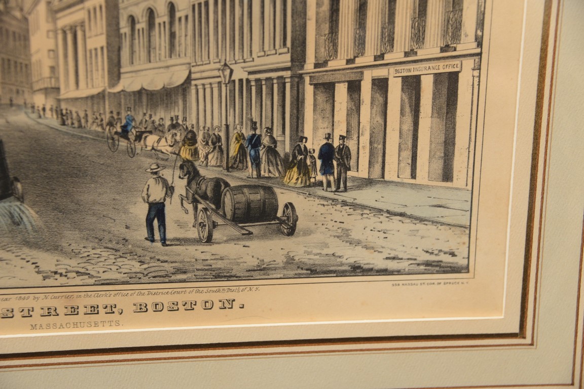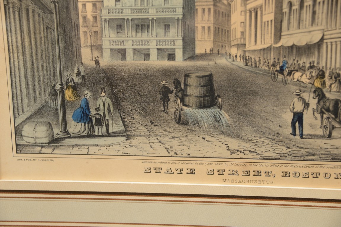 Lot 509: Nathaniel Currier, small folio hand colored lithograph, State Street, Boston, Lith. & Pub. by N. Currier, sight size 9 1/4 x 13 1/4…
