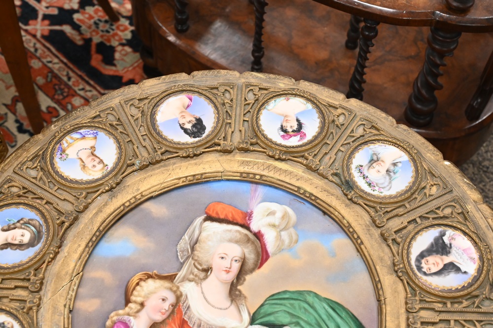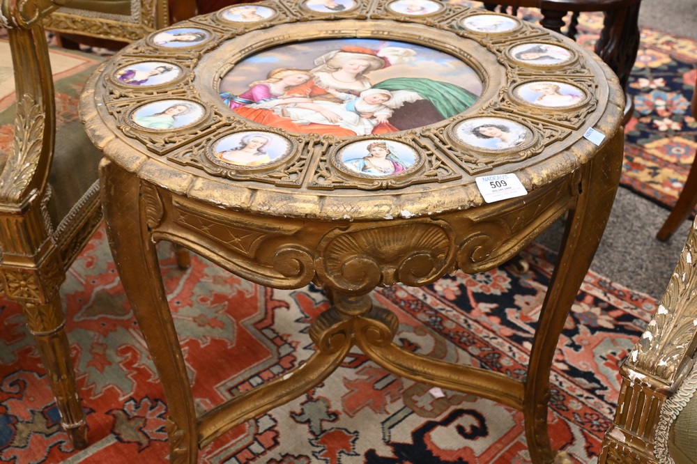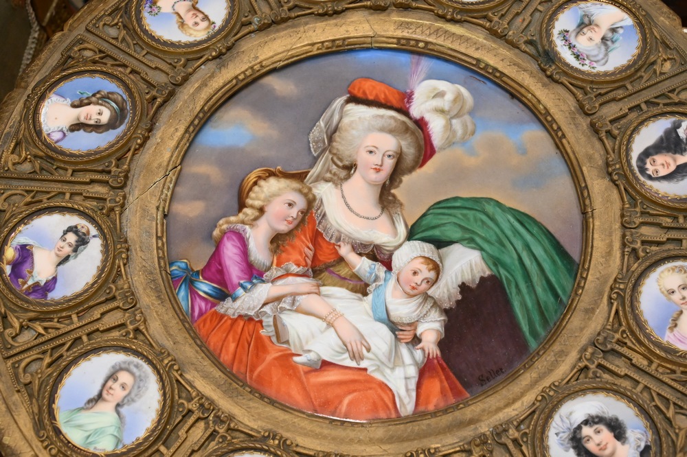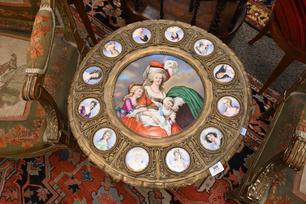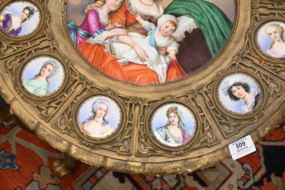 Lot 509: Royal Vienna Porcelain and Gilt Wood Table, having hand painted portraits of Marie Antoinette with her children and ladies of the co…