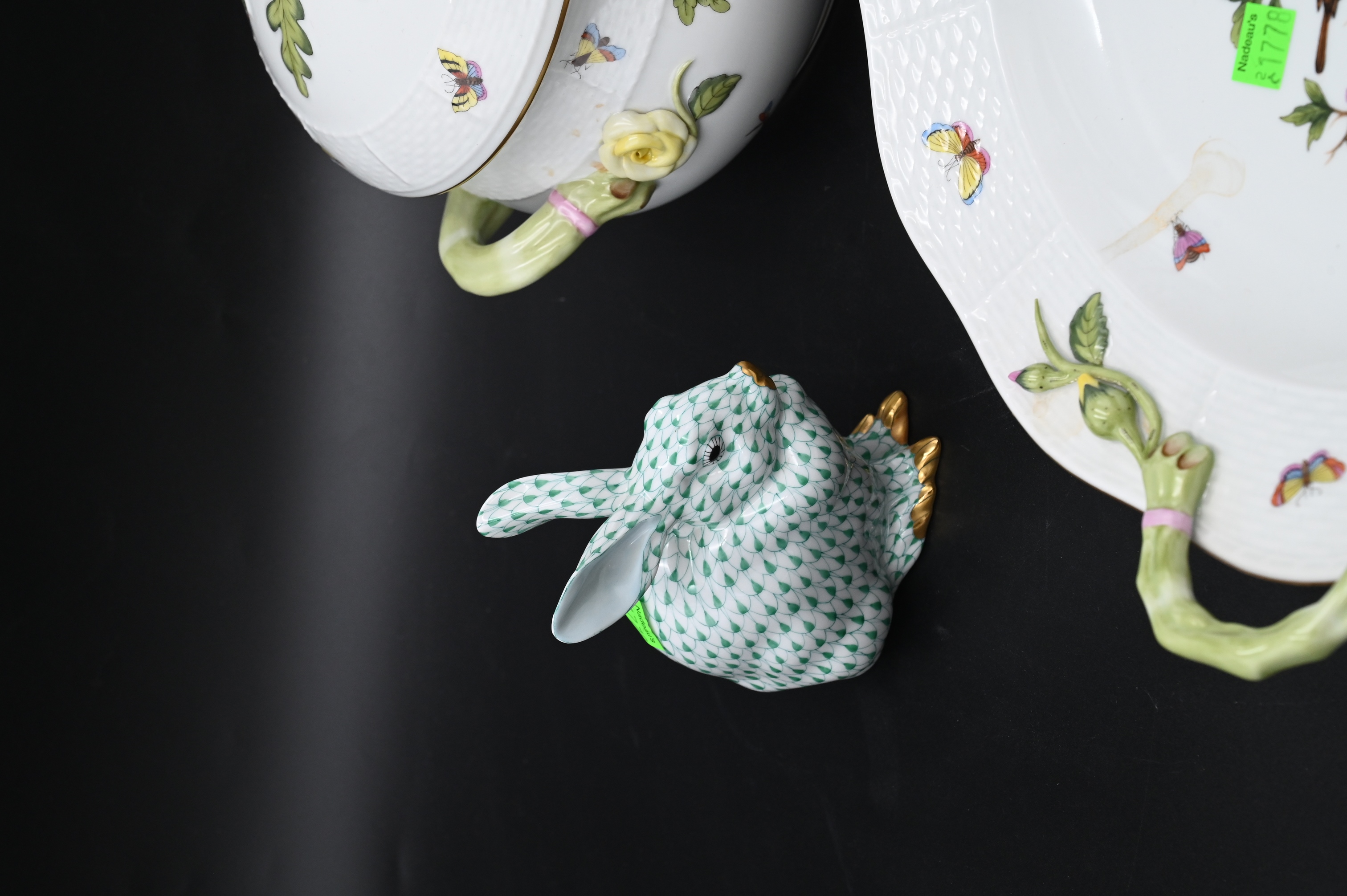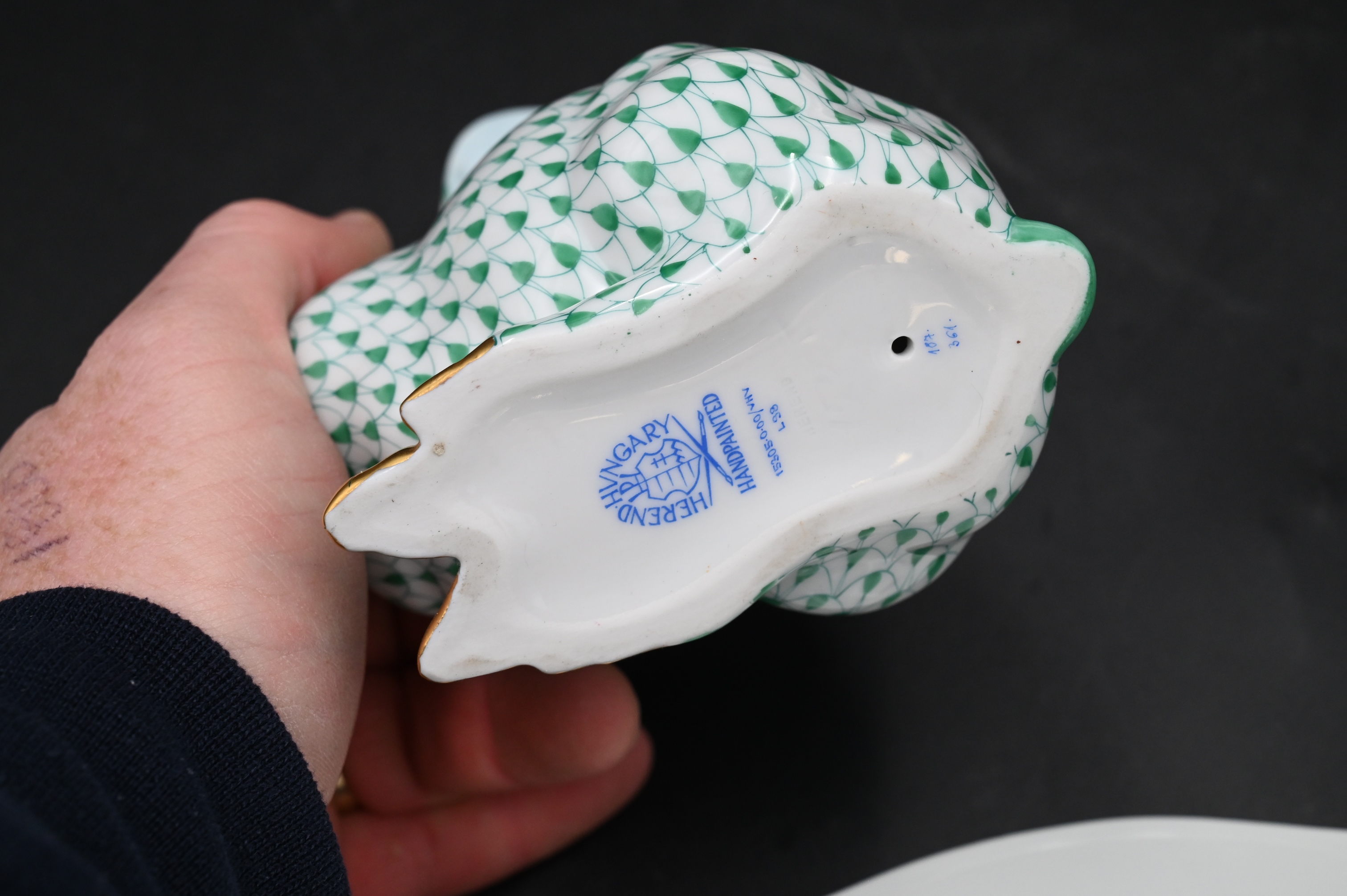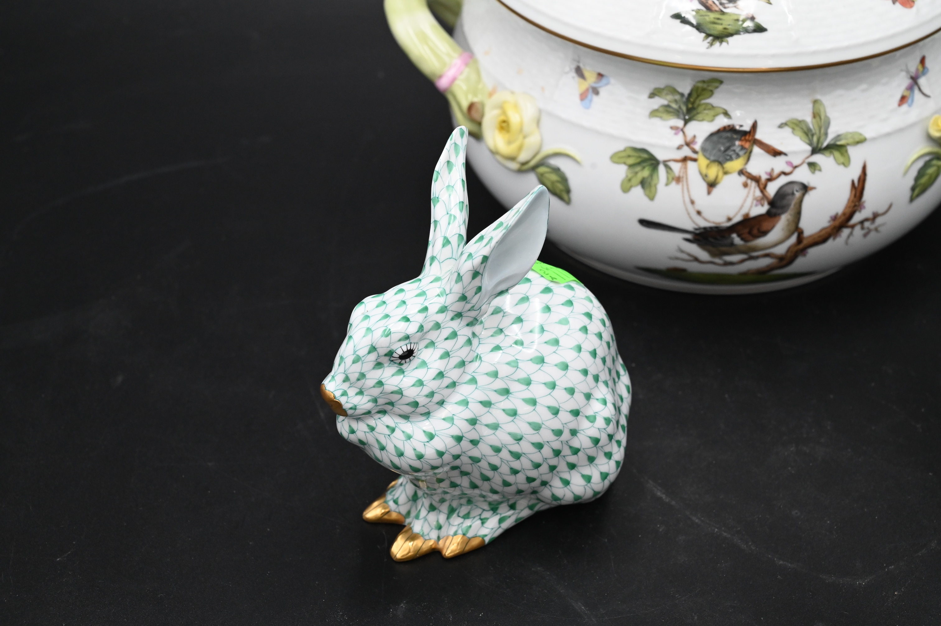 “Bunny Sitting” having green fishnet motif, height 5 inches