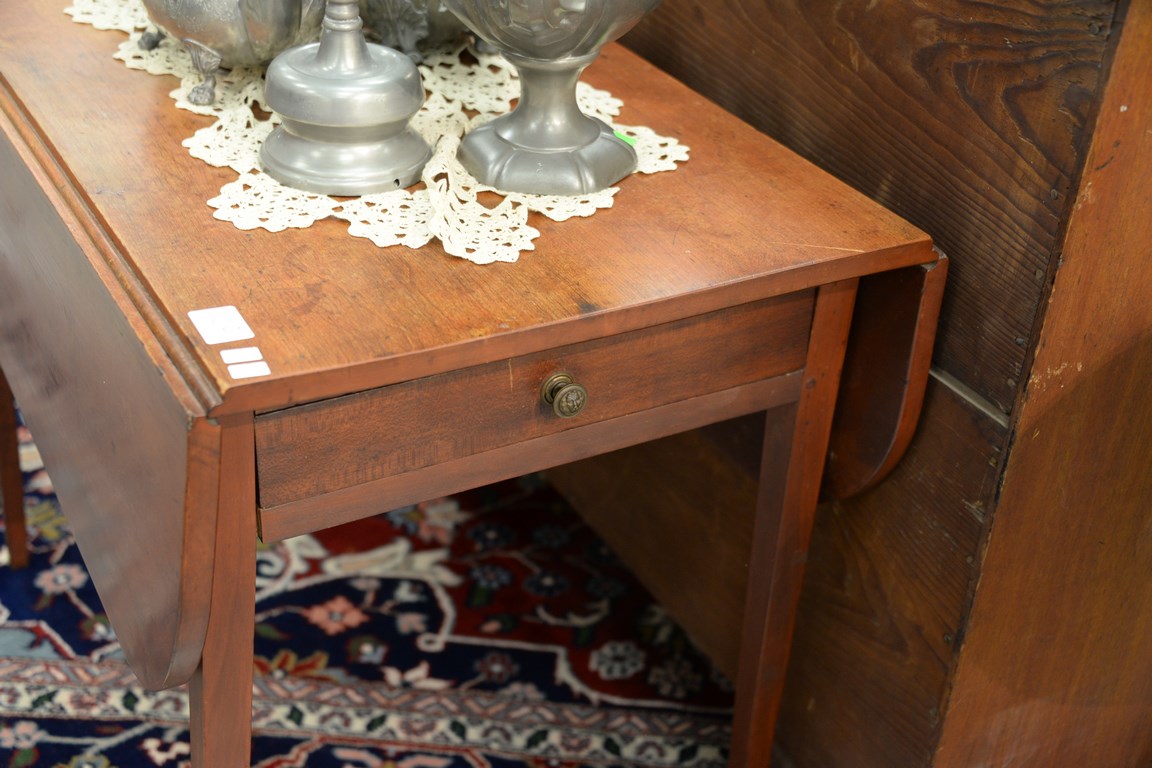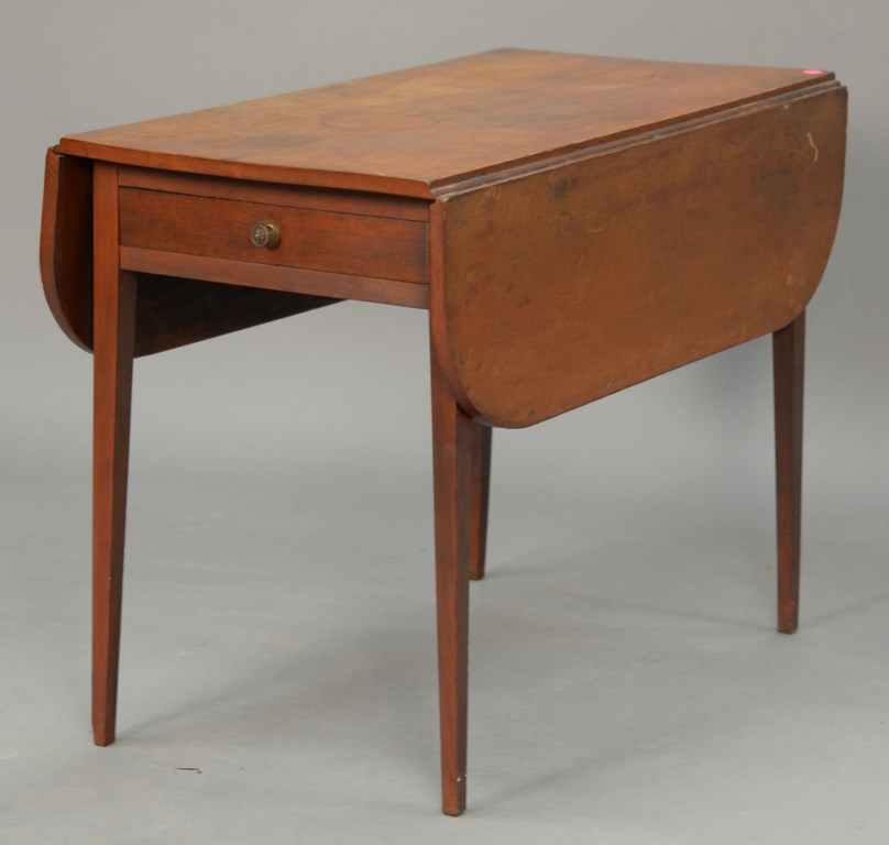 Lot 50C: Federal cherry drop leaf Pembroke table with drawer, circa 1790-1810. ht. 27 in. top: 18 x 36 opens to 39 x 36