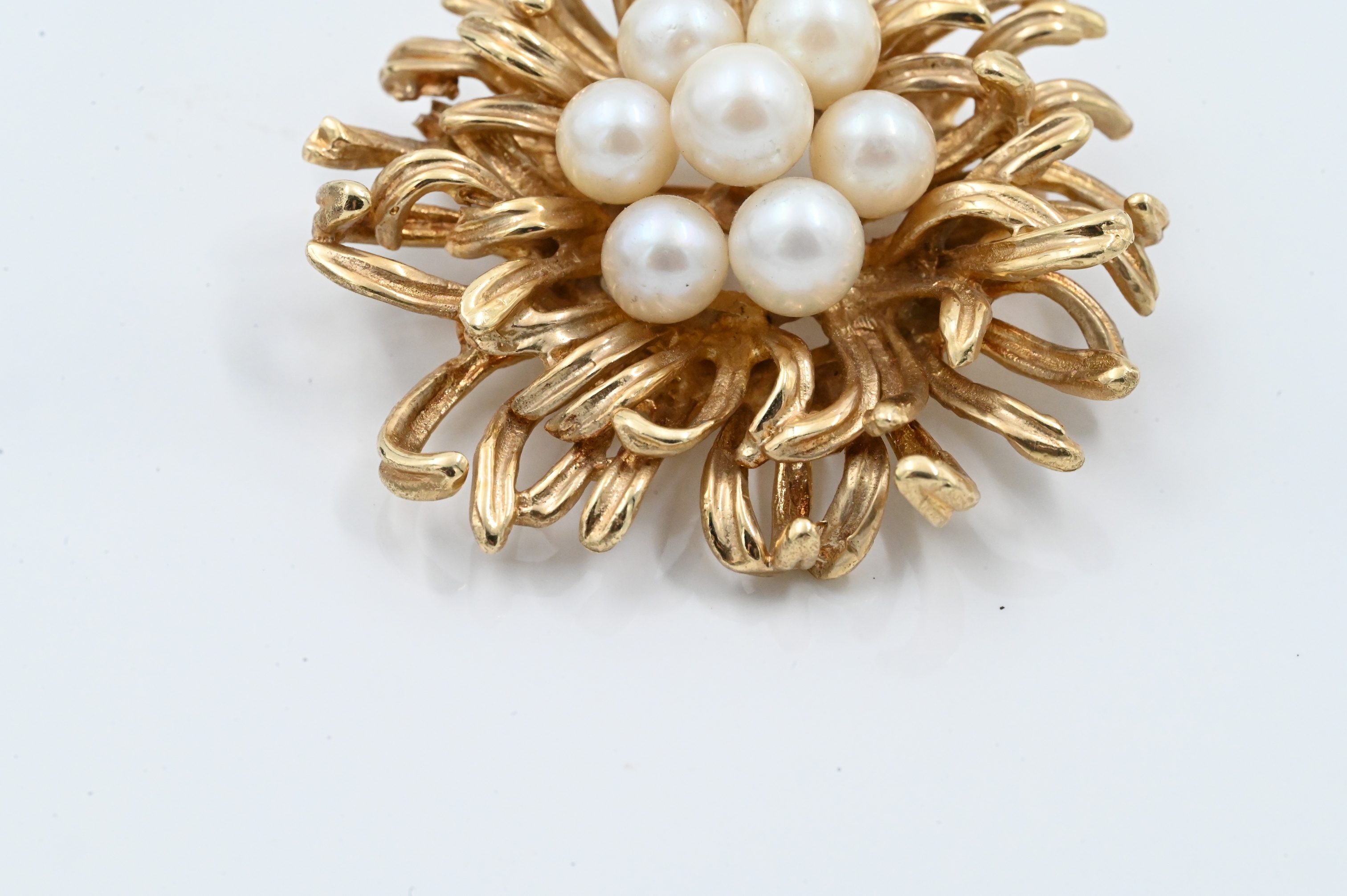 in the form of a flower with a cluster of seven pearls in the center
