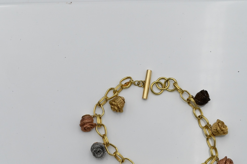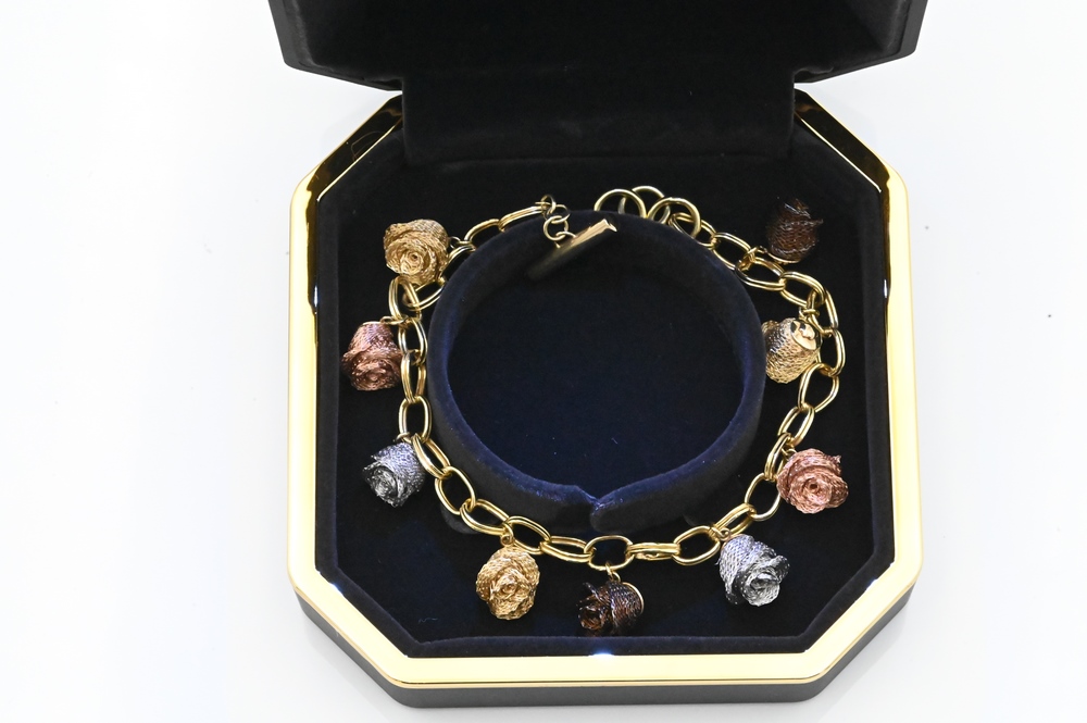 Lot 51: 18 Karat Gold Bracelet, having rose, white and yellow gold flowers, along with appraisal, length 8 1/4 inches, 22 grams.