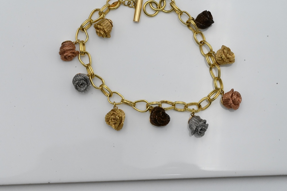 18 Karat Gold Bracelet, having rose, white and yellow gold flowers, along with appraisal, length 8 1/4 inches, 22 grams.