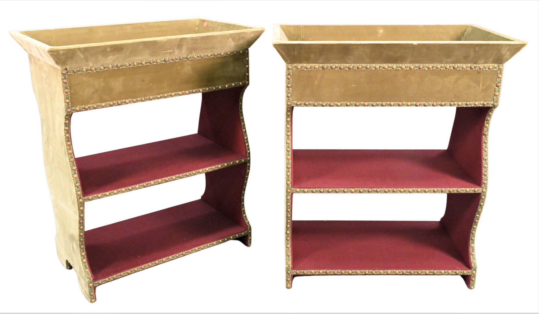 Lot 51: A Pair of Green Velvet Covered Etageres