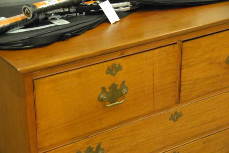 Chippendale chest two over three drawers on bracket base, ht. 40 in. wd. 40 1/2 in.