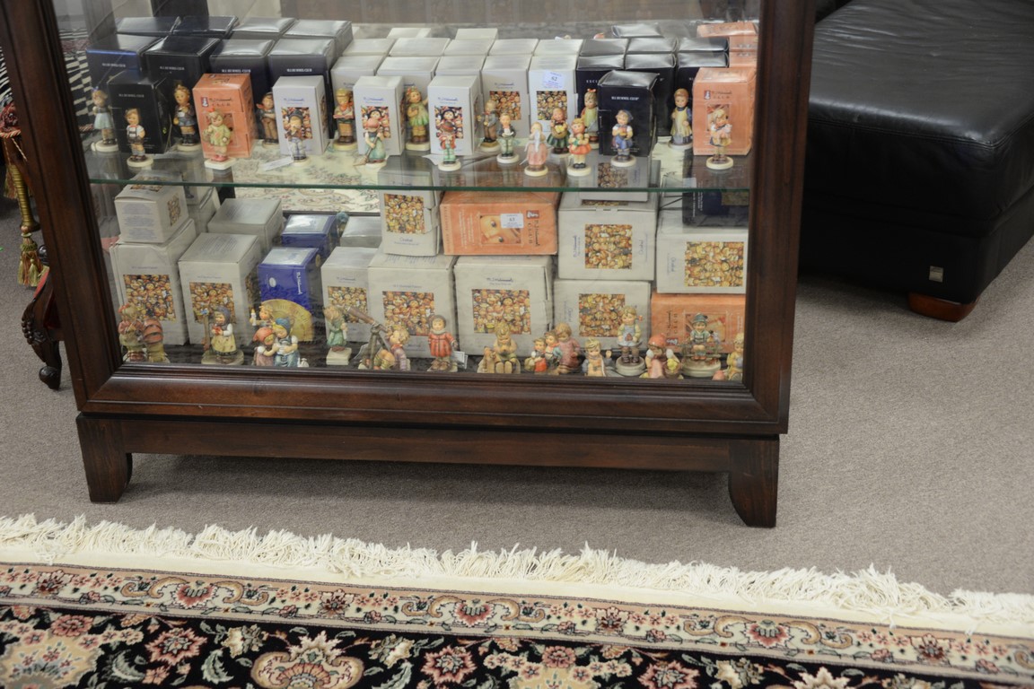 Lot 51: Contemporary lighted display cabinet having beveled glass sides and sliding door, interior fitted with five glass shelves. ht. 92in….