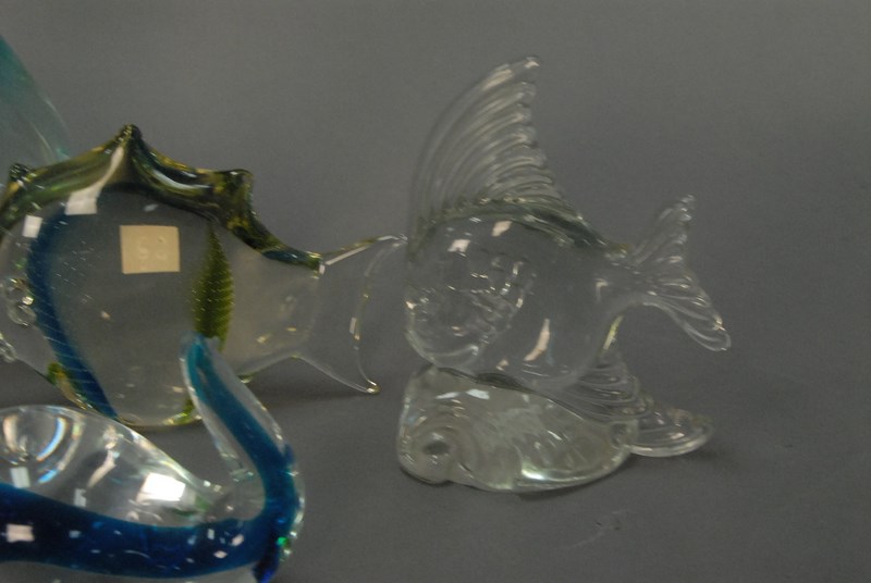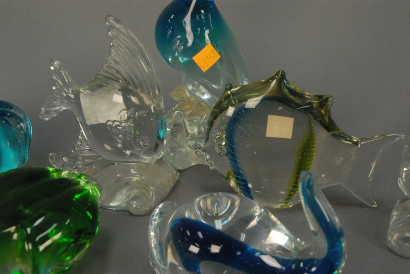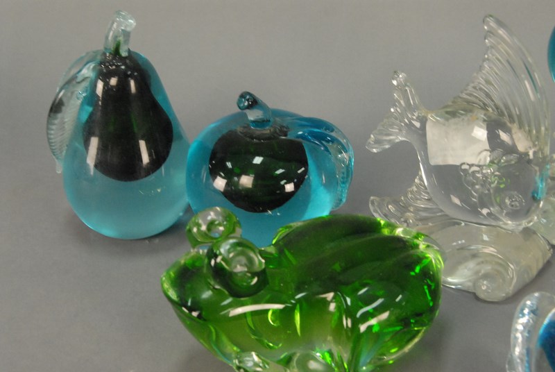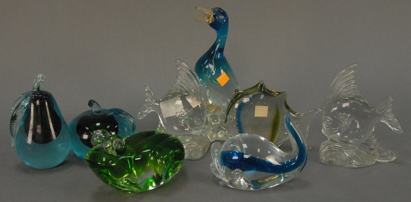Eight piece lot of Murano glass and crystal including fish, fruit, etc. ht. 4in. to 10in.