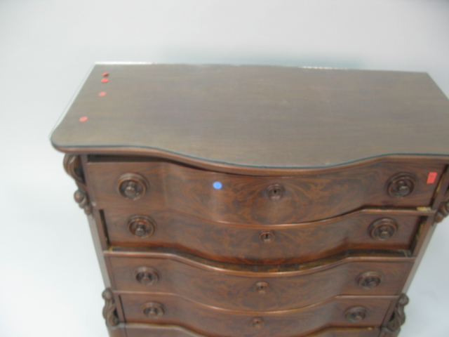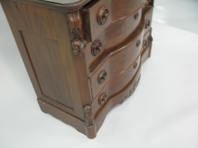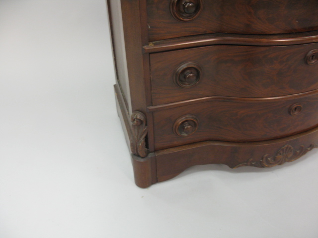 Empire mahogany four drawer chest with a shaped front from the estate of Broadway actress Leta Gold