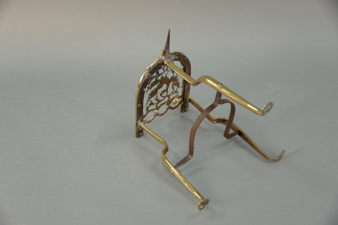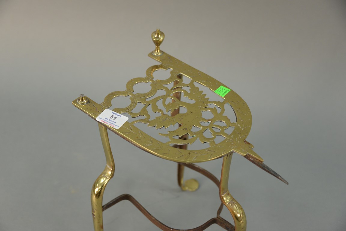 Federal brass trivet on penny foot. ht. 13 1/2in.