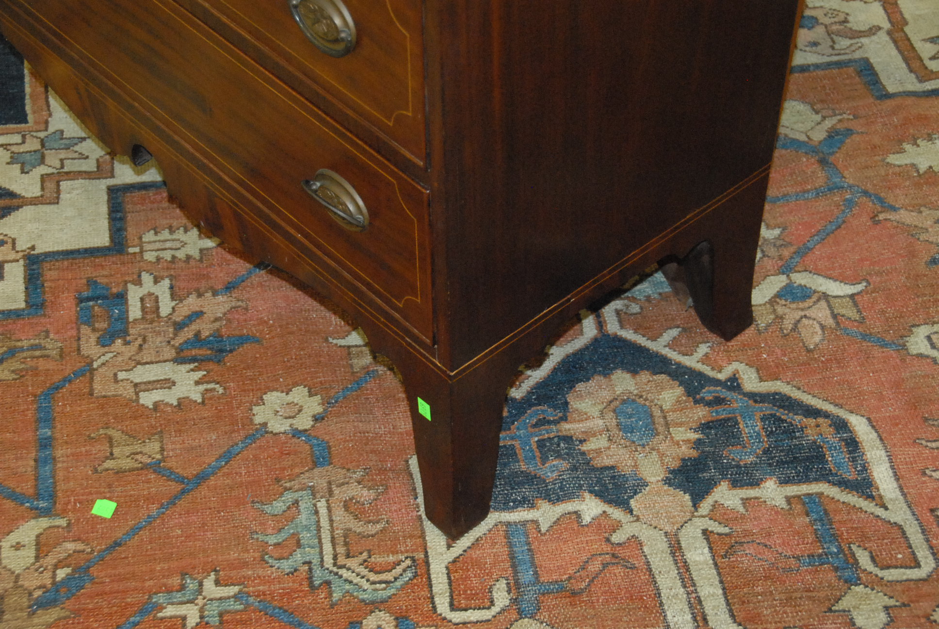 Federal four drawer chest having cherry top over four mahogany front drawers with line inlays all set on flared French feet, ht. 39in. wd. 39in.
