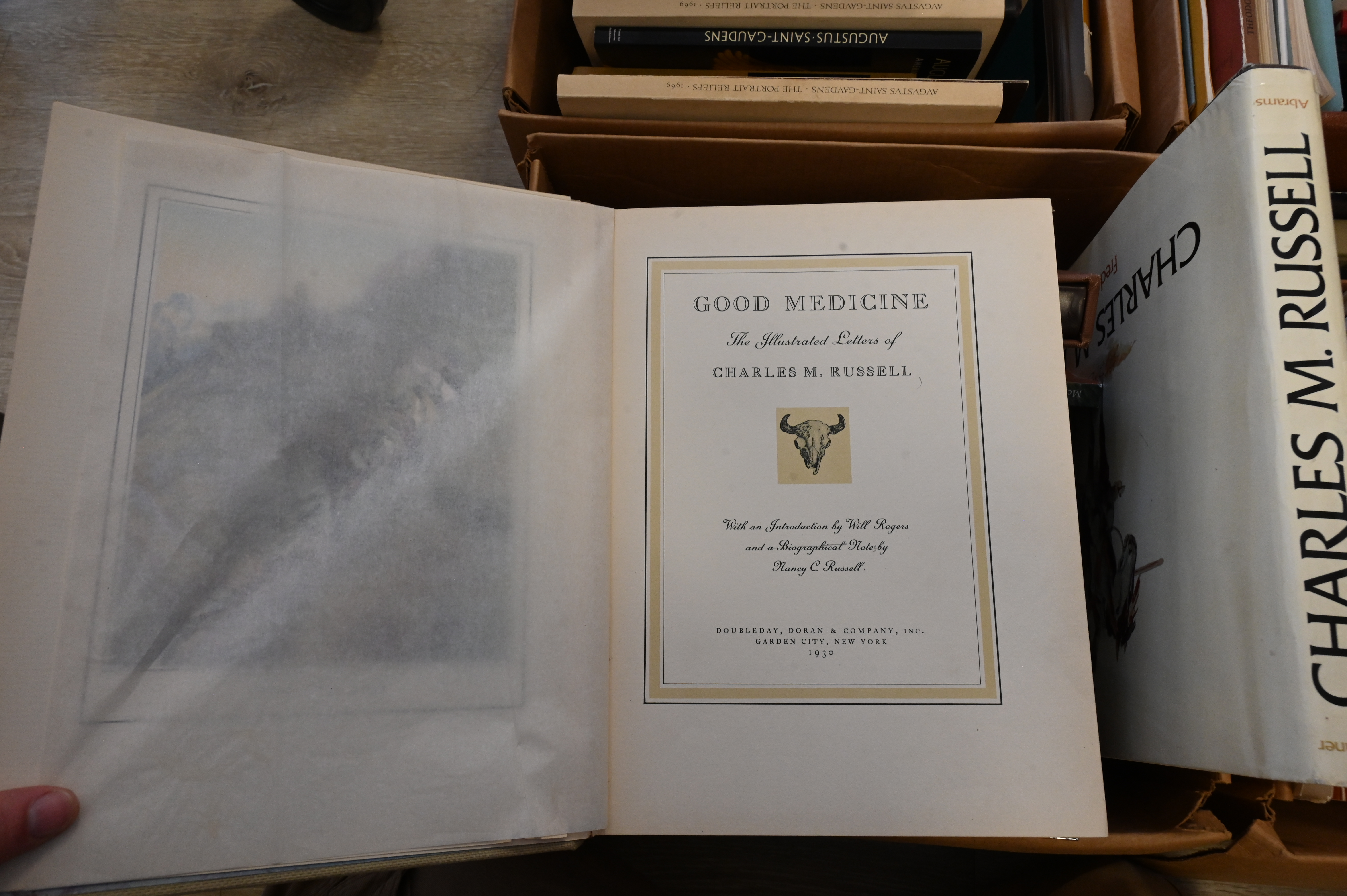 artists to include O.C. Seltzer, Charles Russell, Diego Rivera, and Augustus Saint-Gaudens one of which being an author signed copy of Kathryn Greenthal Augustus Saint-Gaudens Master Sculptor