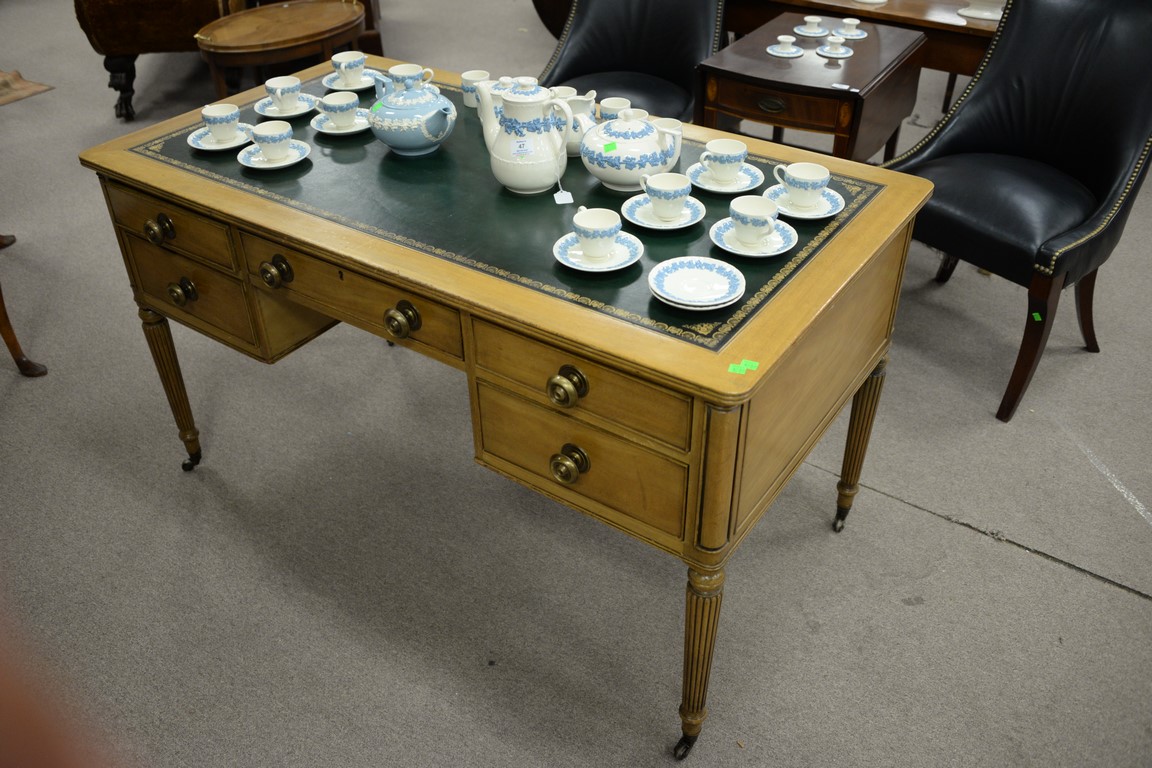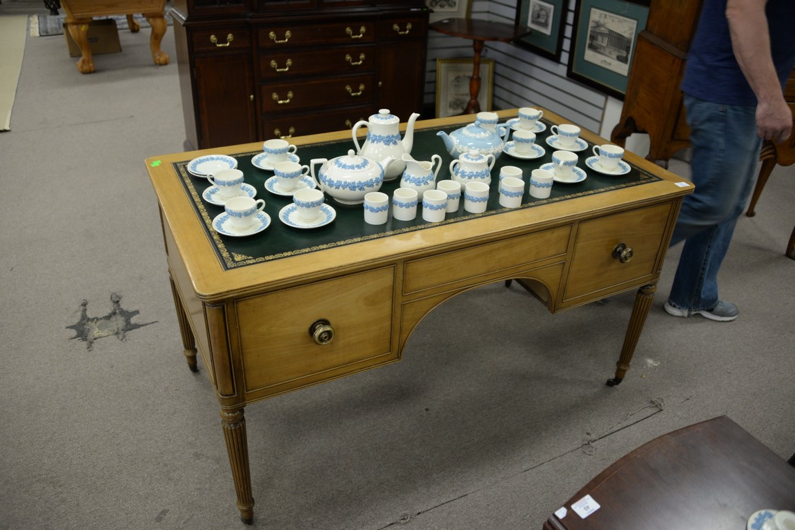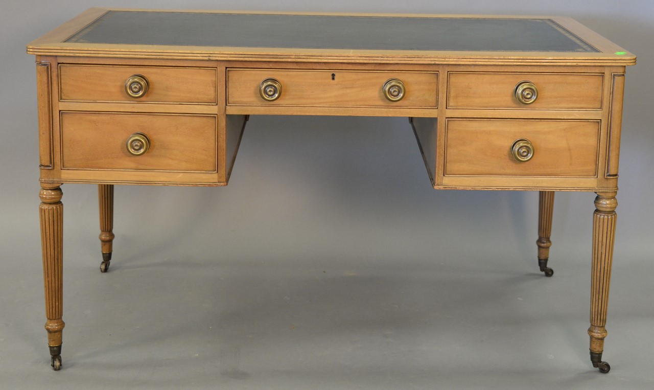 Lot 51: Kittinger bleached mahogany desk with inset leather top. ht. 36 1/2in., wd. 54in., dp. 29in.