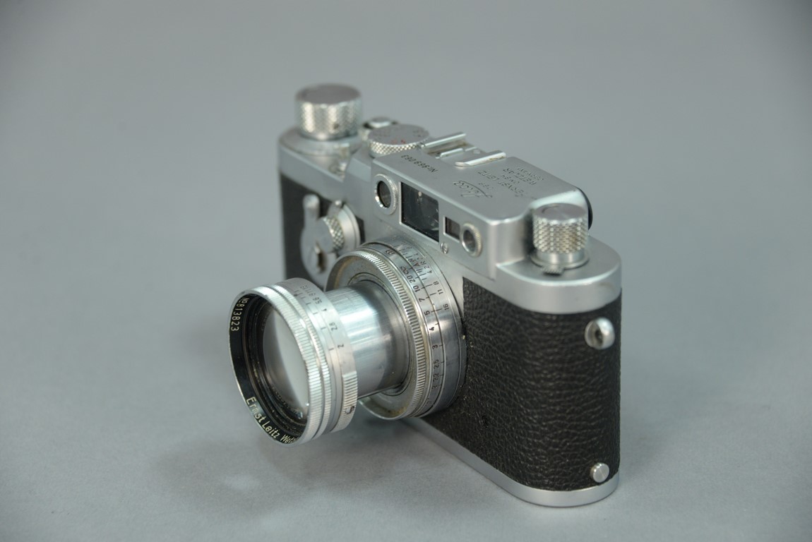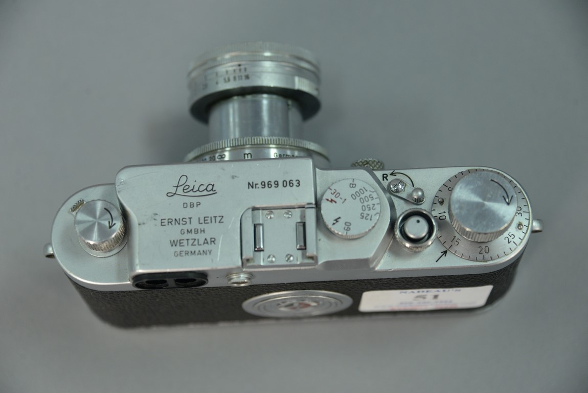 Leica IIIq camera 969063 with collapsible Summitar 5cm/2 813823 small dent top cover left.